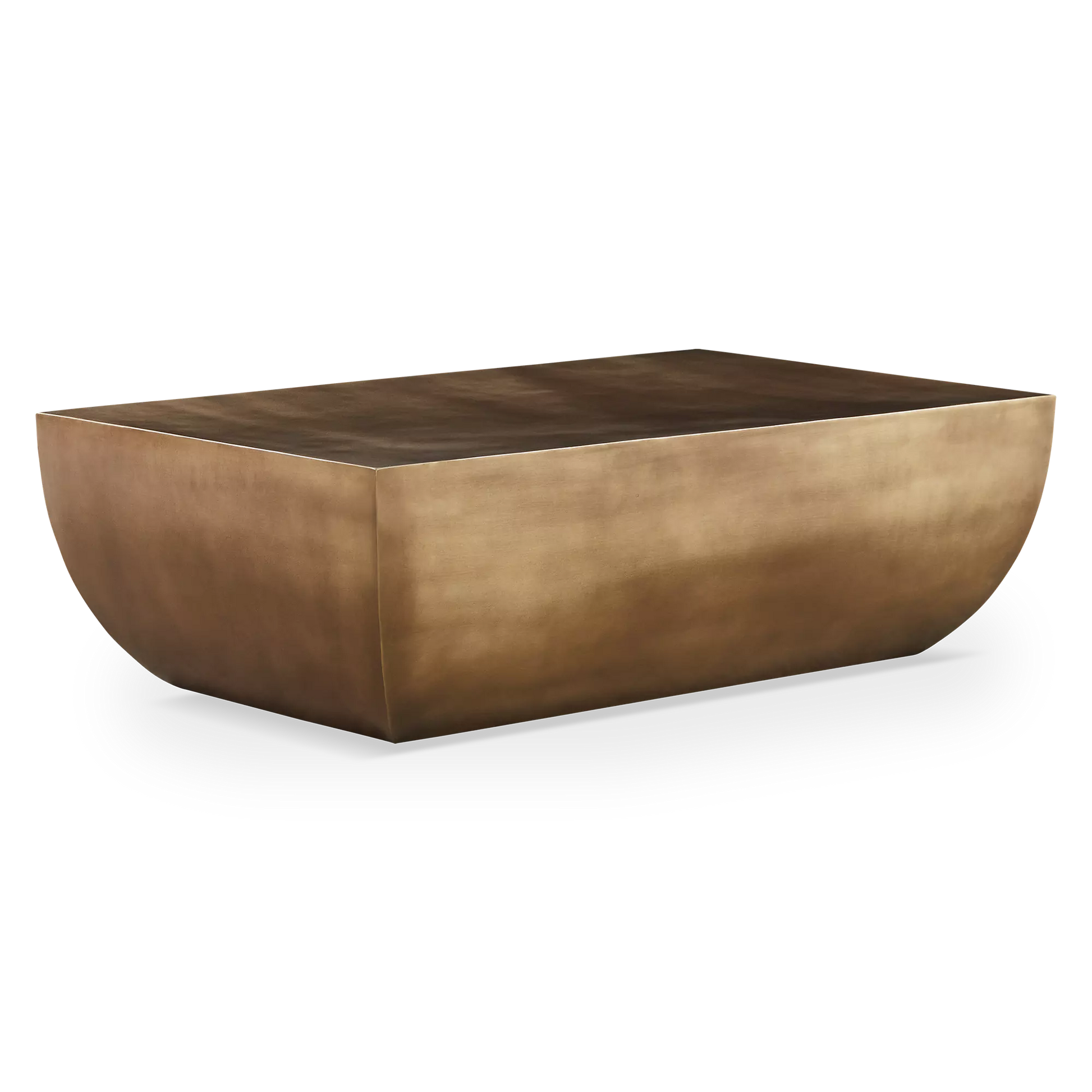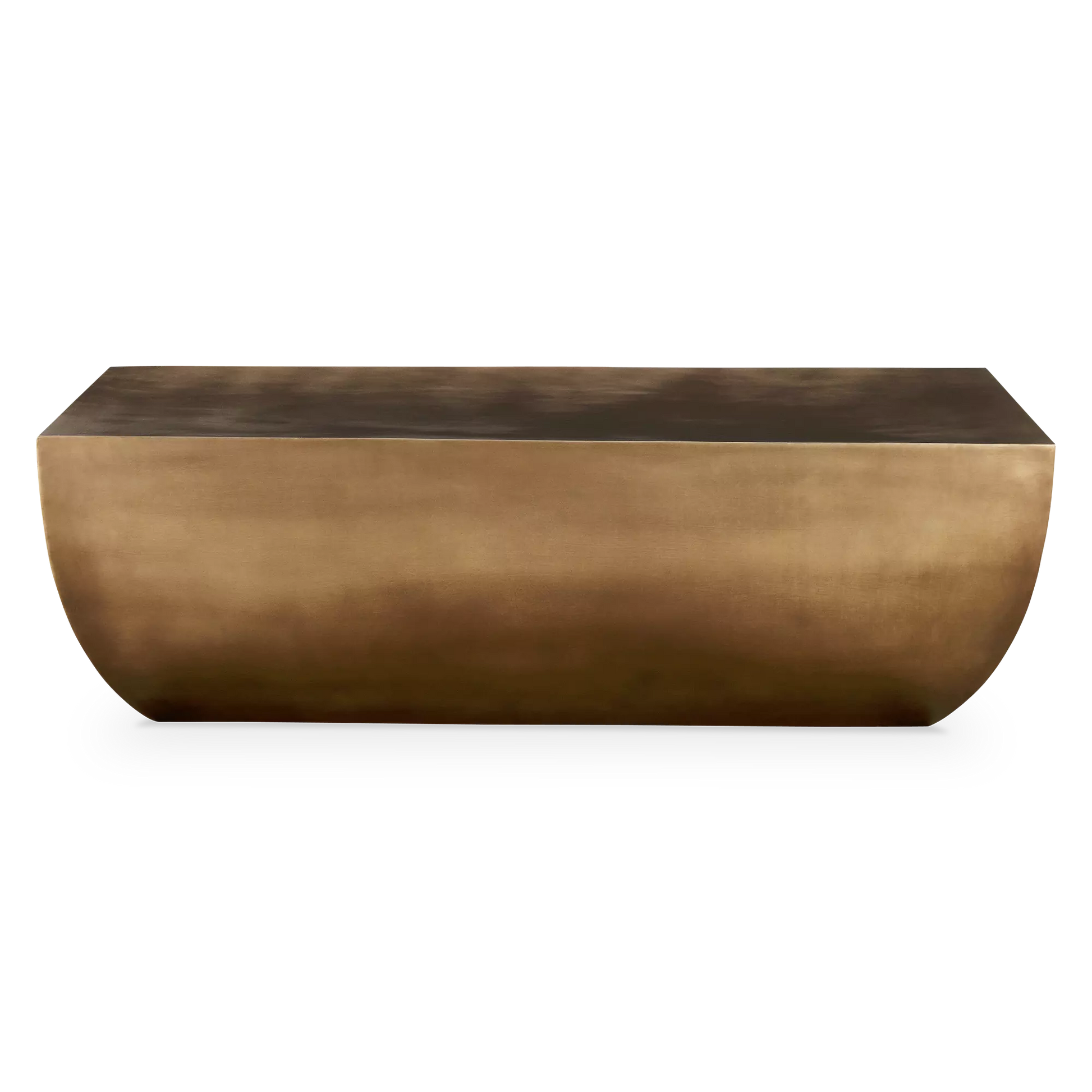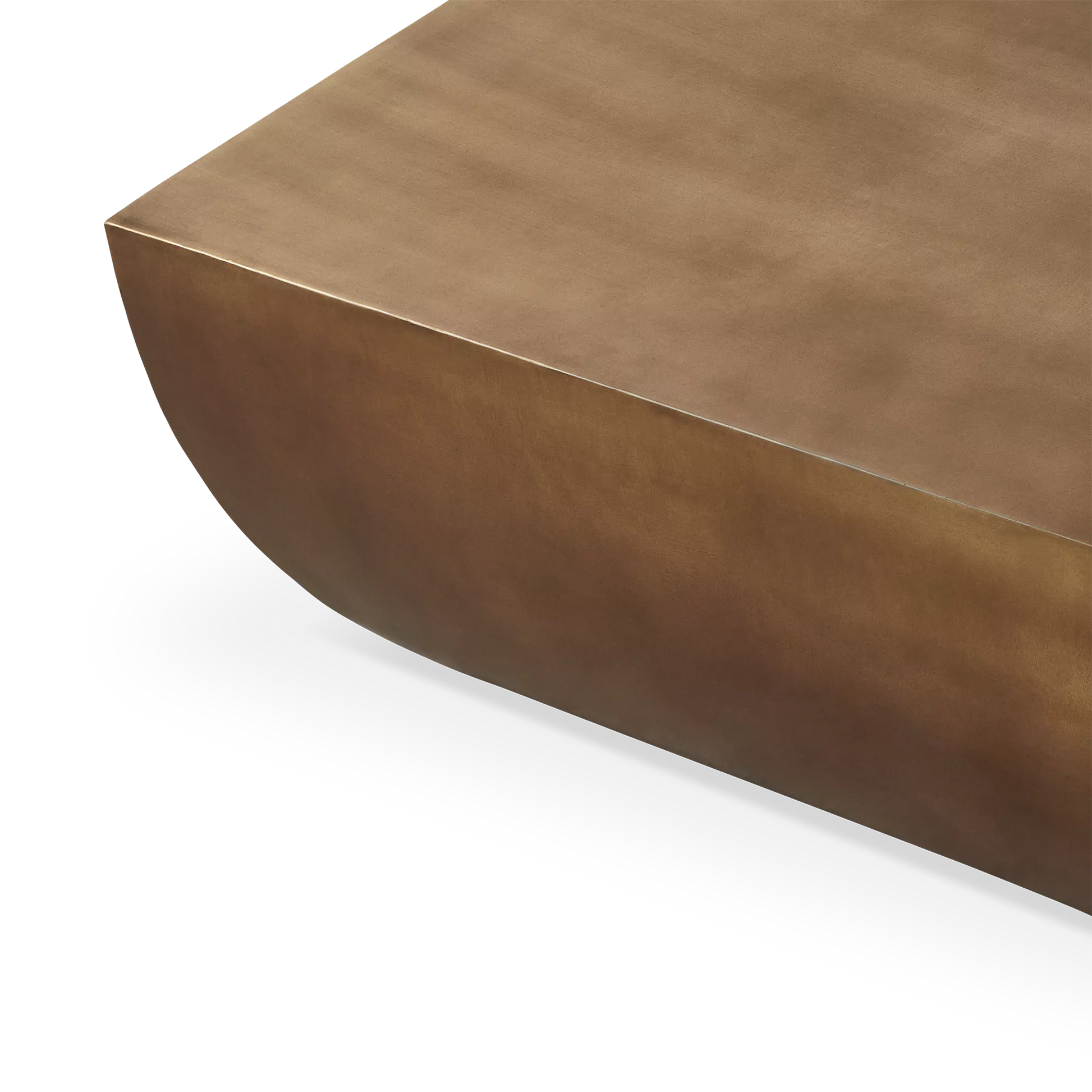 The Caroline table reveals a combination of soft curves, sharp angles, and a hollow structure with a singular design. Crafted from iron with an antique brass finish, it has a clean-lined look that will elevate any modern style setting.