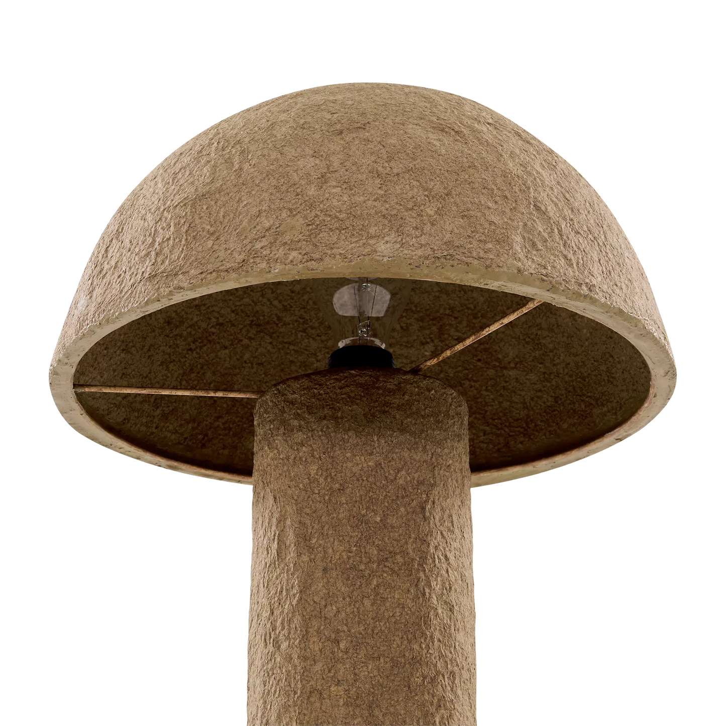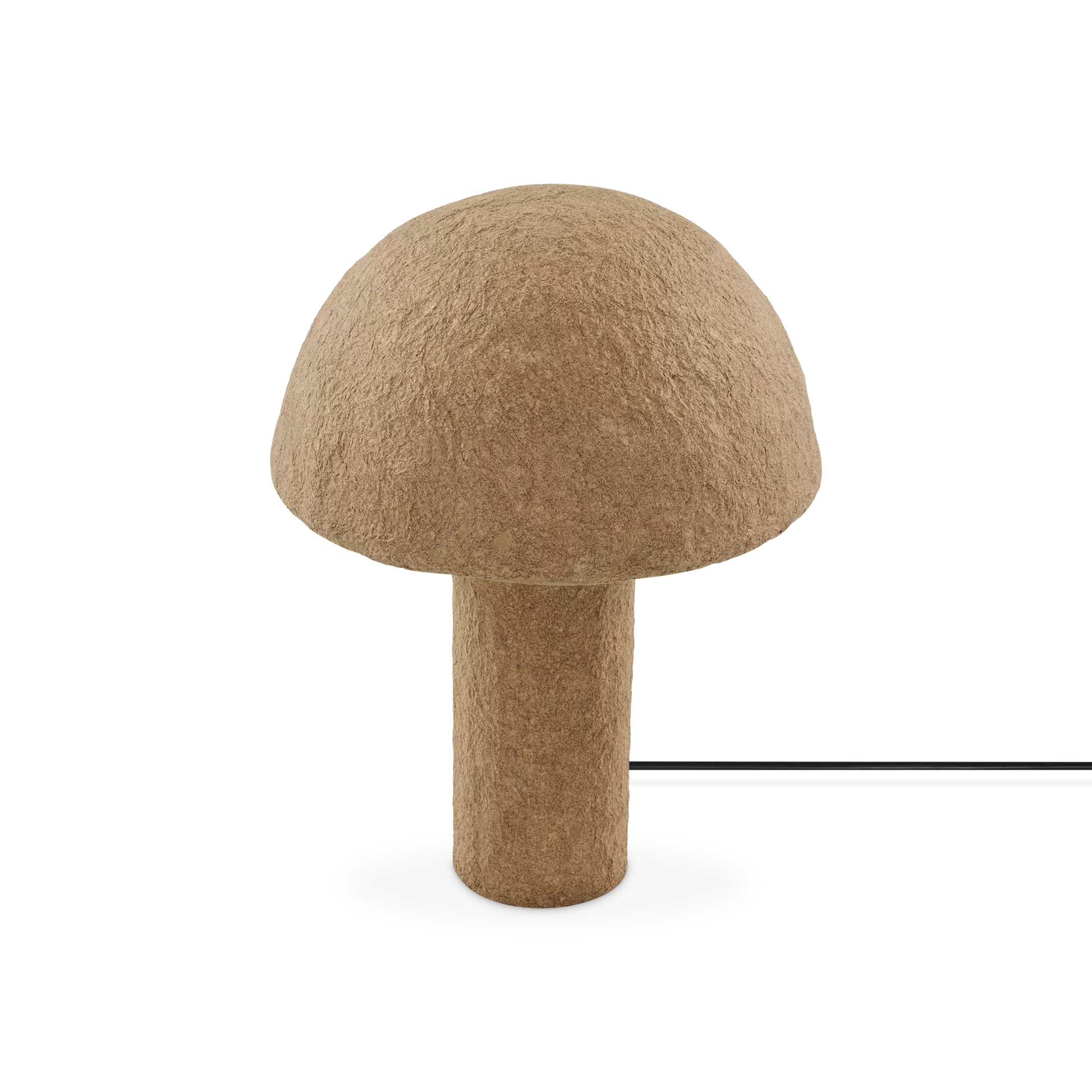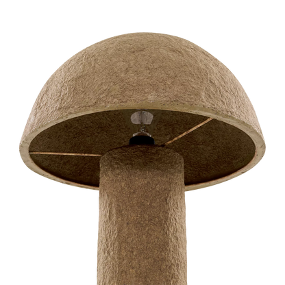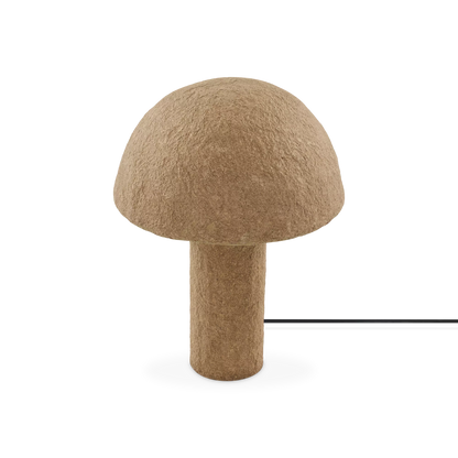 This paper mache table lamp features a mushroom silhouette that gives it a modern and delicately organic charm. Entirely crafted in a matte texture with a handcrafted finish, it forms a sculptural piece that diffuses a soft light. A beautiful decorative accent to create a soothing atmosphere in any room.