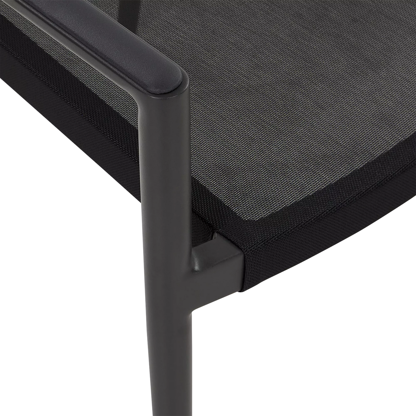 Modern and graceful, the Chiclet chair is equally at home on a city balcony or in a countryside setting. Its slender aluminum legs and its openwork, gently curved backrest give it an airy and elegant look. Its seat is covered in Textilene, a material that allows water to drain for quick drying. Its stackable structure makes storage a breeze.