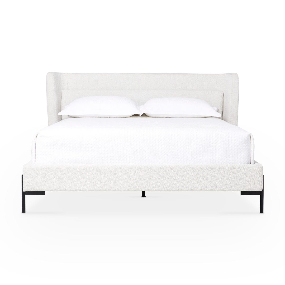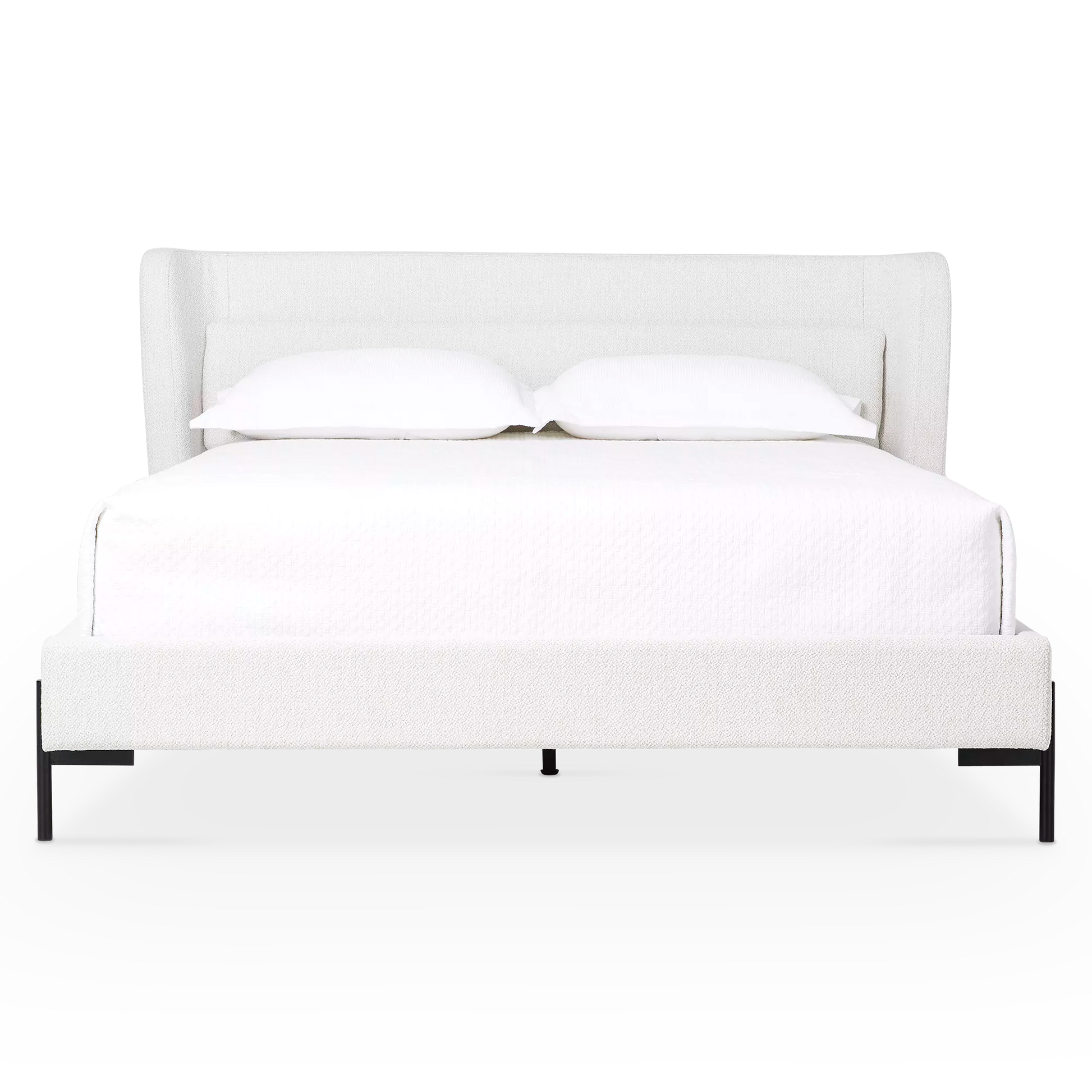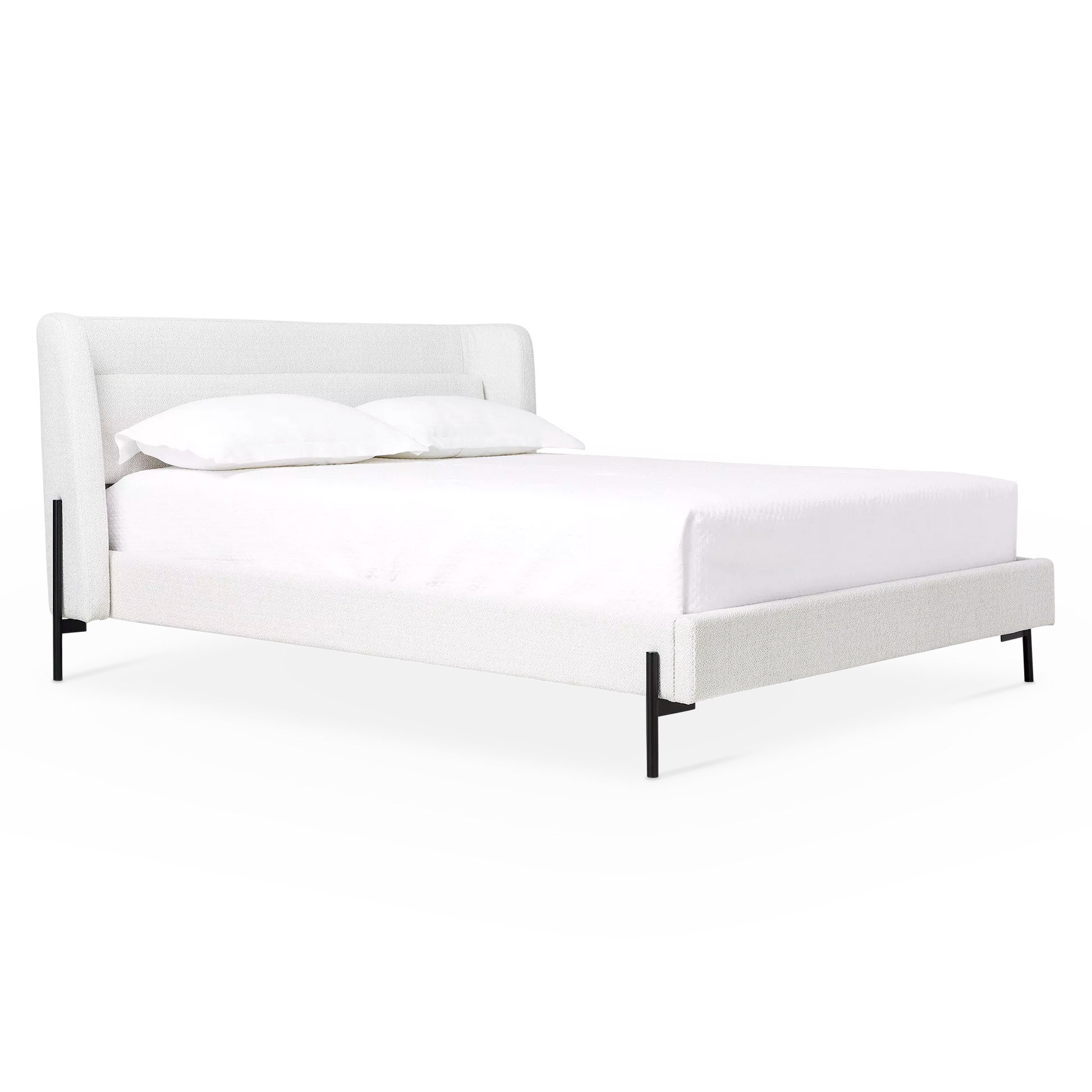 Feeling cozy? Meet the Claire bed — the definition of comfort and style. Let its softly textured, heathered headboard wrap you up after a long day, and admire its curved silhouette and slender black legs for a contemporary look.