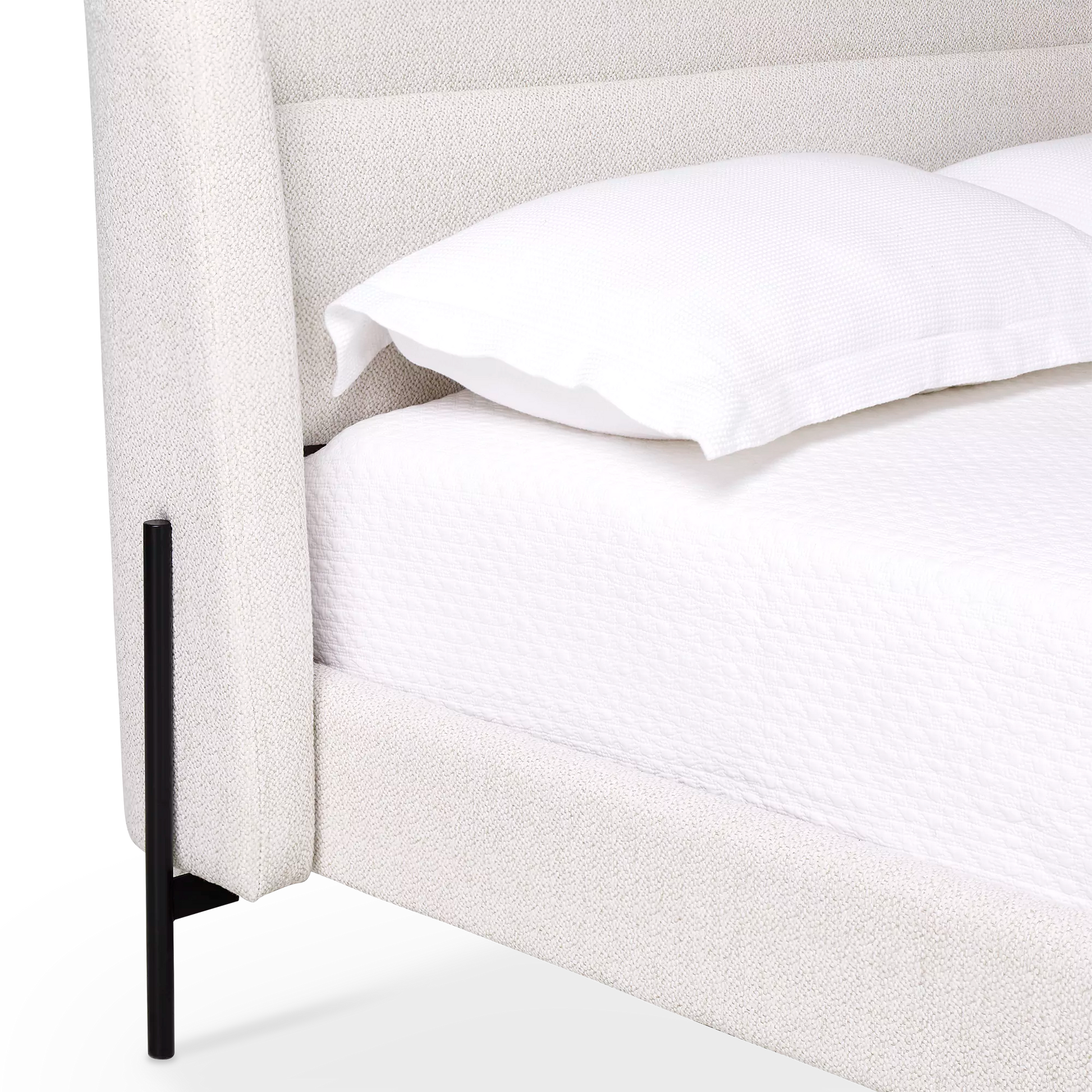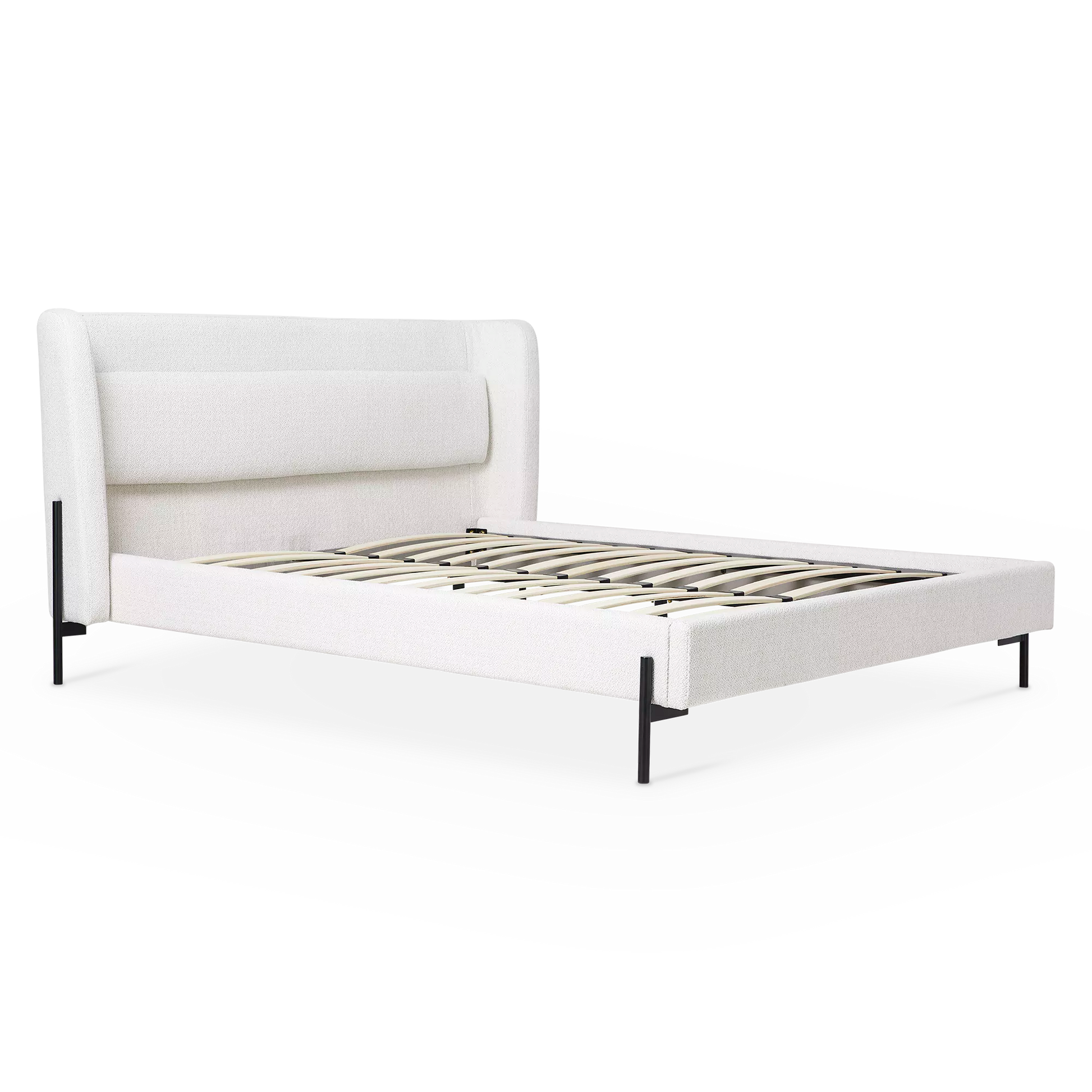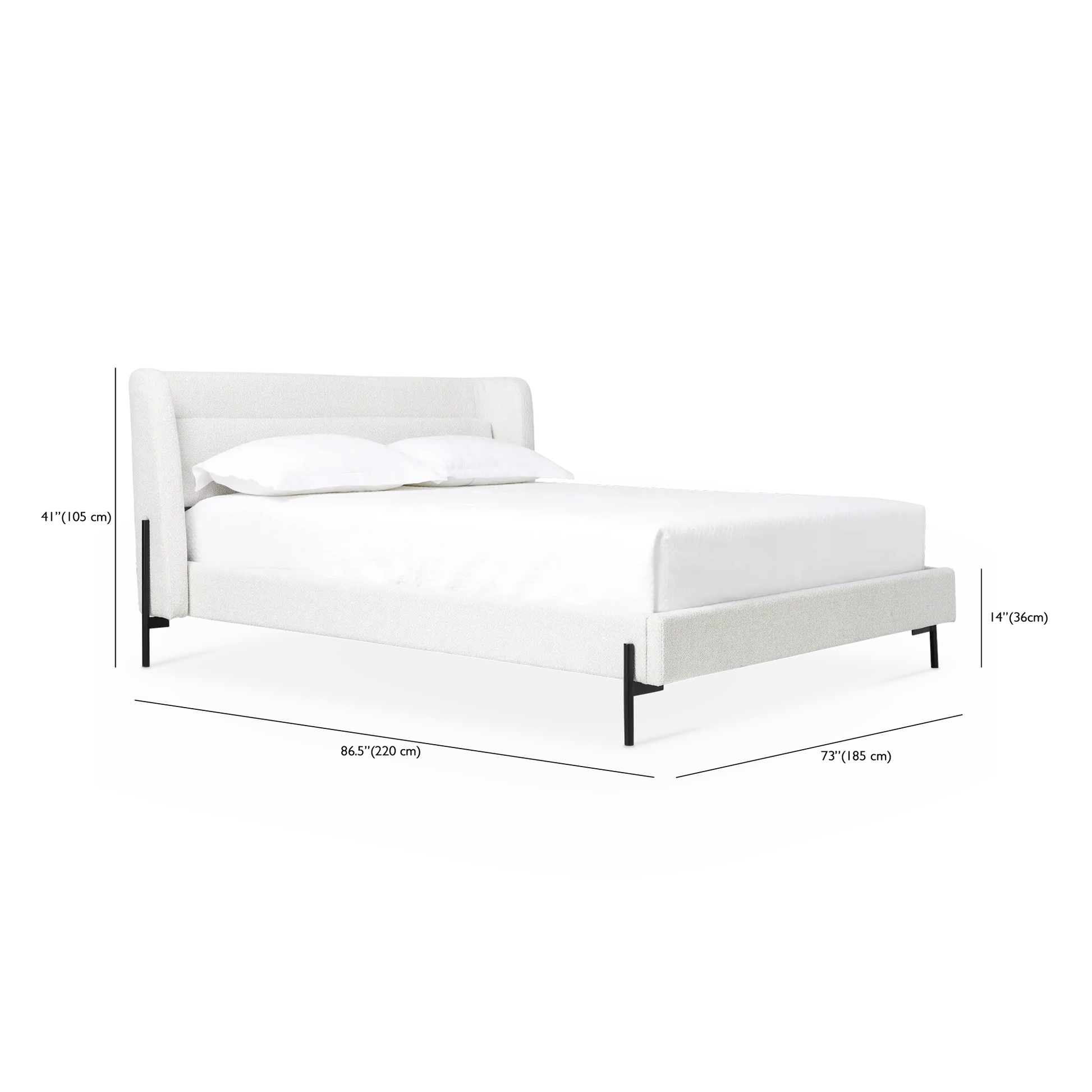 Feeling cozy? Meet the Claire bed — the definition of comfort and style. Let its softly textured, heathered headboard wrap you up after a long day, and admire its curved silhouette and slender black legs for a contemporary look.