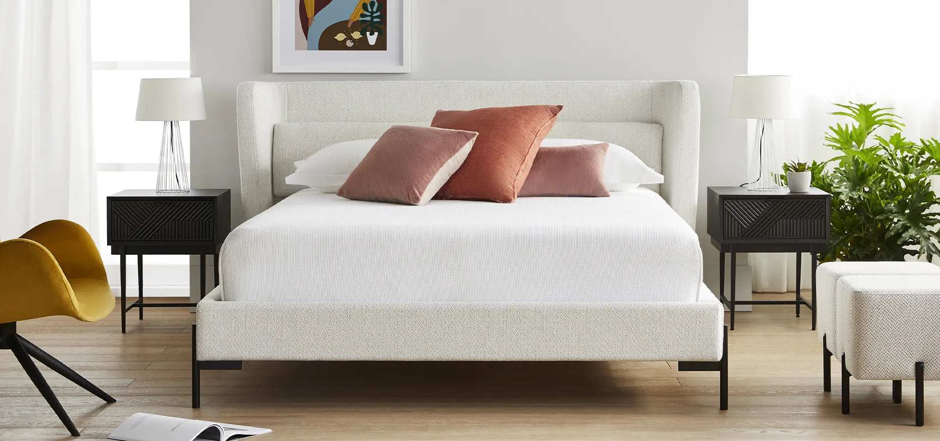 Style: Wrapped headboard with gentle folding — a cocooning, modern silhouette.