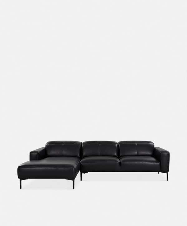 Modern comfort comes to life with the Copenhagen sectional sofa. Upholstered in rich leather and enhanced with subtle seams, this sleek yet supportive design has a timeless appeal and adjustable headrests for lounging that adapts to your space and needs.