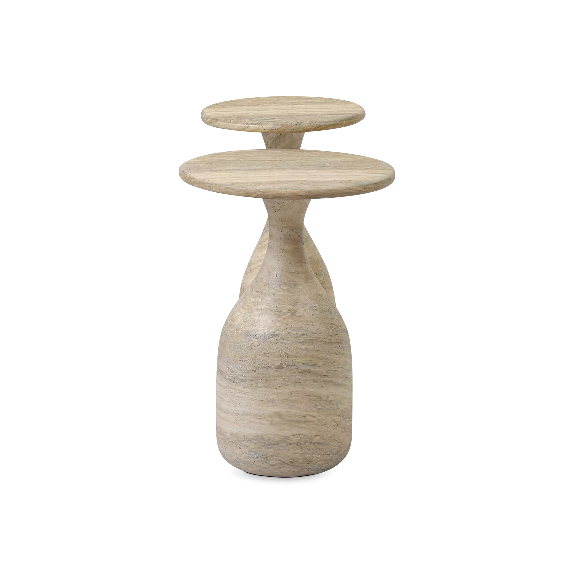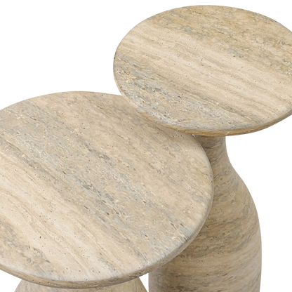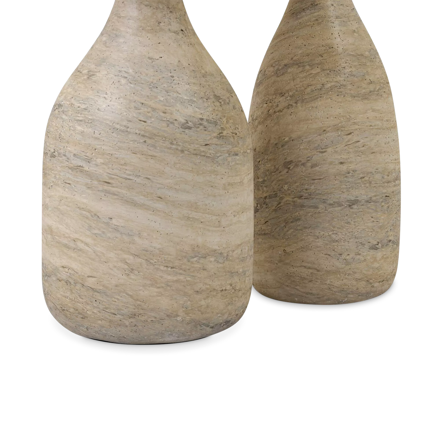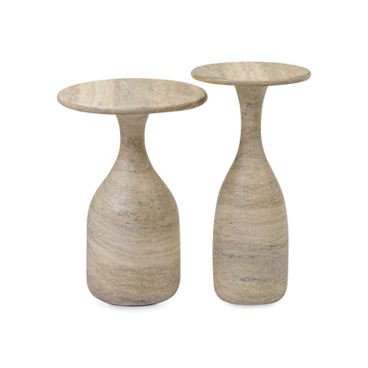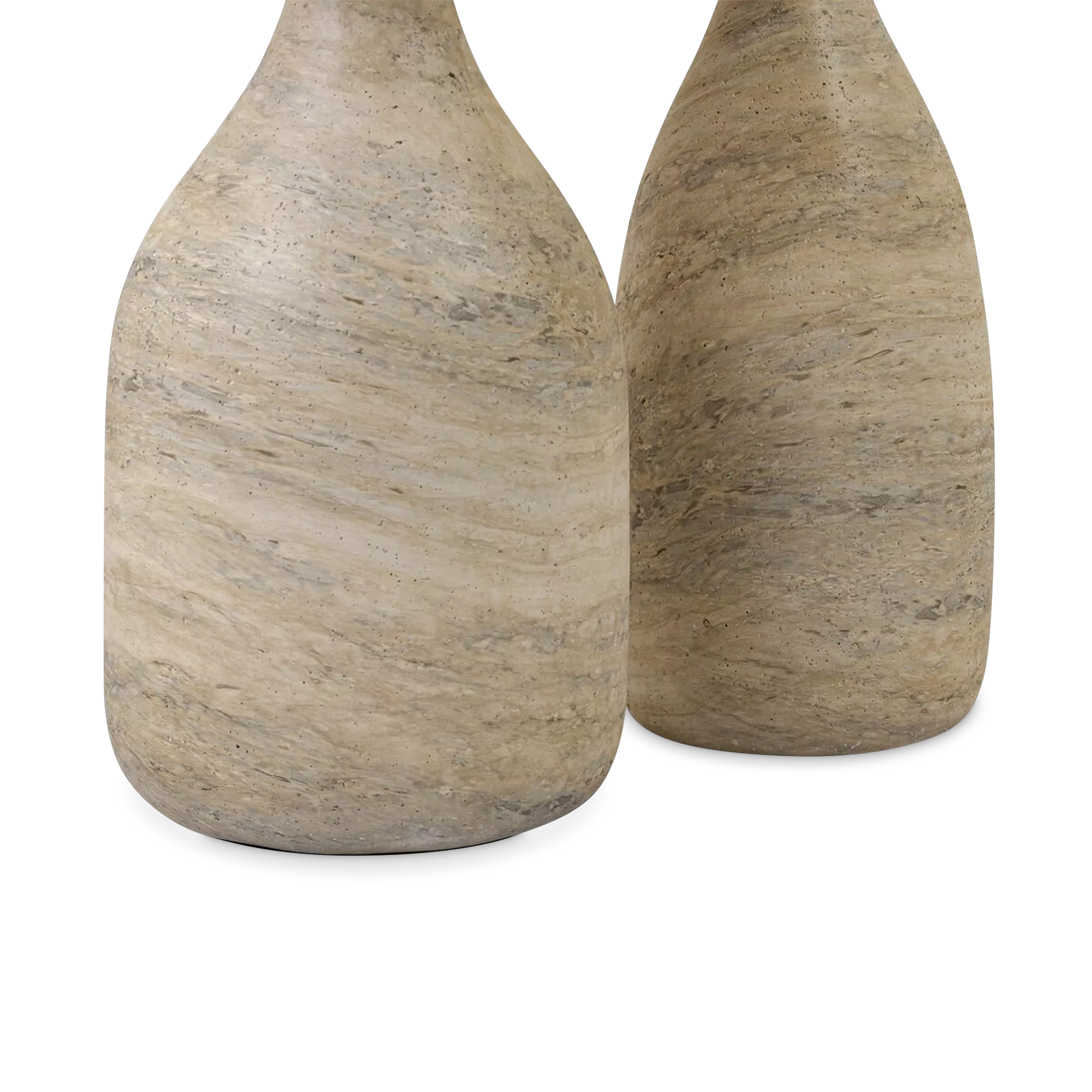 The Cora nesting tables reinterpret antique vessel shapes through a sculptural, contemporary lens. Crafted in concrete and finished with a stone-effect water transfer technique, each piece showcases organic texture and visual depth. Their fluid, stacked silhouettes add an artful presence to any room, while the versatile nesting design offers flexible surface space wherever it’s needed.