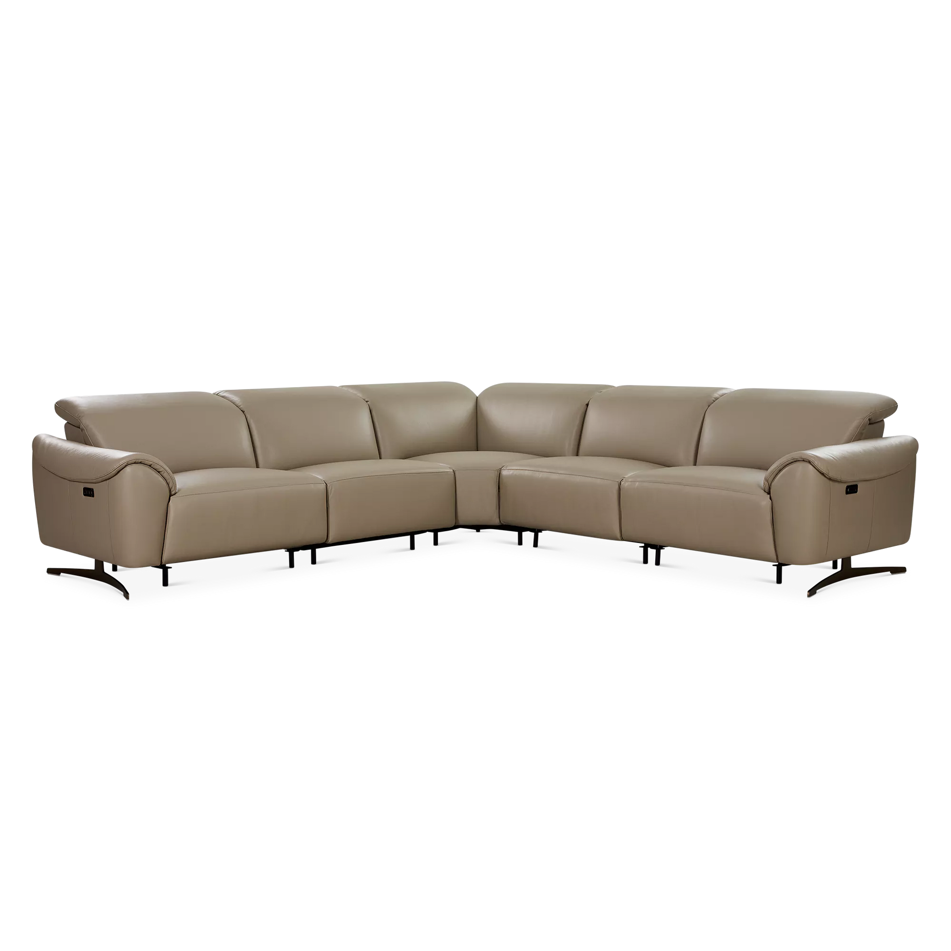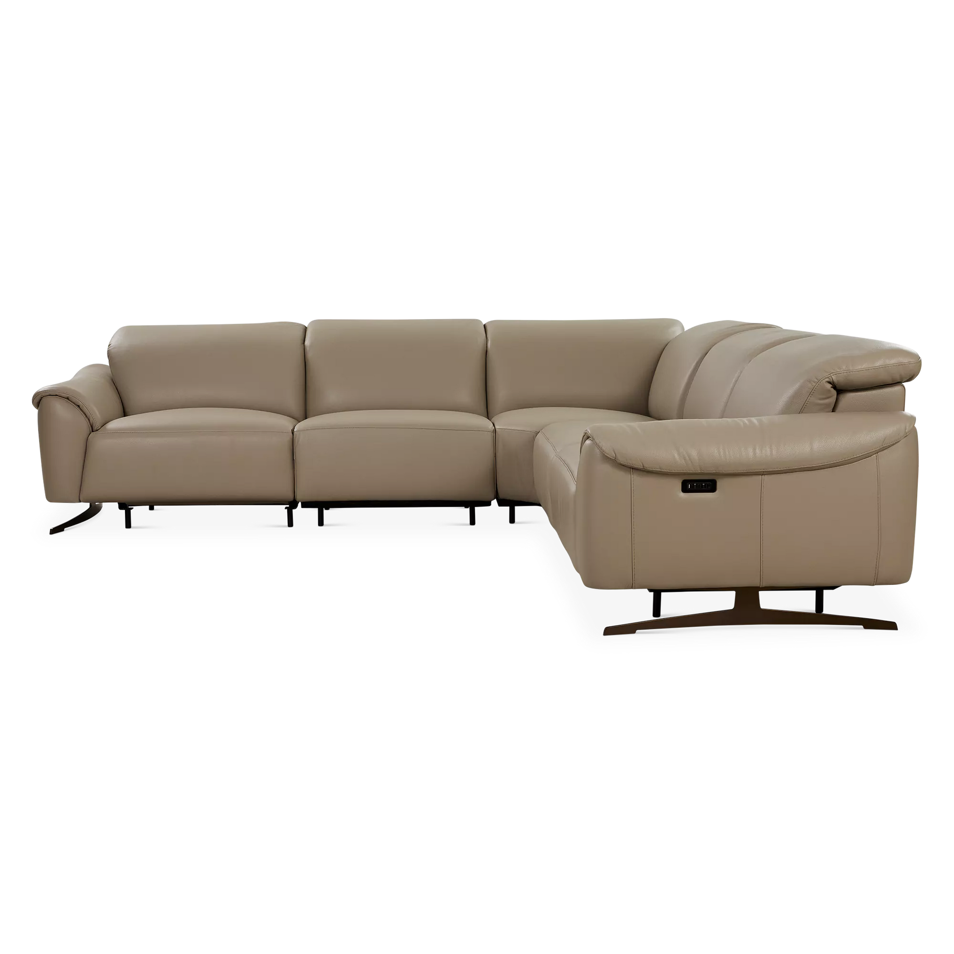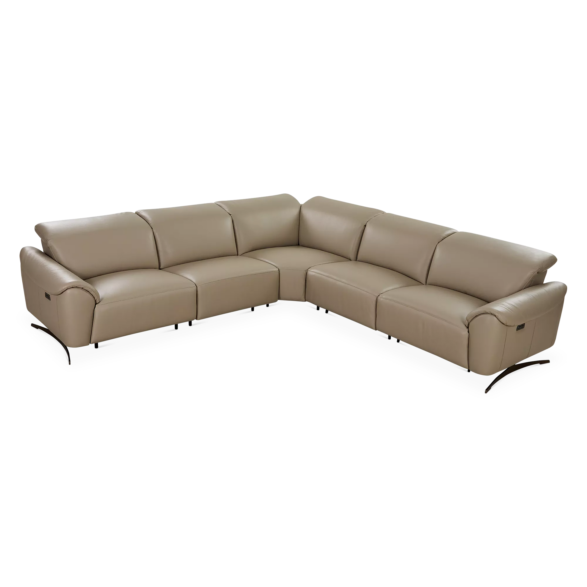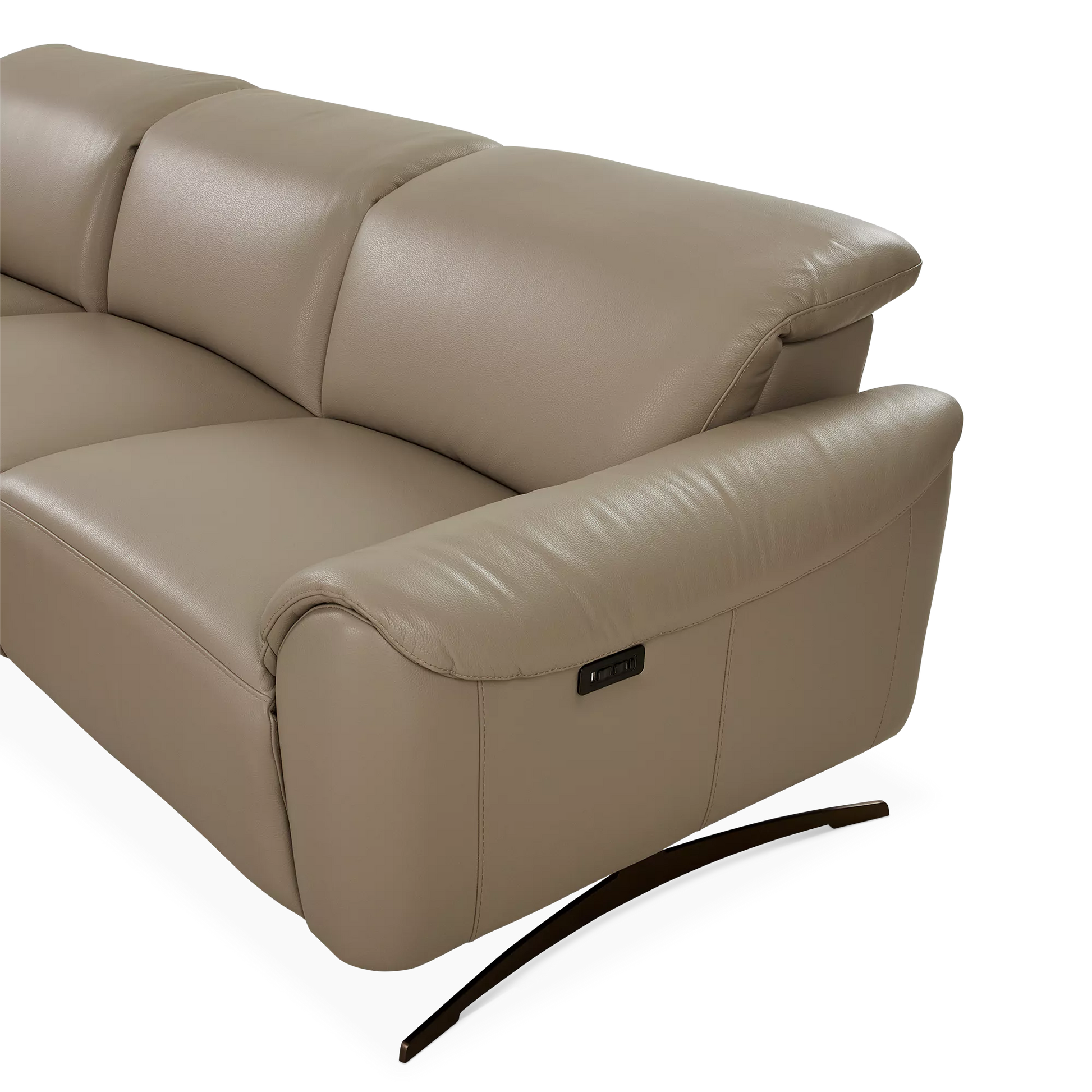 The Corsa sectional sofa blends contemporary design with tailored comfort. Upholstered in supple taupe leather, it will elegantly ground any living room with its generous proportions and clean lines. Power-reclining seats and adjustable headrests allow for personalized relaxation, while an integrated USB port keeps devices close at hand. Thoughtfully designed for modern living, Corsa will accommodate your loved ones and guests in chic and comfortable style.