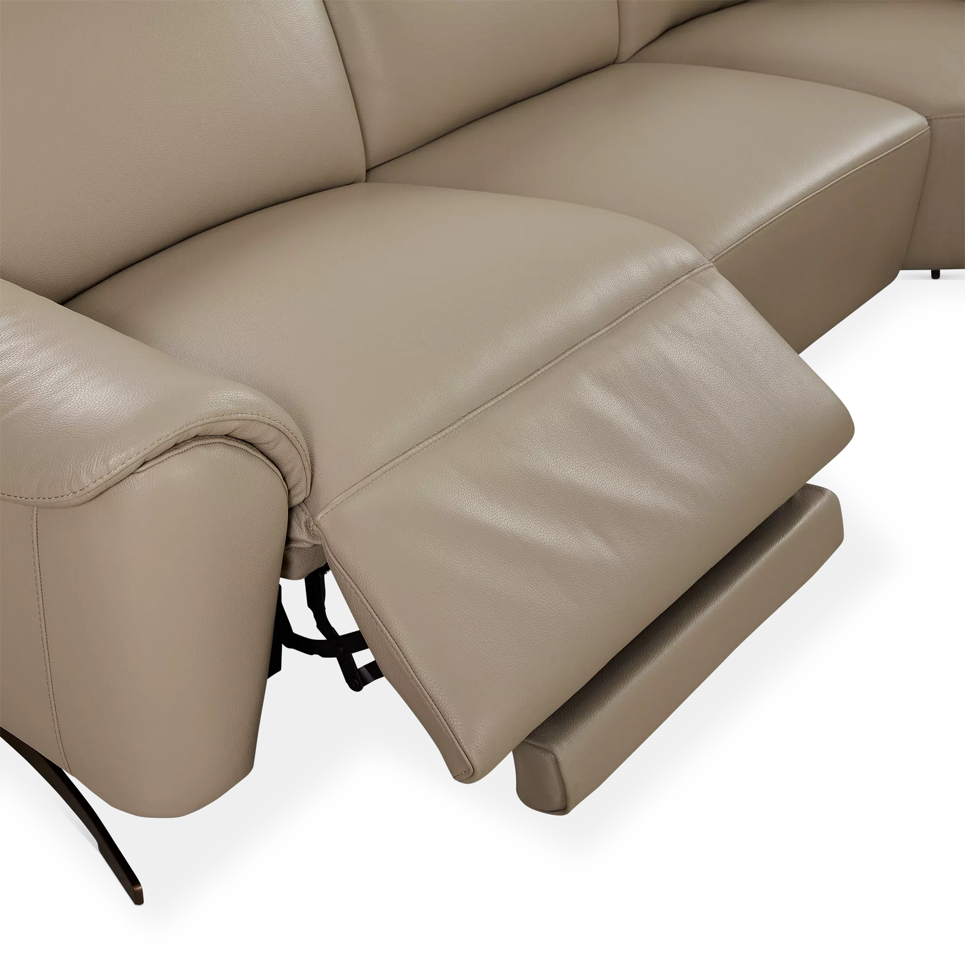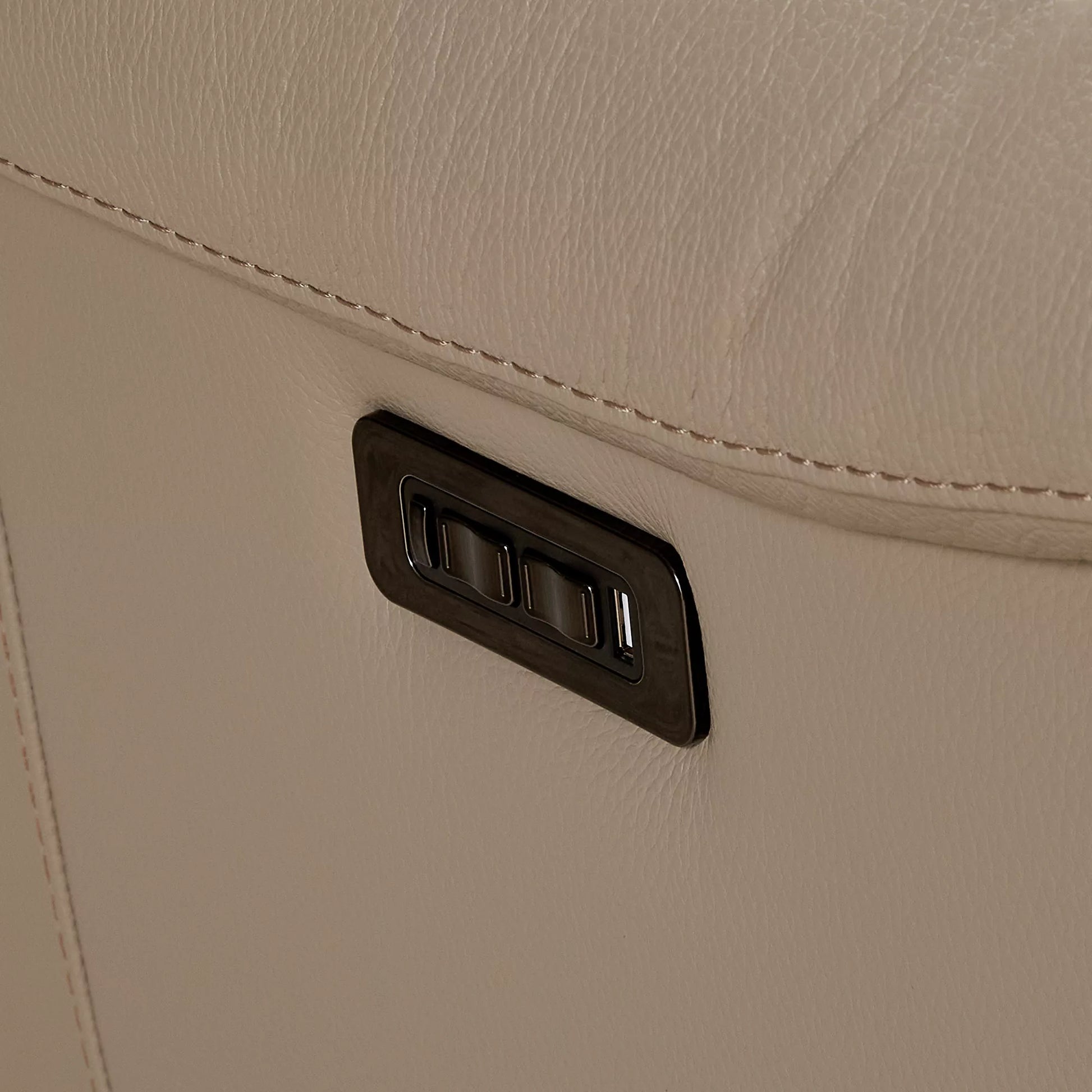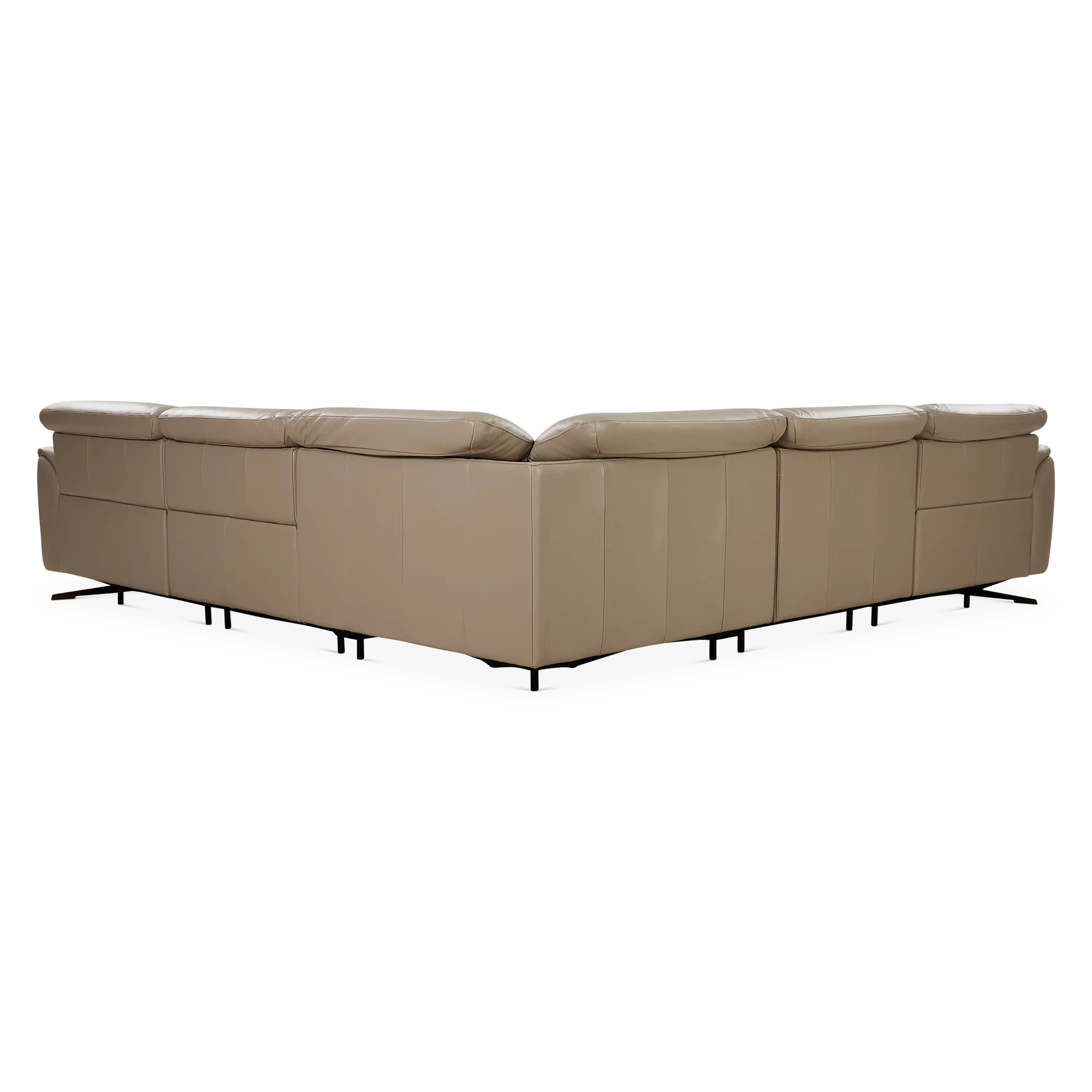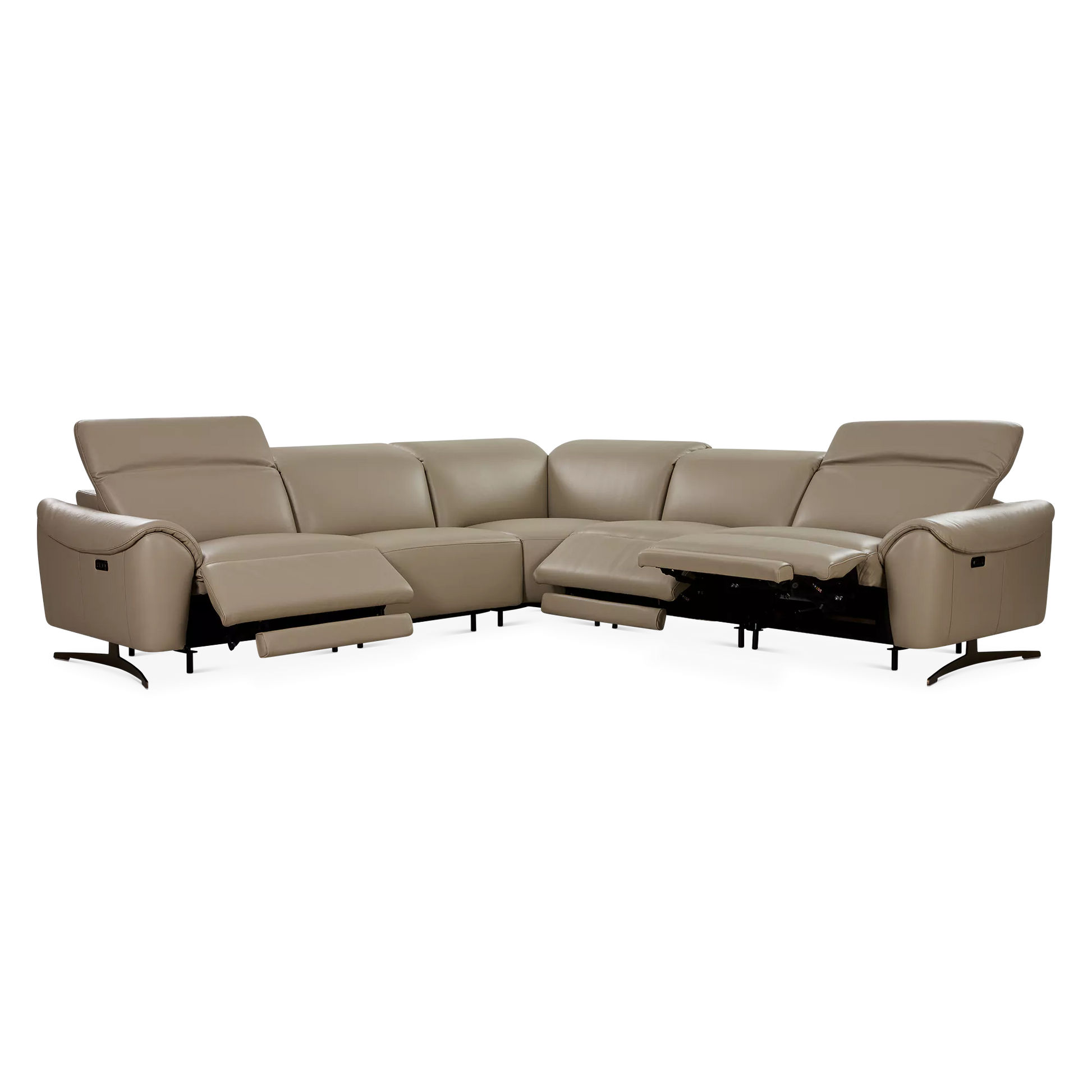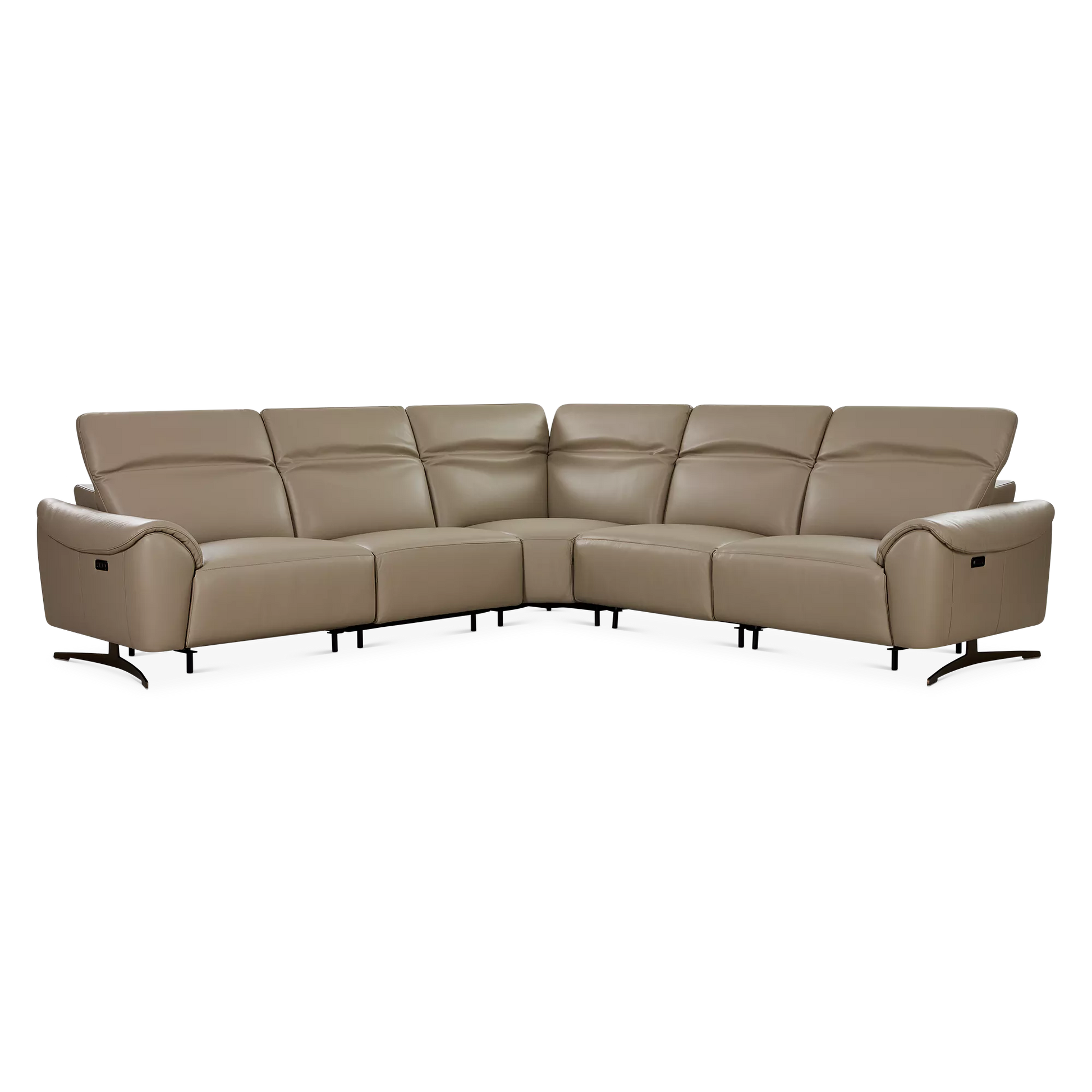 The Corsa sectional sofa blends contemporary design with tailored comfort. Upholstered in supple taupe leather, it will elegantly ground any living room with its generous proportions and clean lines. Power-reclining seats and adjustable headrests allow for personalized relaxation, while an integrated USB port keeps devices close at hand. Thoughtfully designed for modern living, Corsa will accommodate your loved ones and guests in chic and comfortable style.