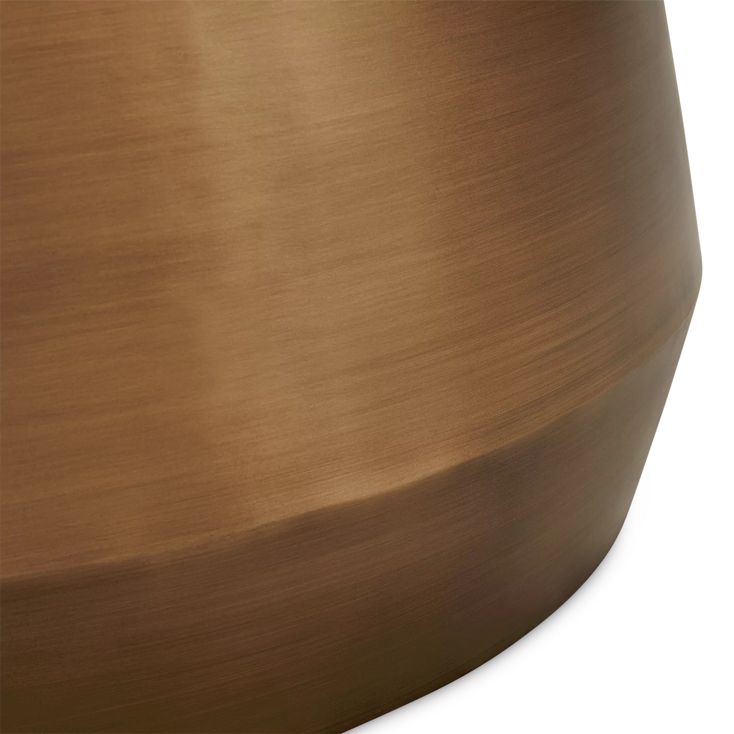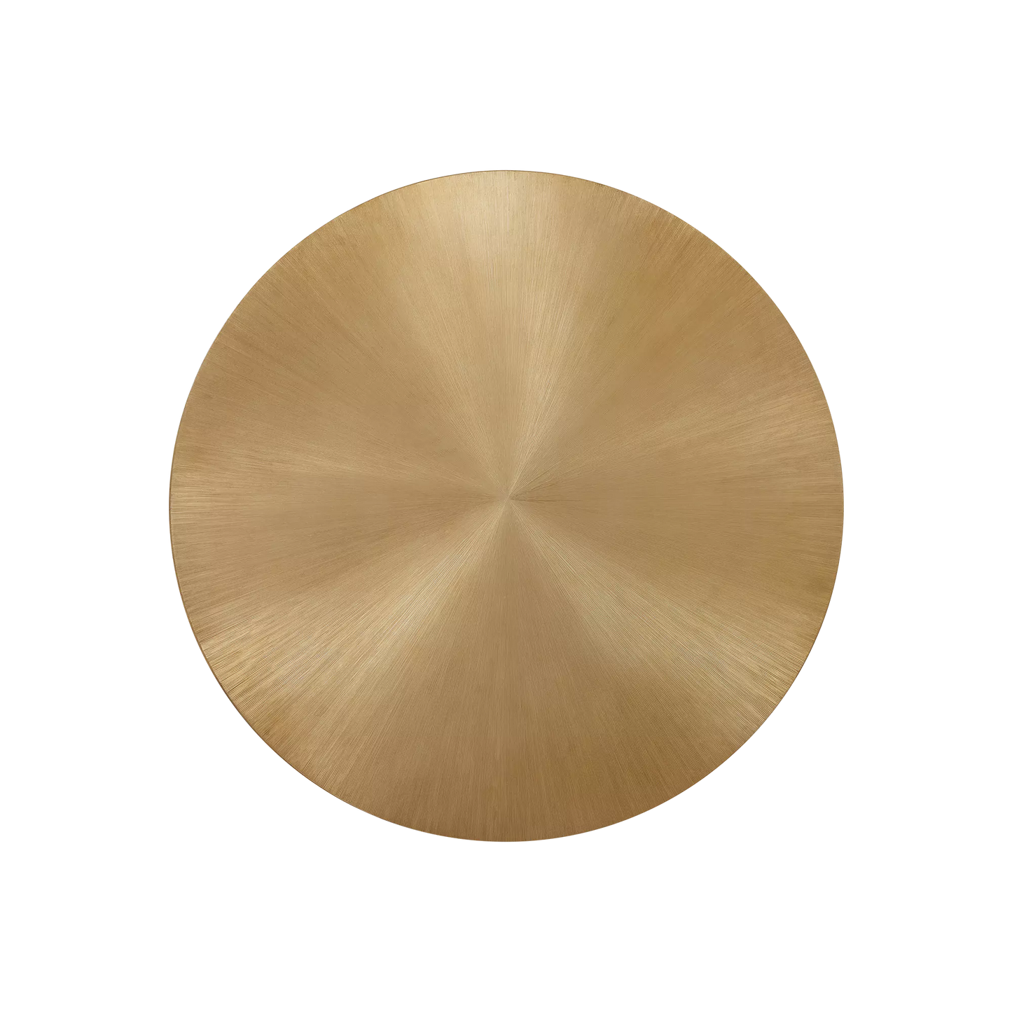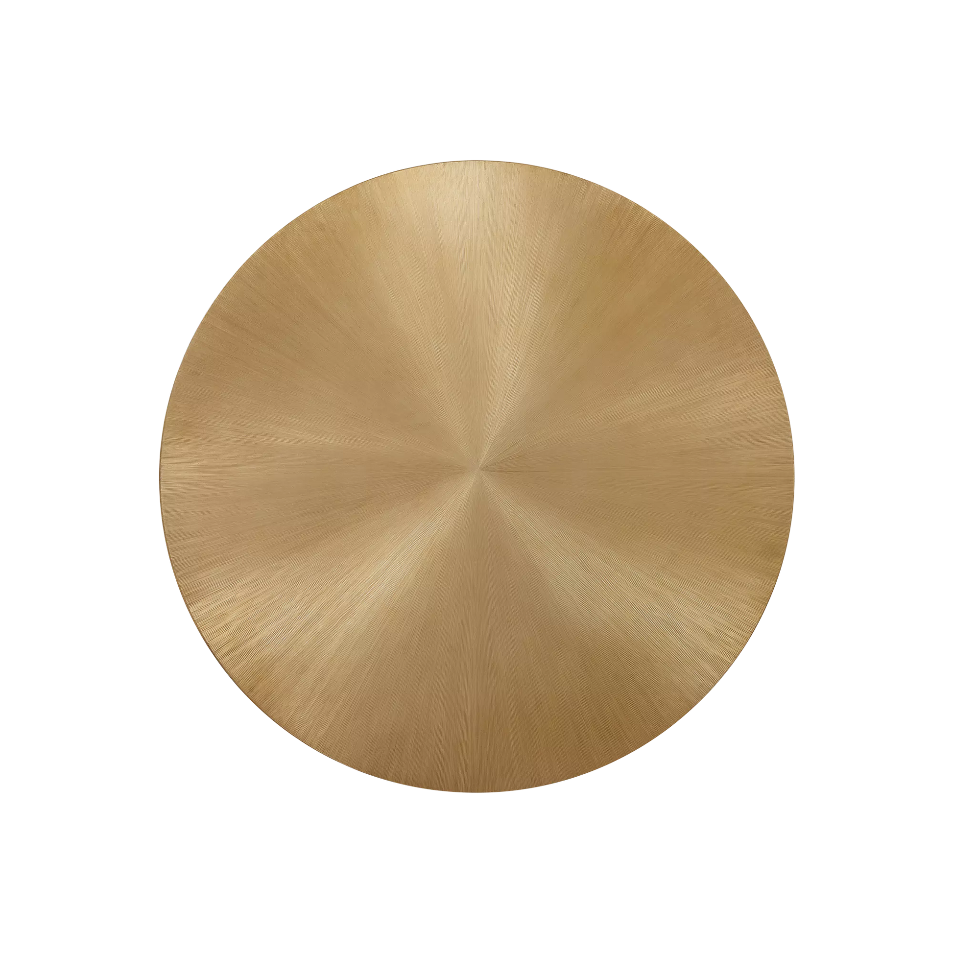 An exceptional creation, the Creed coffee table stands out with its hand-engraved and hammered top and drum-inspired base. Its antique gold finish brightens its surrounding space while it brims with rare elegance.