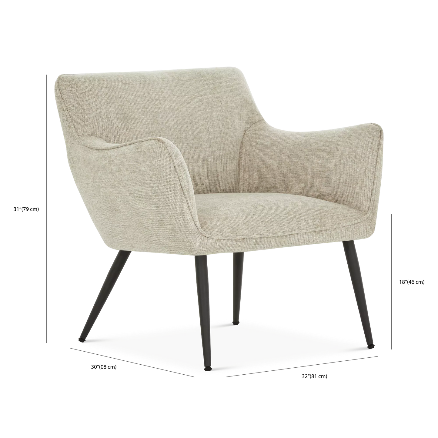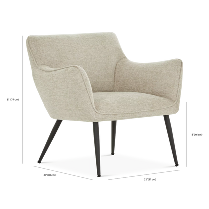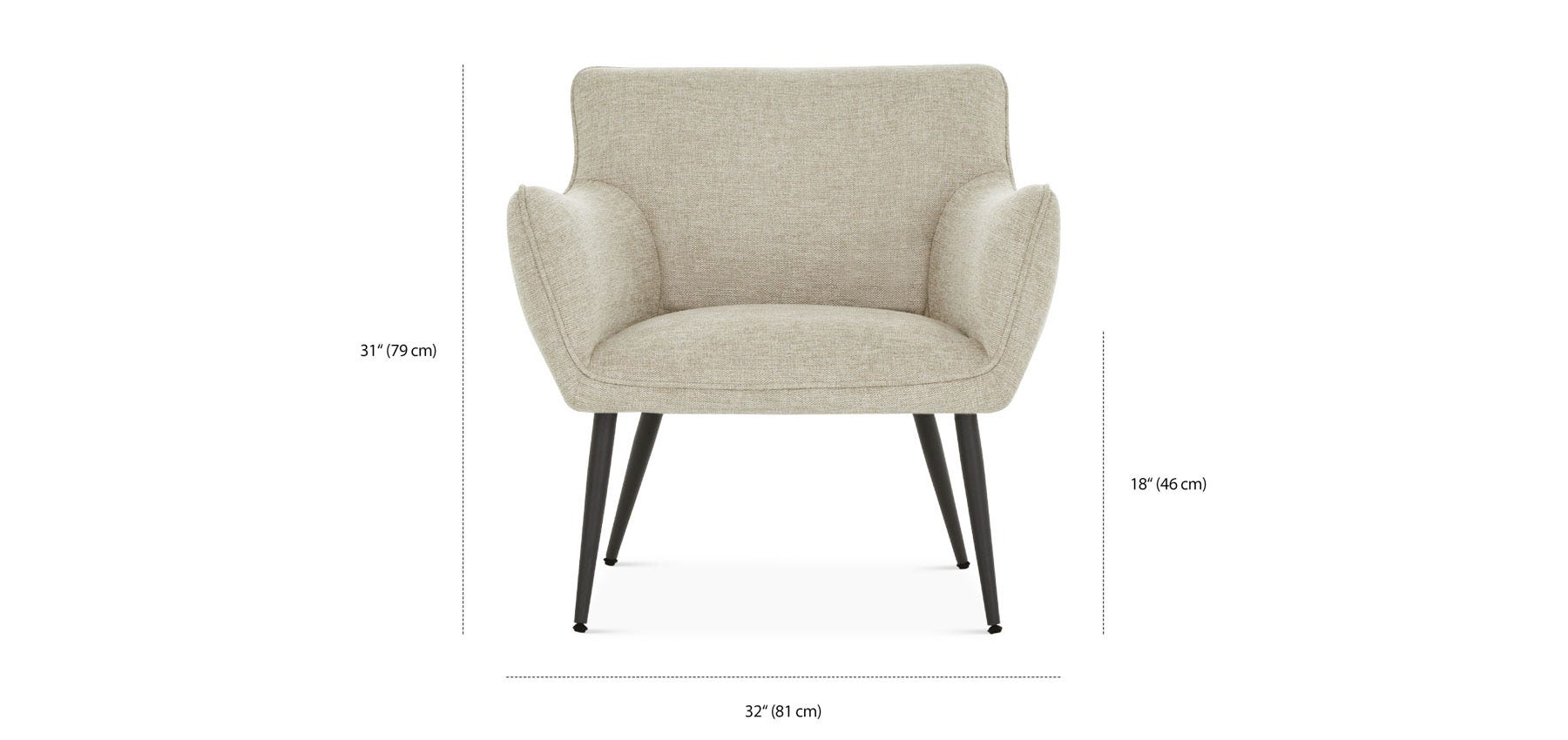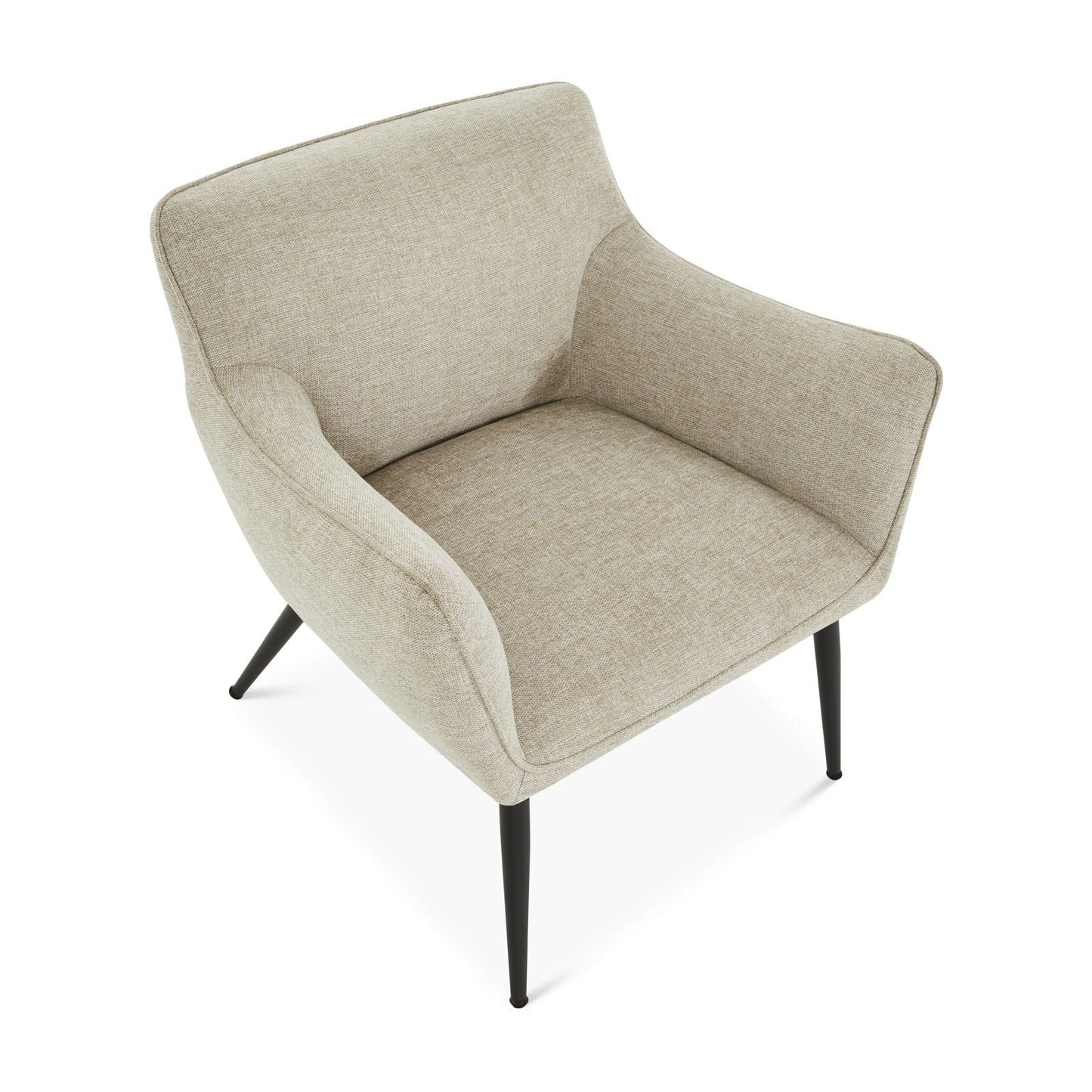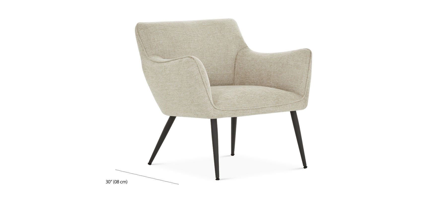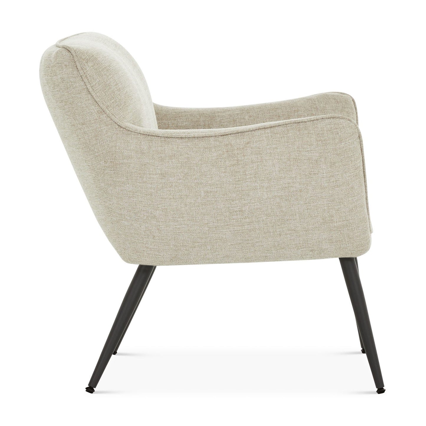 Retro-style, vintage-inspired and totally on trend, the Dean armchair has what it takes to liven up any living room. Its angled legs support a generously padded seat and armrests for a comfortable experience with plenty of support. Choose from a heathered grey, blue or ocher yellow fabric.