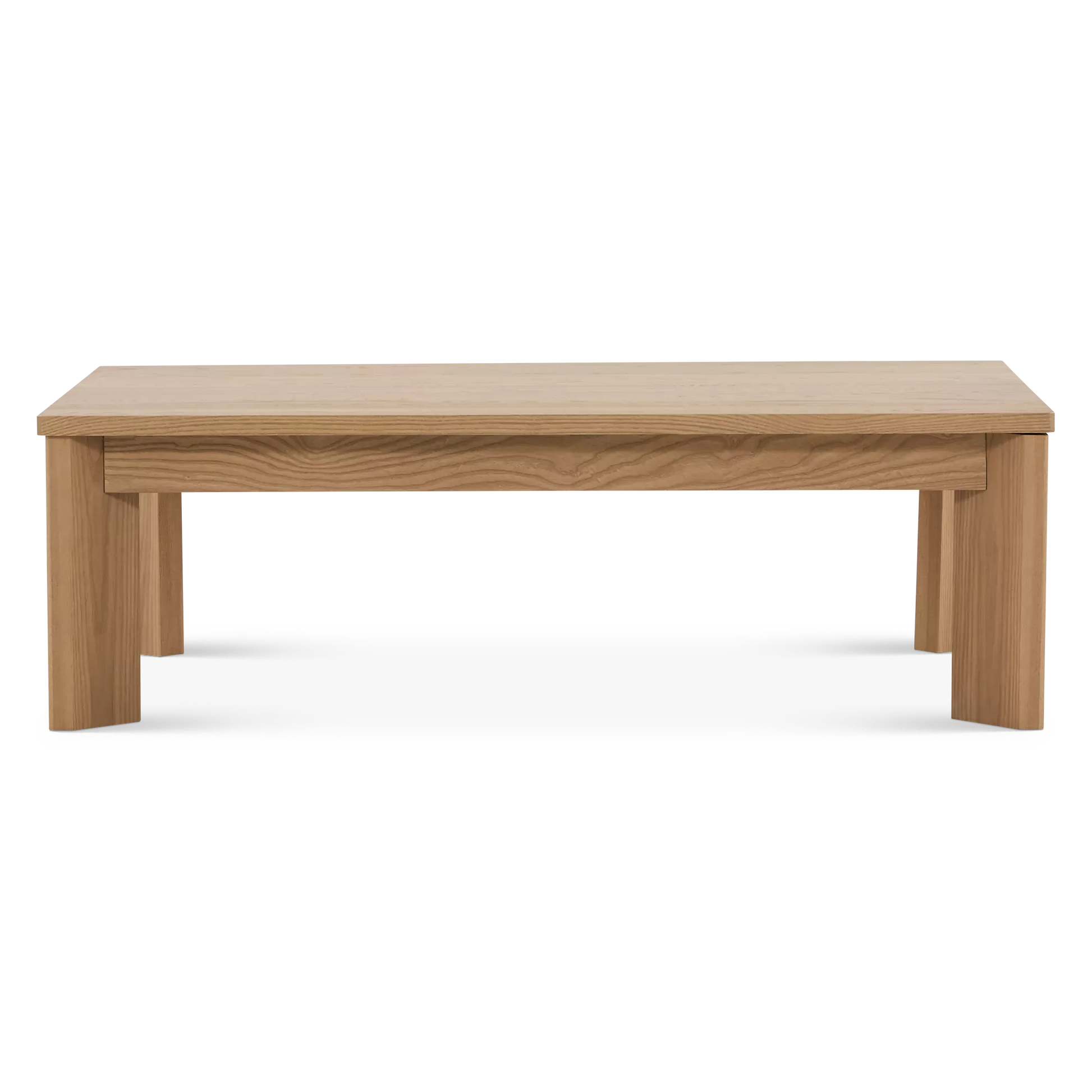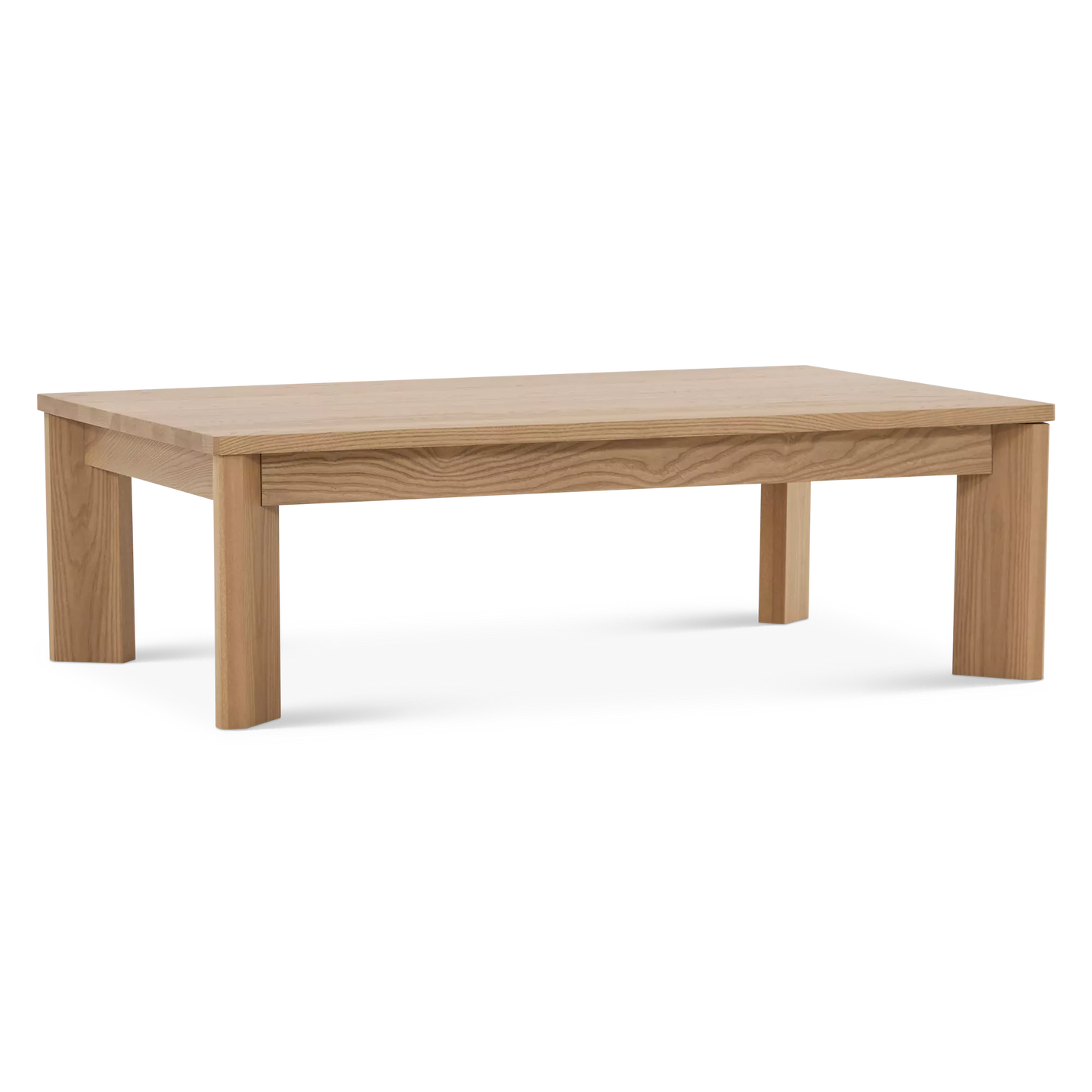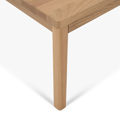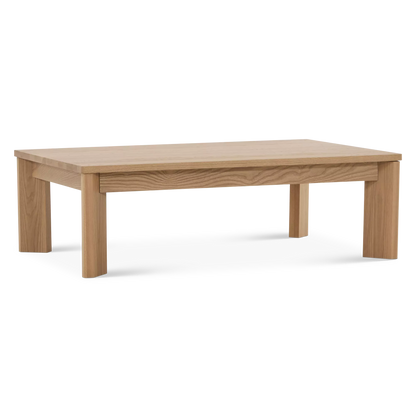 The Dina coffee table deploys a geometric rigor inspired by Scandinavian minimalism. Its rectangular profile, structured by massive legs, magnifies the natural grain of the ash wood, bringing visual serenity to the space. This locally made piece sculpts volume with an essential aesthetic.