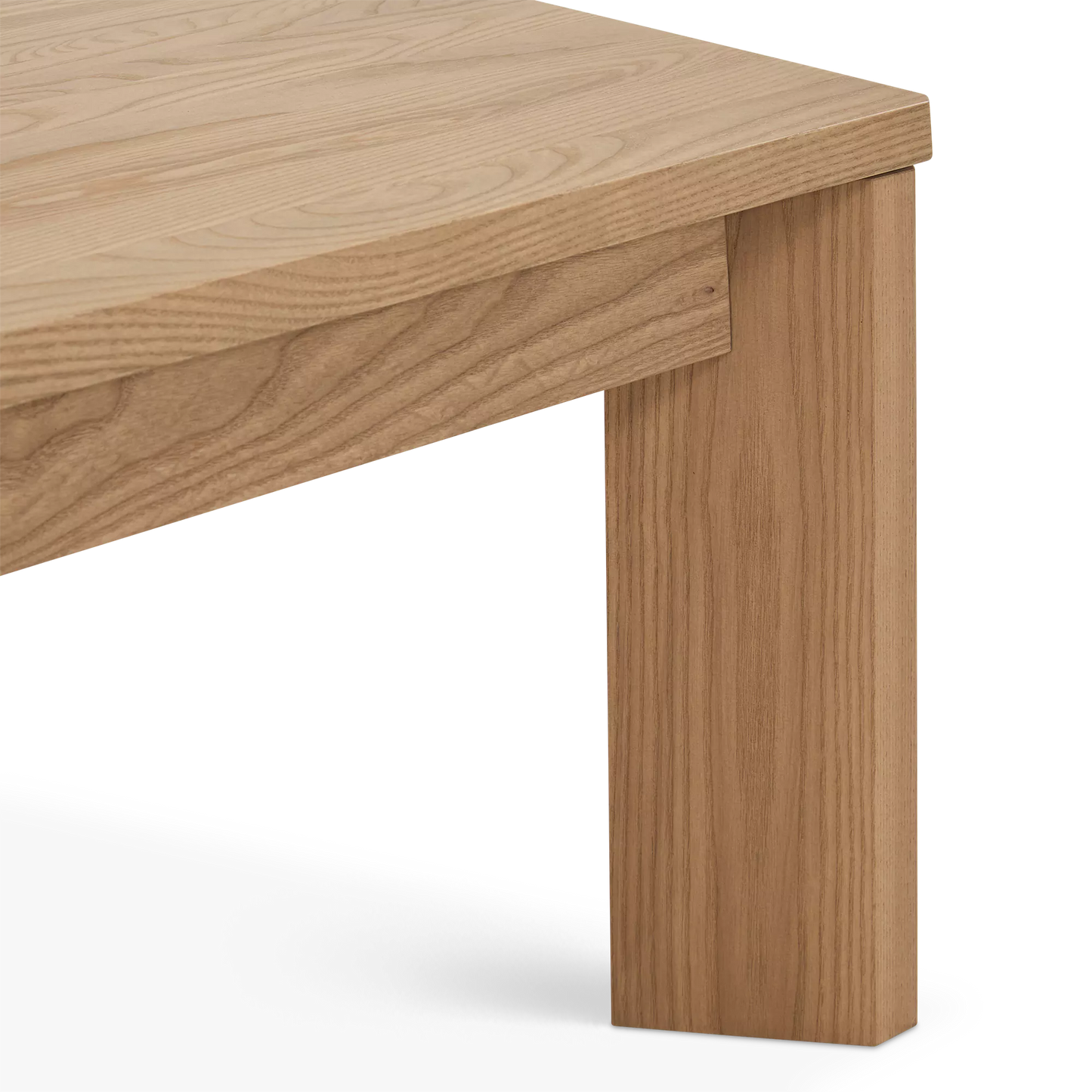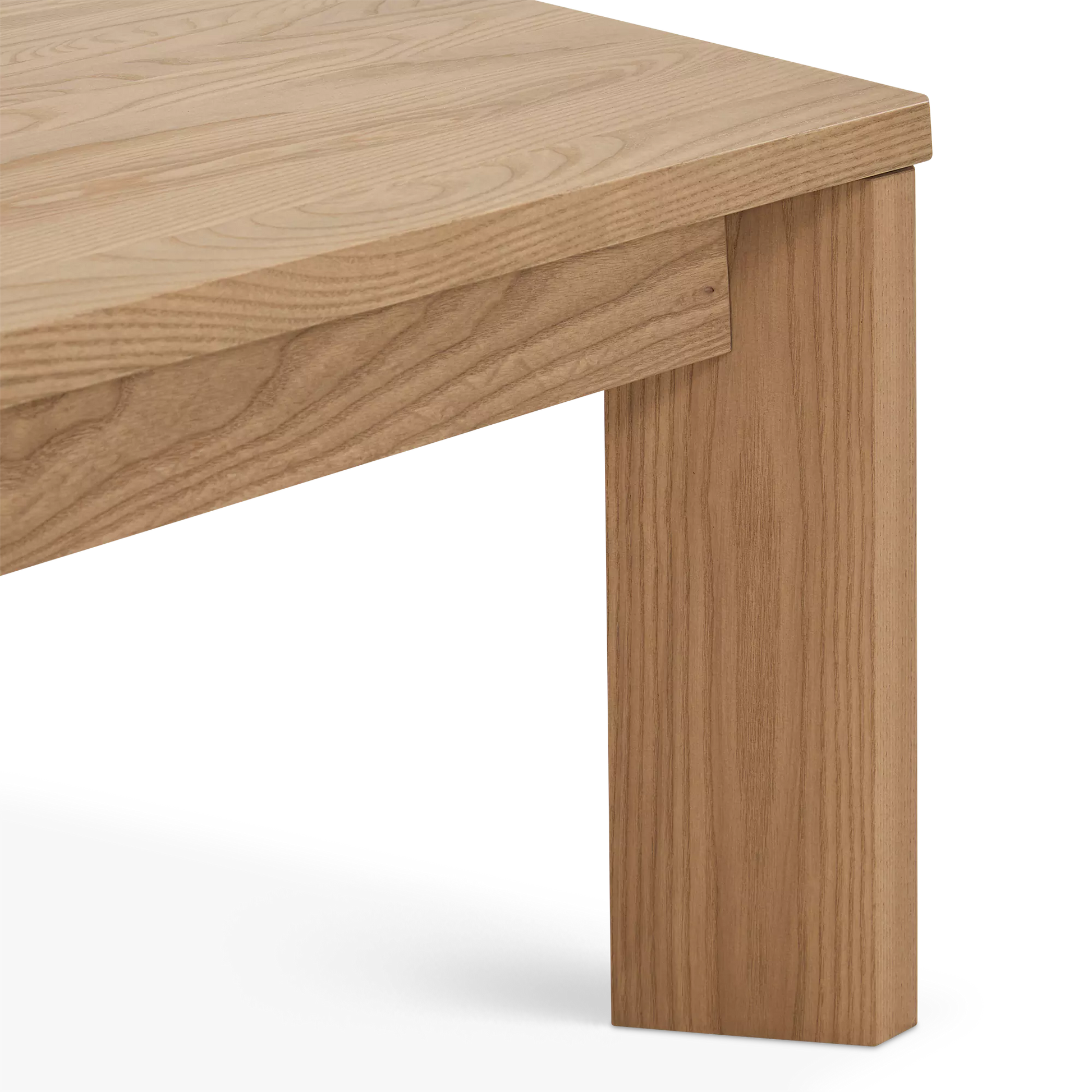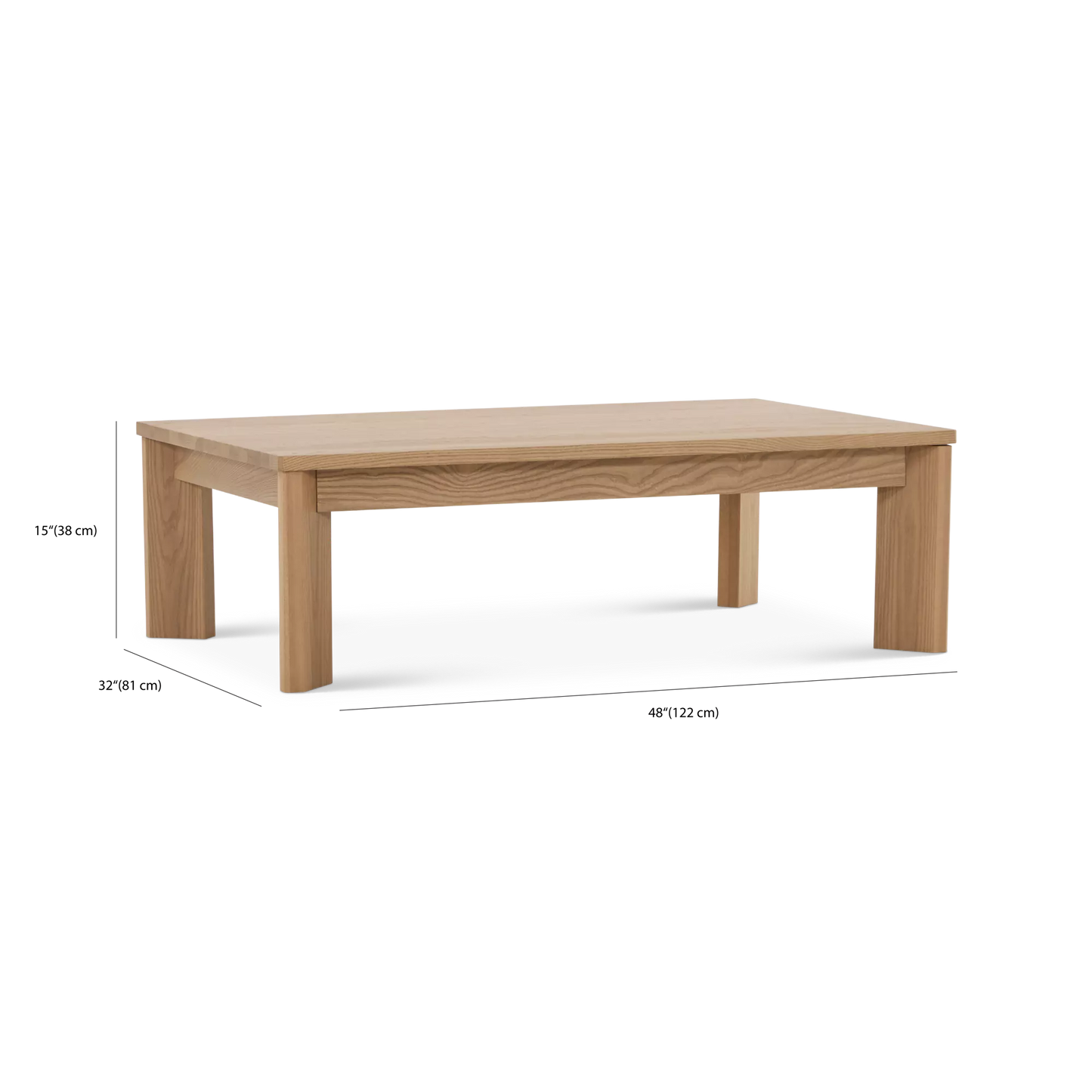 The Dina coffee table deploys a geometric rigor inspired by Scandinavian minimalism. Its rectangular profile, structured by massive legs, magnifies the natural grain of the ash wood, bringing visual serenity to the space. This locally made piece sculpts volume with an essential aesthetic.