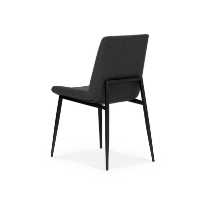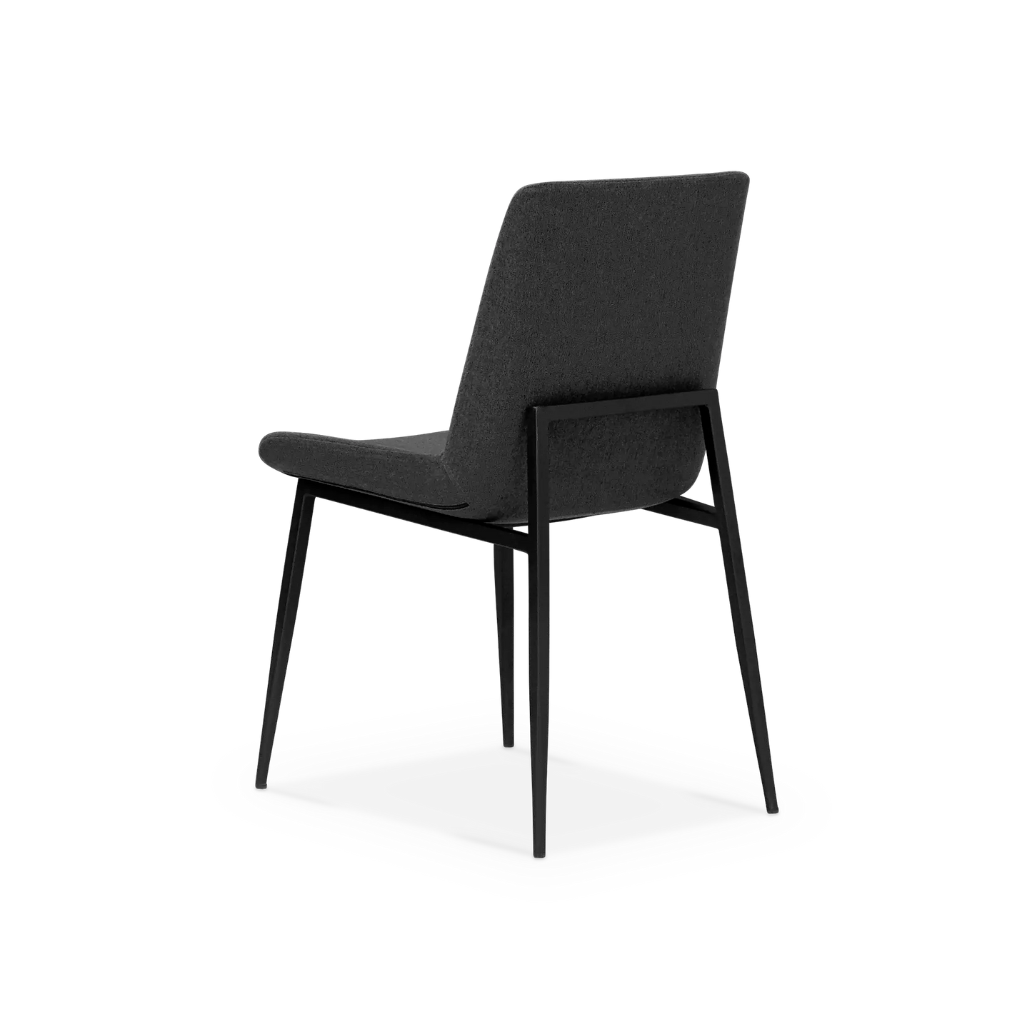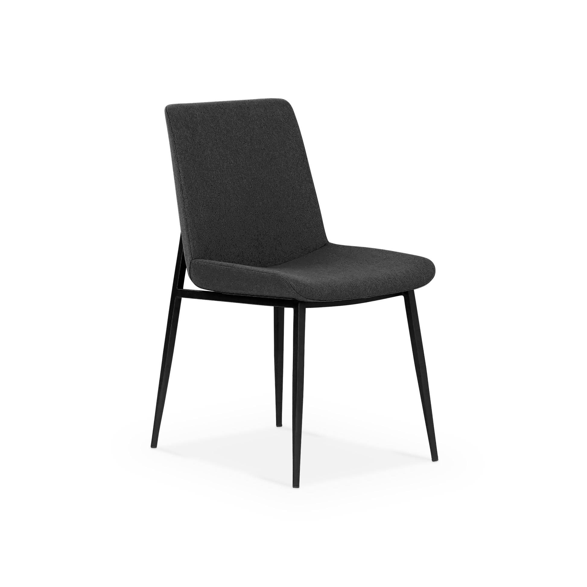 Tapered legs and felt-like fabric — the Sampson dining chair is sensual, understated and chic. Its moulded seat offers long-lasting comfort for leisurely evenings in good company.