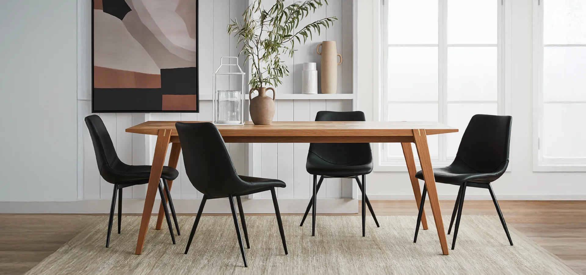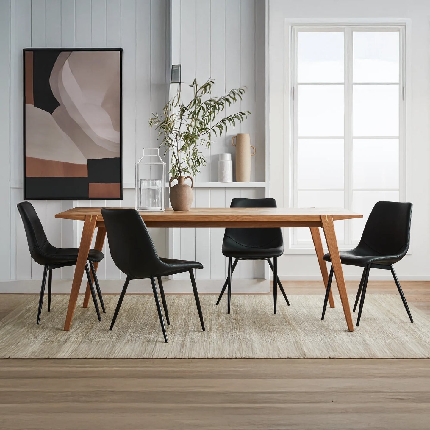 A smooth seat and slender black legs give Solomon a refined, versatile look. Whether paired with a glass or wooden table, it always finds its place beautifully.