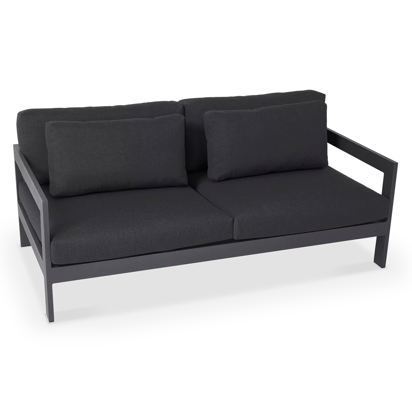 Stack the serenity deck by playing the simplicity card. Featuring an aluminium structure with a straight-lined look and no-frills cushions, the Dockside sofa will infuse a calm and modern quality into your decor. This XL version is distinguished by its larger size, both in terms of depth and width, and is enhanced with additional back cushions. Also available as a sectional sofa and armchair.