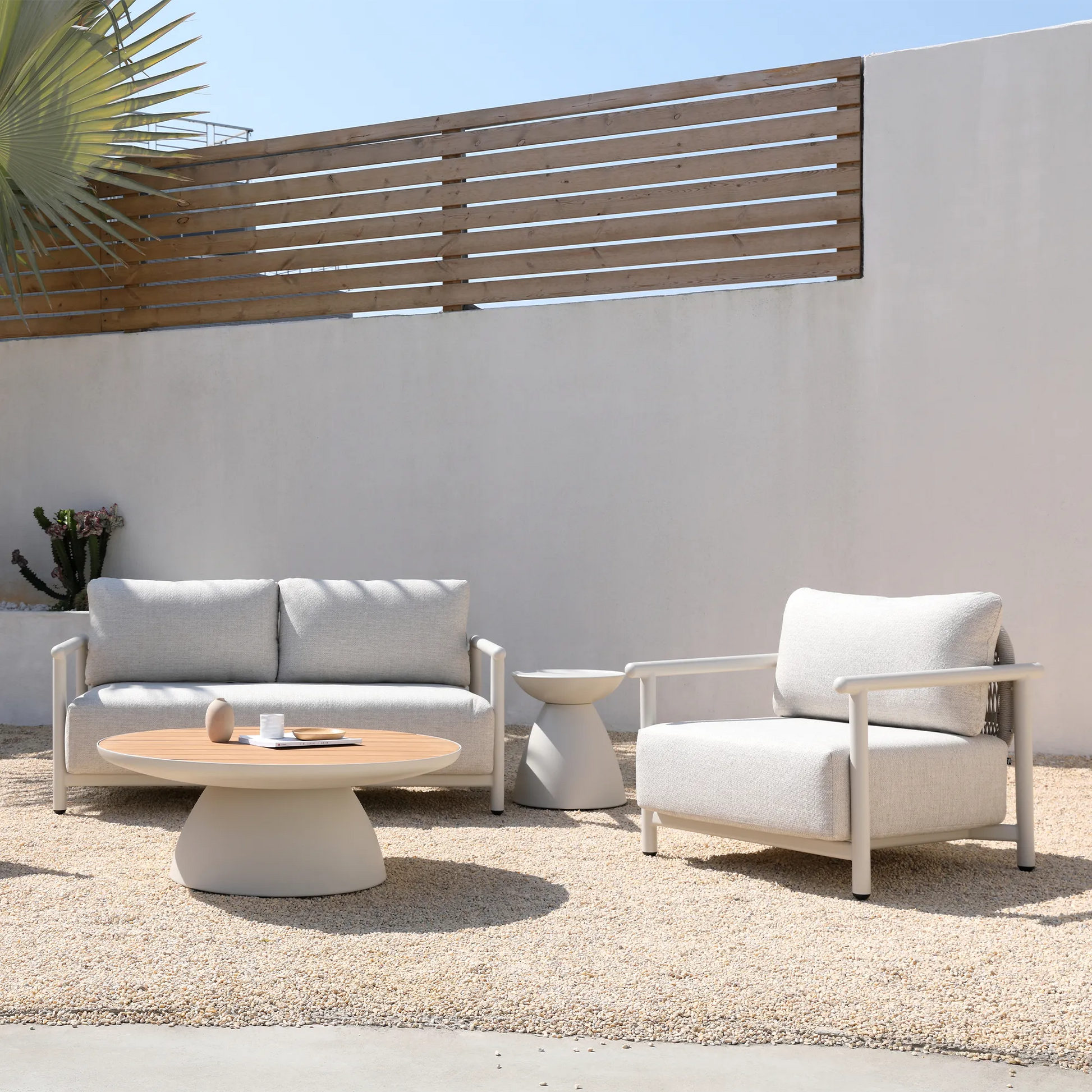 A favourite of ours with its graphic and asymmetrical hourglass silhouette! Crafted from aluminium from top to bottom, Dôme will bring an original touch to your summer living room while allowing you to keep your phone, iced latte and other essentials within easy reach. Choose a colour that contrasts with your decor for a look that stands out, or create a two-tone pairing that will wow your guests. Also available in a side table version.