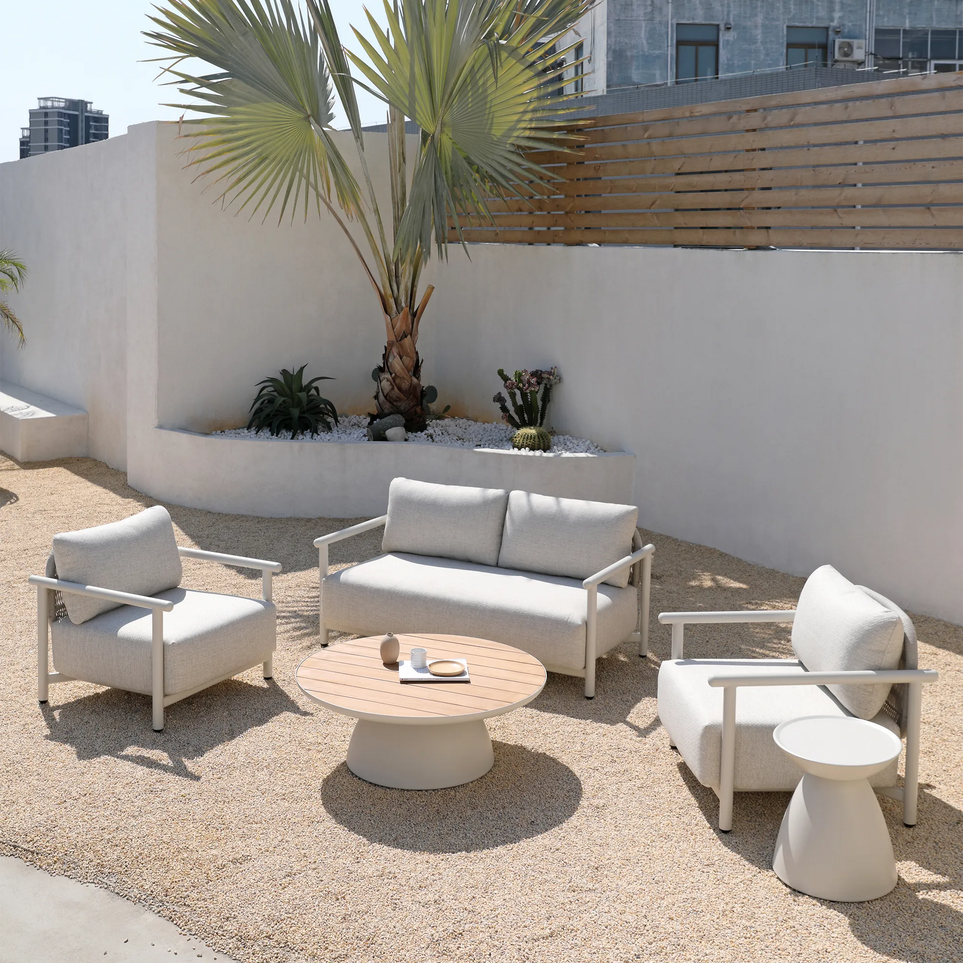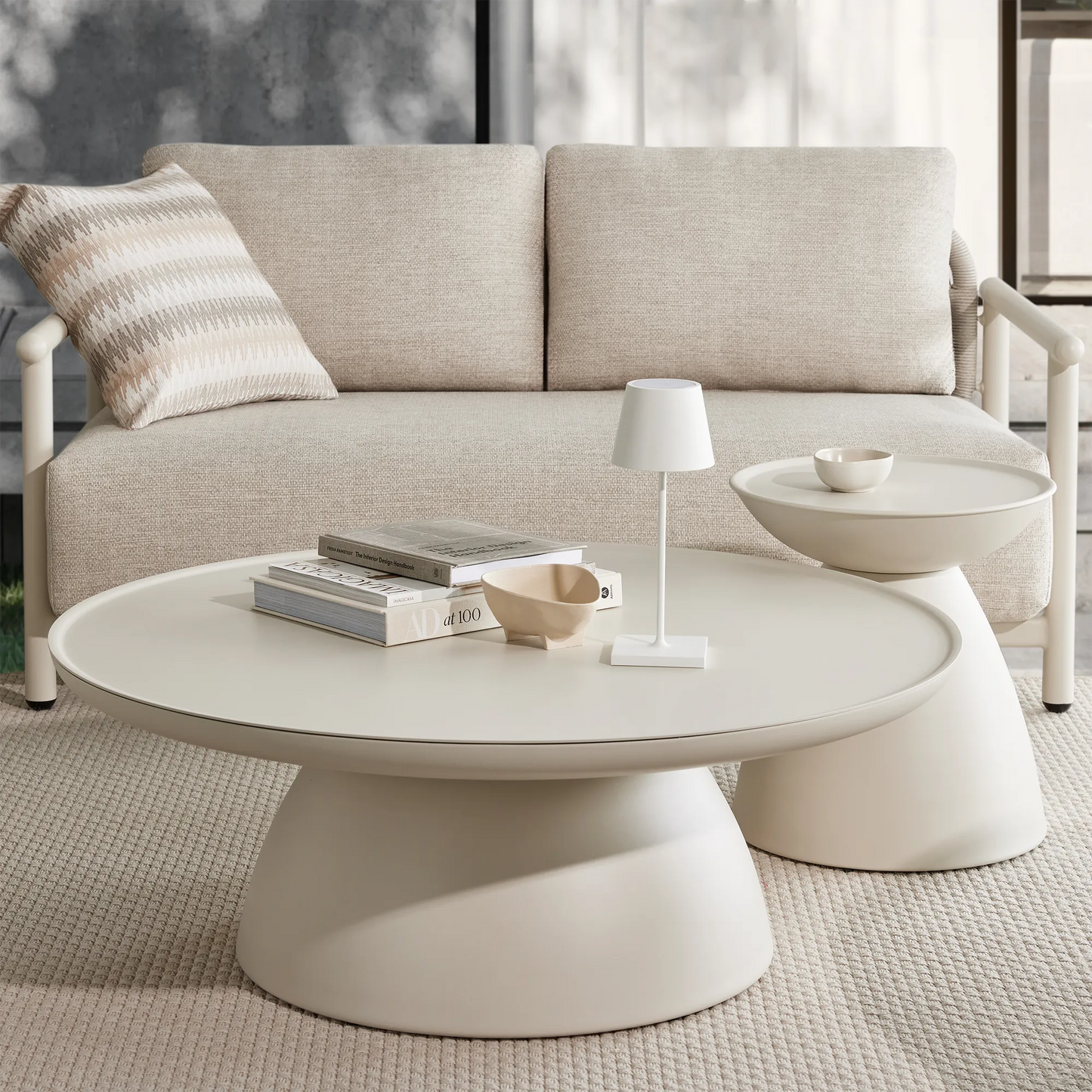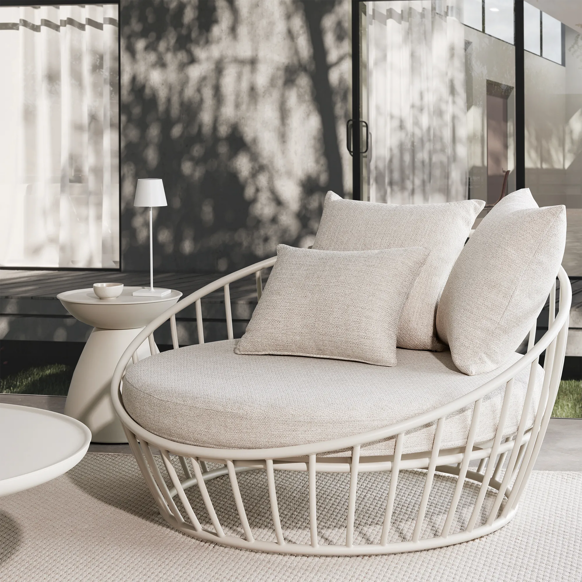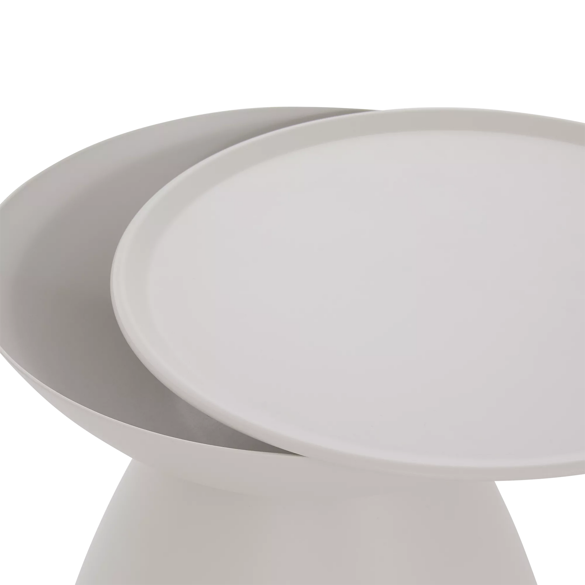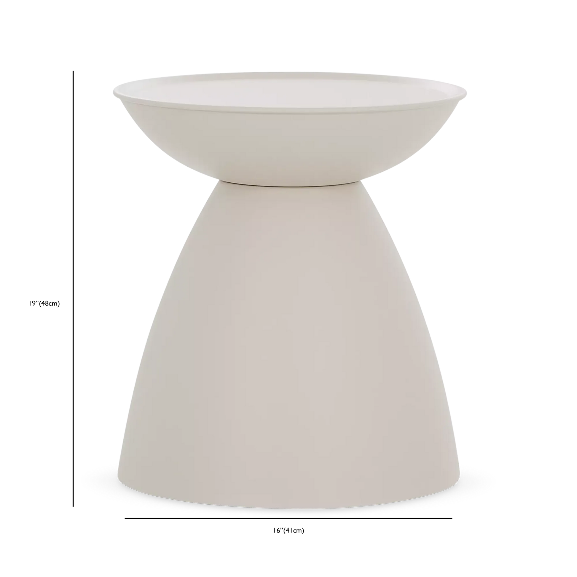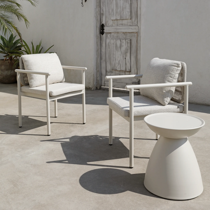 A favourite of ours with its graphic and asymmetrical hourglass silhouette! Crafted from aluminium from top to bottom, Dôme will bring an original touch to your summer living room while allowing you to keep your phone, iced latte and other essentials within easy reach. Choose a colour that contrasts with your decor for a look that stands out, or create a two-tone pairing that will wow your guests. Also available in a coffee table version.