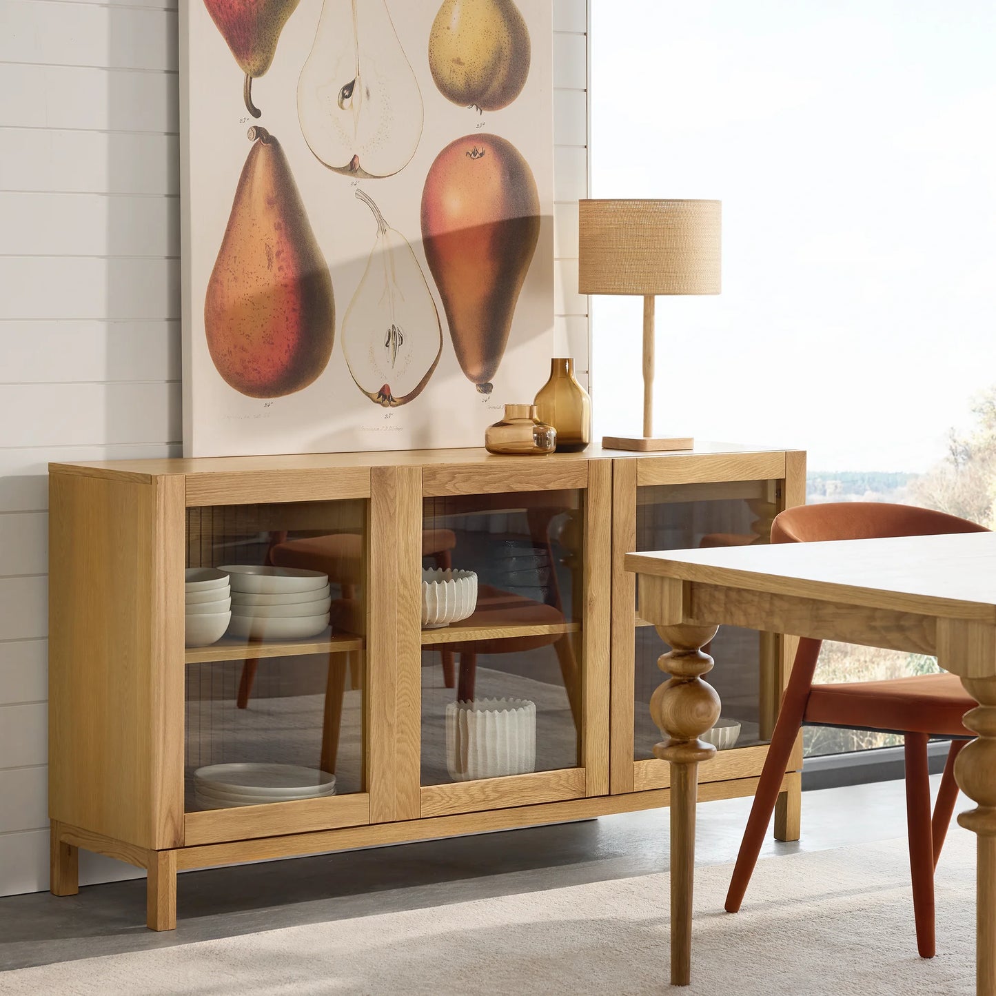 The floor lamp Ellis presents a simple silhouette that highlights its natural materials. The natural wood grain combined with a woven and textured lampshade creates an elegant design suitable for all styles.