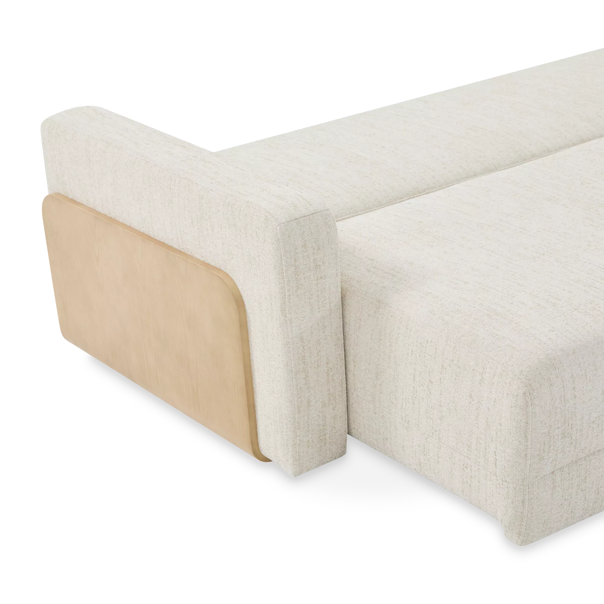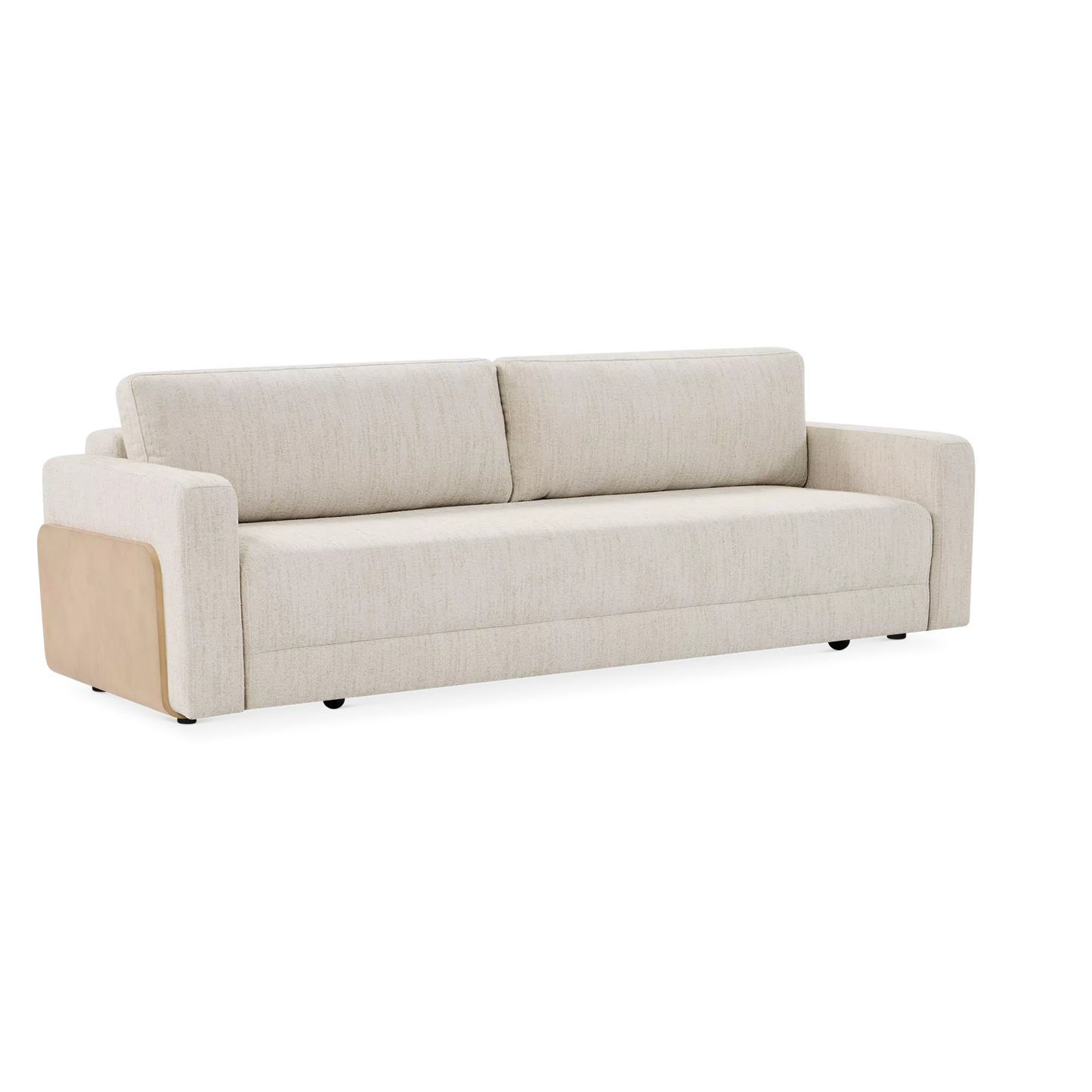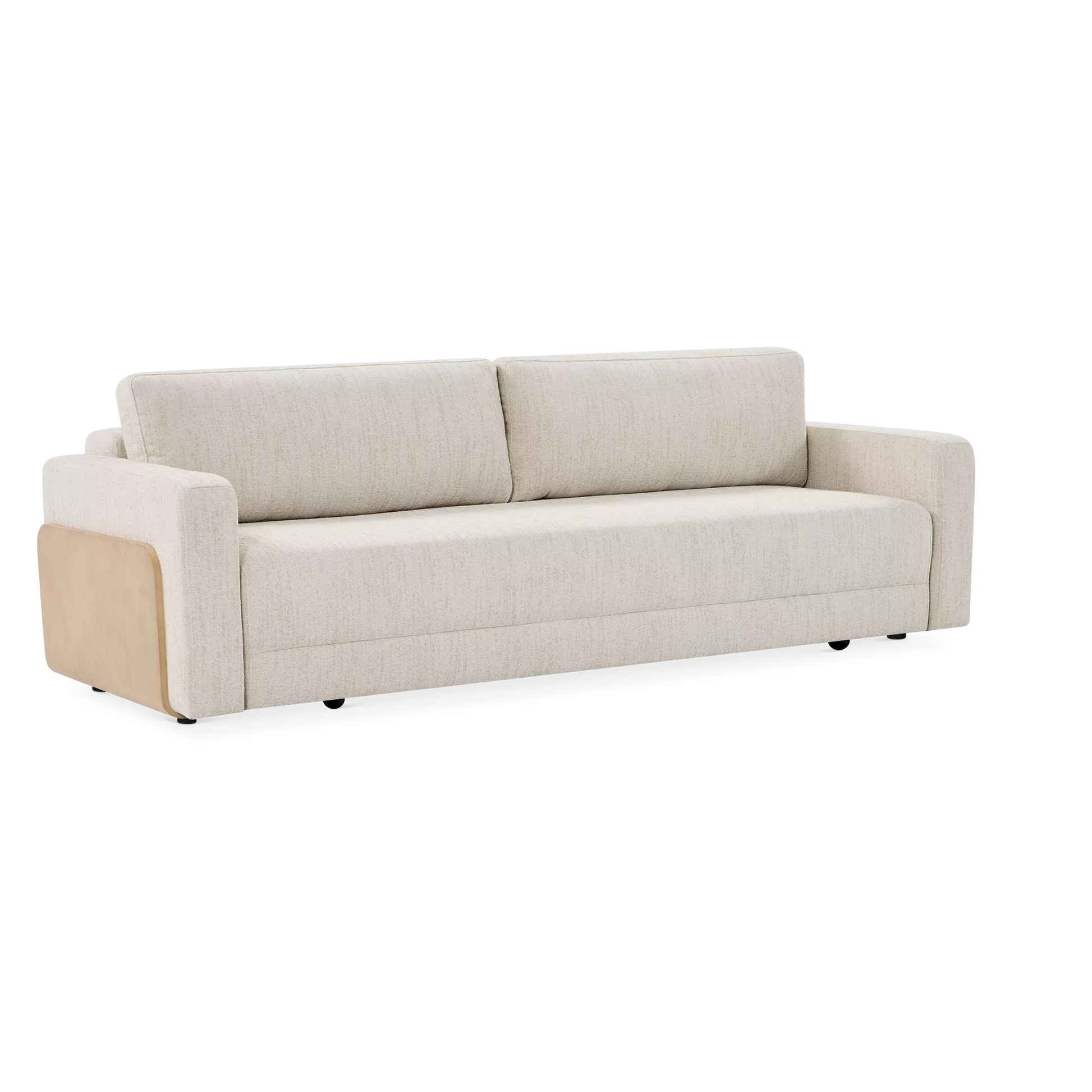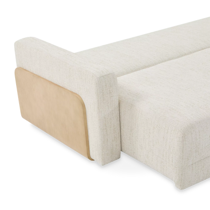 Elegant by day, inviting by night. The Elva sofa blends comfortable seating with a seamlessly integrated sleeper function. Clean lines, textured fabric and wood-accented arms give it a refined, contemporary look, while a spacious bed folds out in one smooth motion.