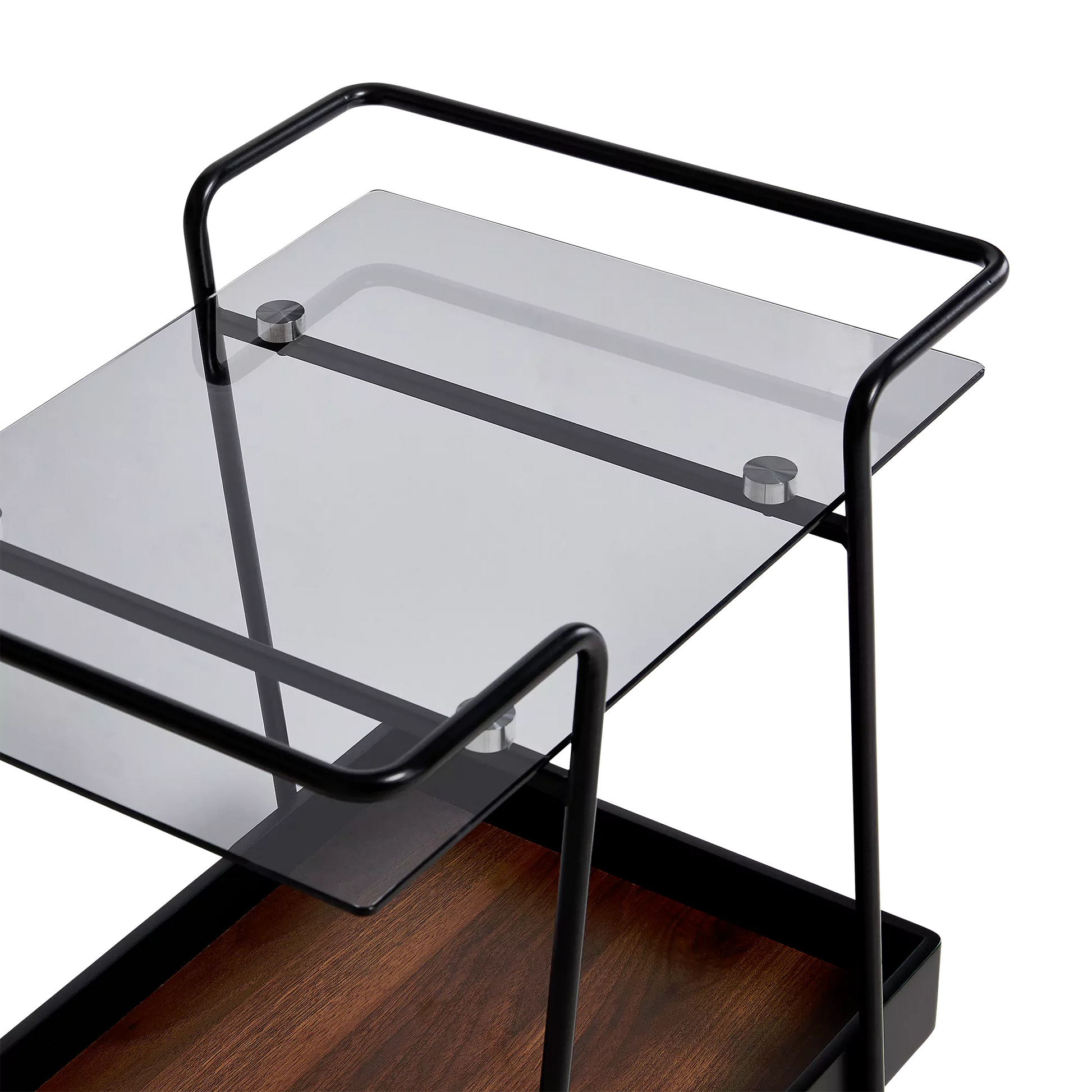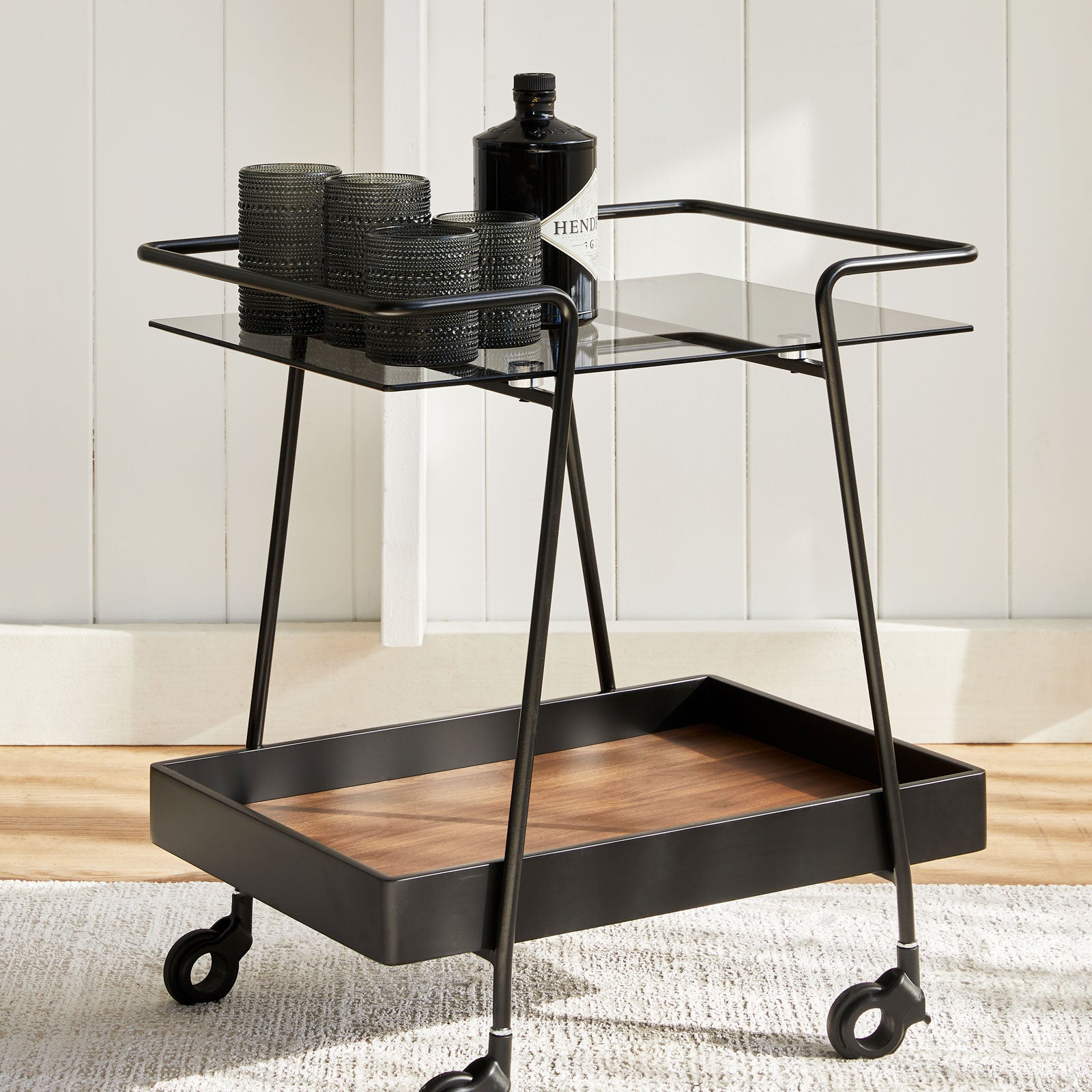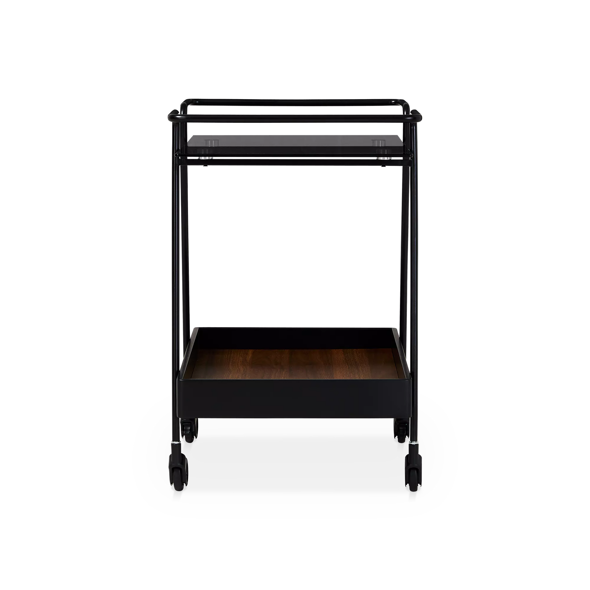 The Estelle cart is at your service! With a painted metal frame and a glass shelf positioned above a storage compartment in walnut wood, it flaunts an innovative design that’s as practical as it is eye-pleasing.