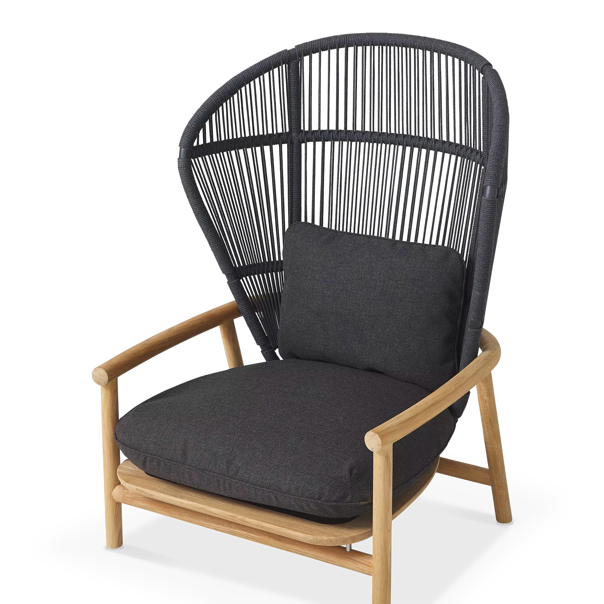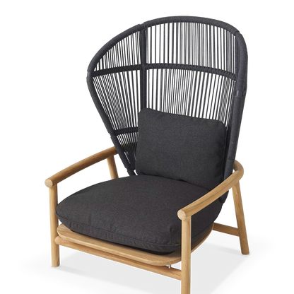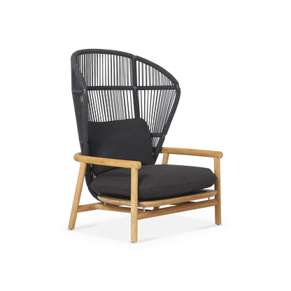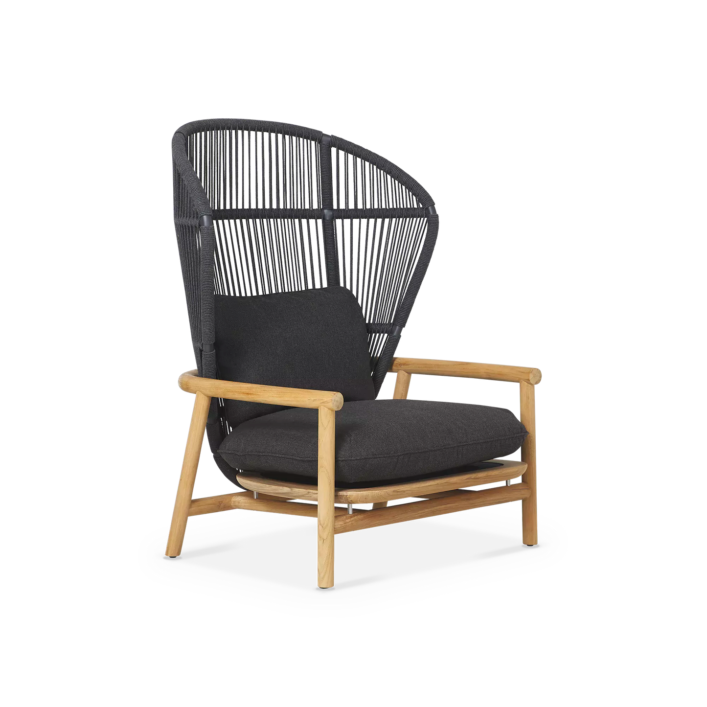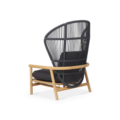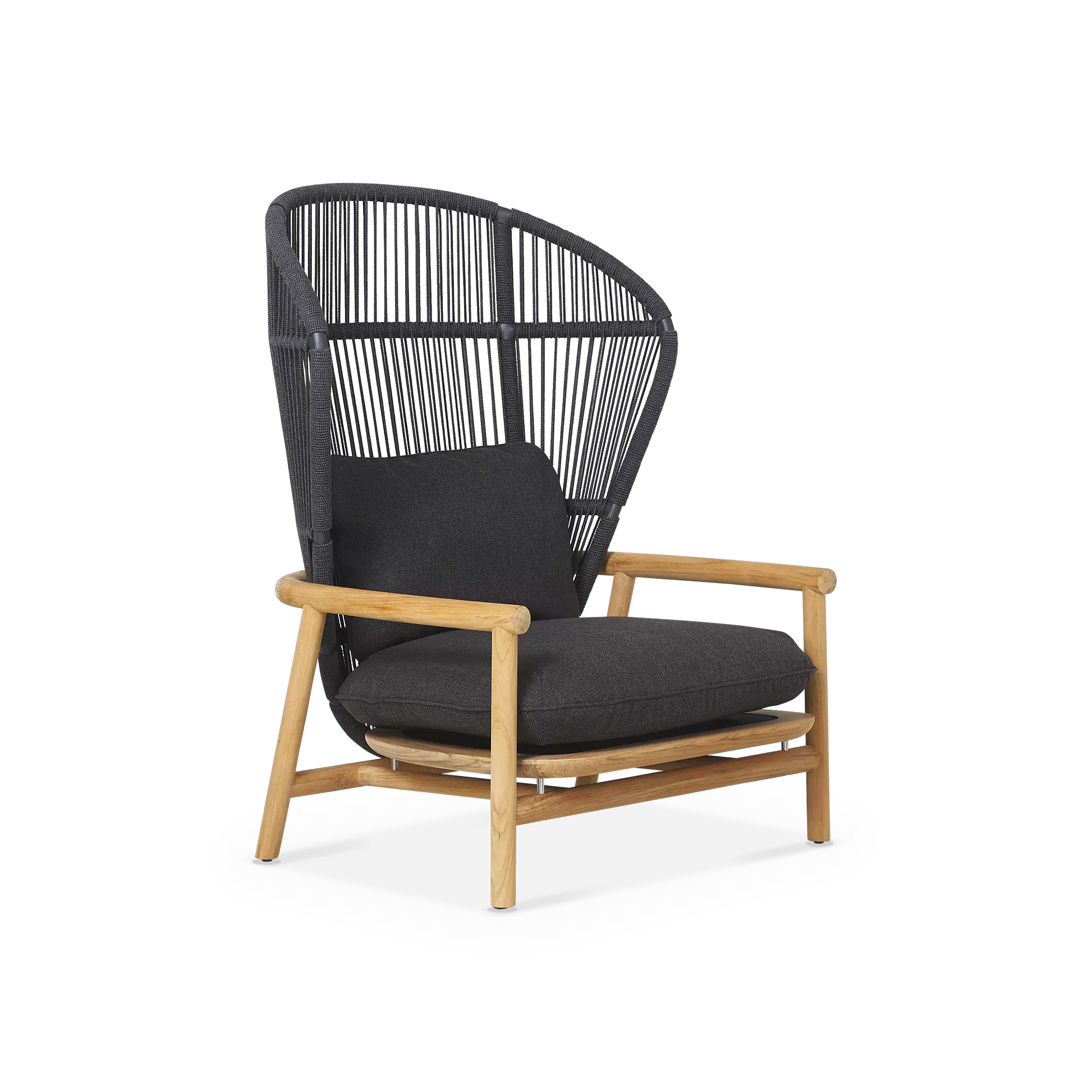 This sculptural model from Gloster was designed by Sebastian Herkner, renowned for his unique material combinations. For the Fern lounge chair, he pairs teak wood with textured fabric and acrylic cord. The contrast between the low-slung seat and the lofty backrest soaring toward the sky provides a mesmerizing look while preserving the privacy of the person who’s seated upon the chair.
