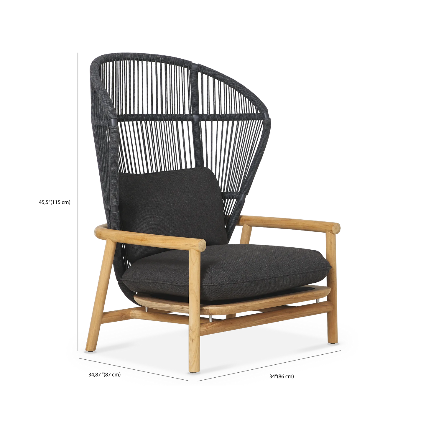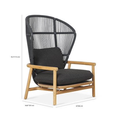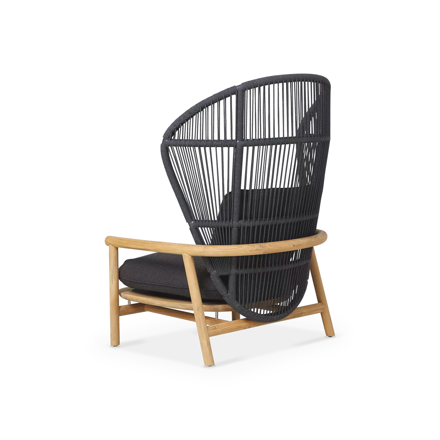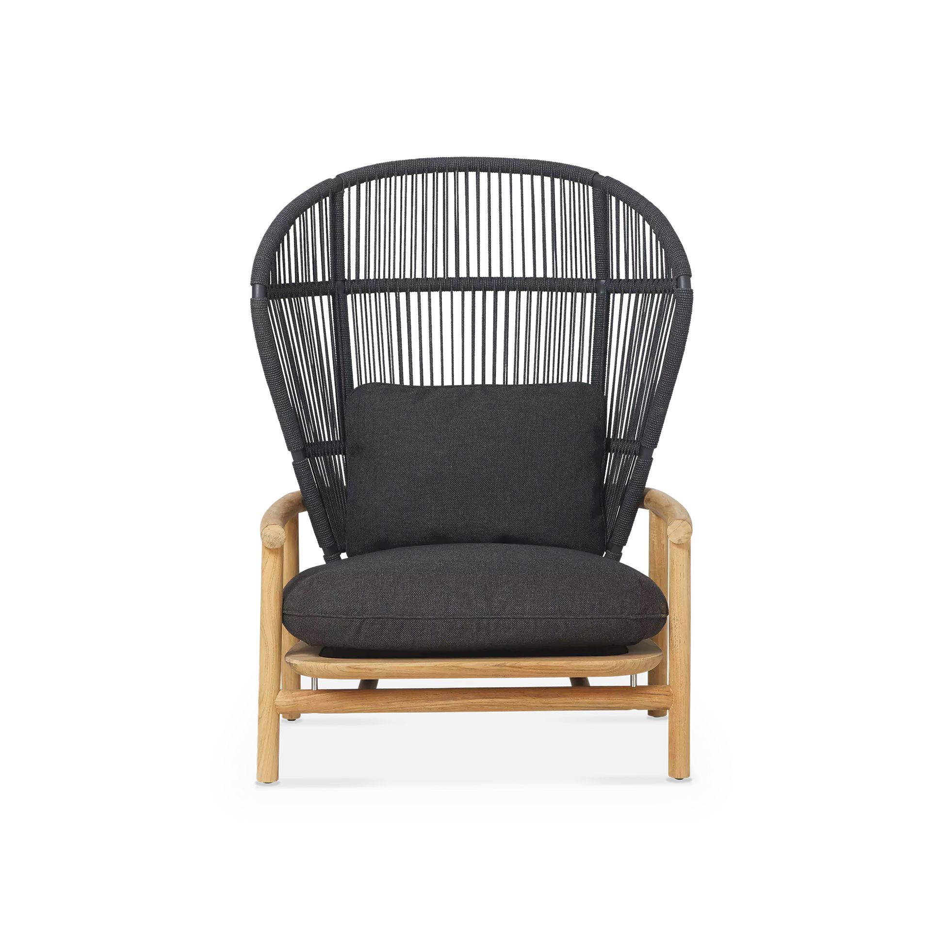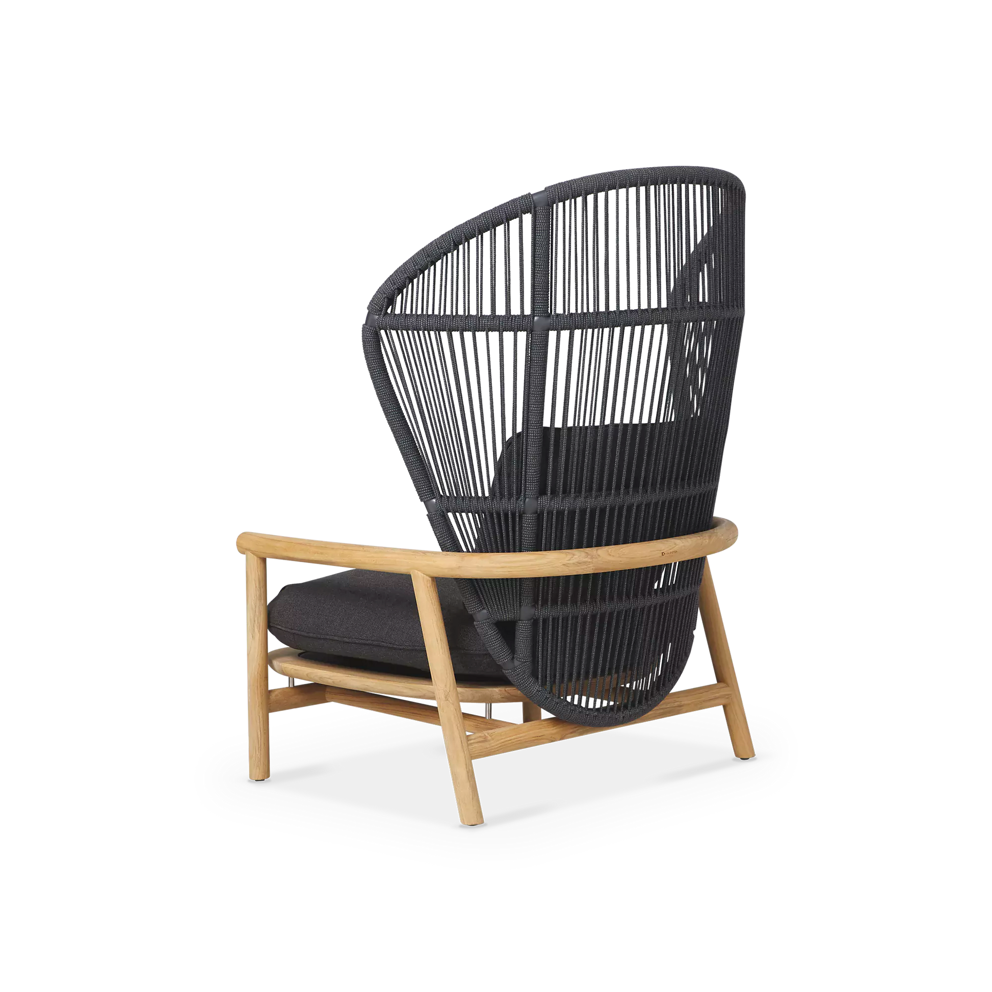 This sculptural model from Gloster was designed by Sebastian Herkner, renowned for his unique material combinations. For the Fern lounge chair, he pairs teak wood with textured fabric and acrylic cord. The contrast between the low-slung seat and the lofty backrest soaring toward the sky provides a mesmerizing look while preserving the privacy of the person who’s seated upon the chair.