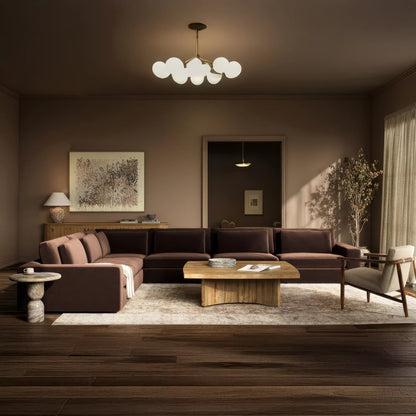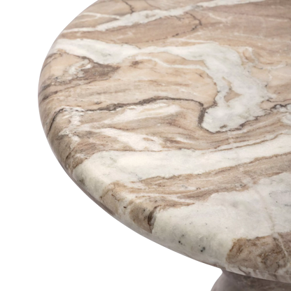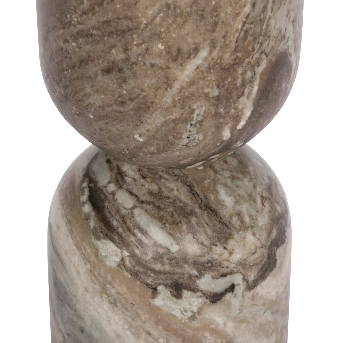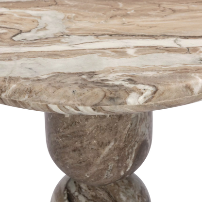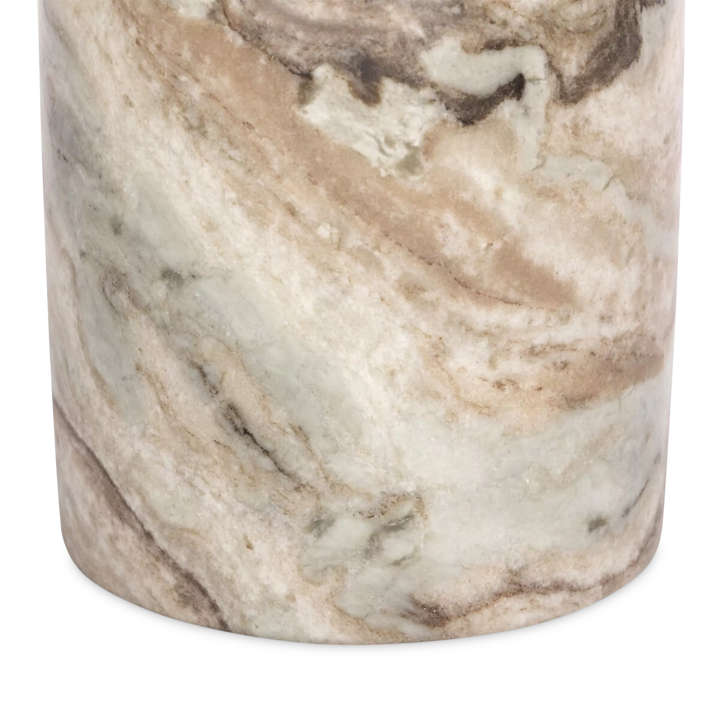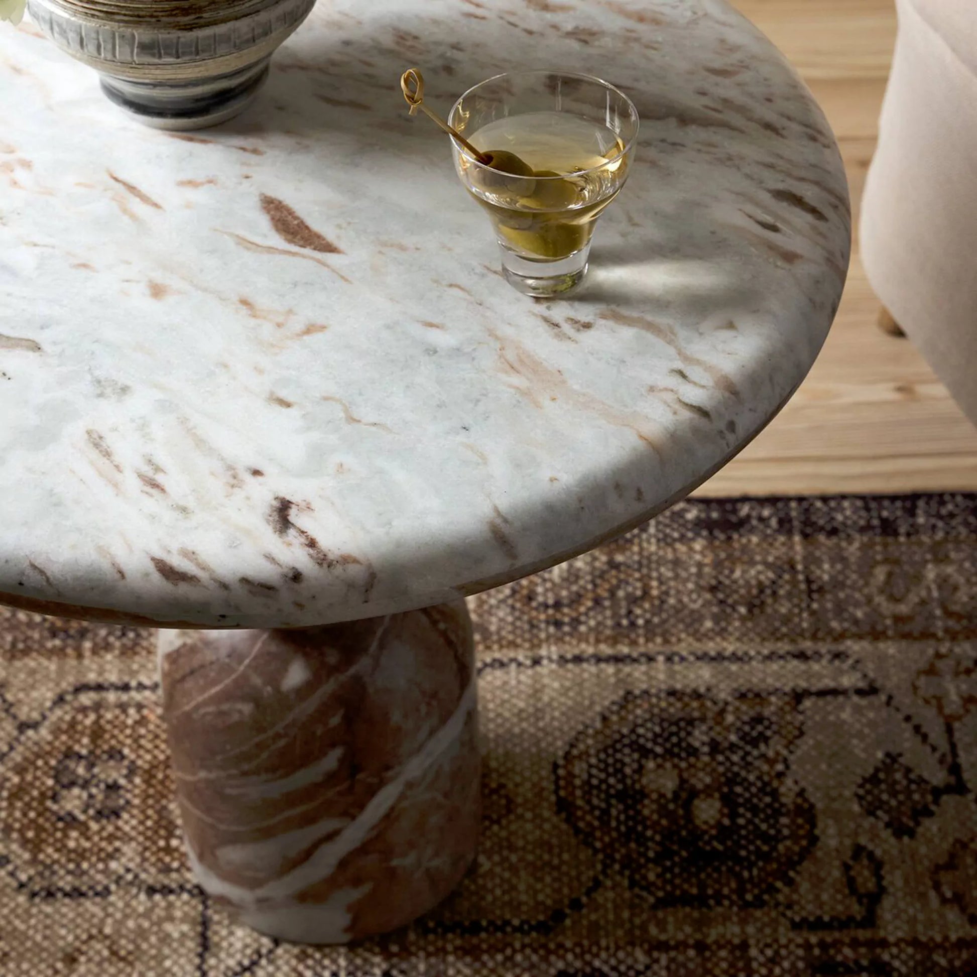 The Figueroa side table pairs clean geometry with the rich character of solid Sawar marble. Its sculptural silhouette is shaped by soft, continuous curves, allowing the natural veining and warm light-brown tones to take centre stage. Each piece highlights the organic variation of the stone, bringing subtle movement and refined presence to any space. A design collaboration by Amber Lewis and Four Hands.