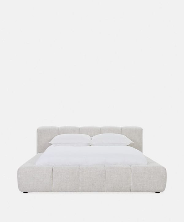 The Fiona bed is fully upholstered in a bouclé fabric, featuring a channel-tufted headboard for a comfortable and inviting look. Its cube-like yet plush frame will give your bedroom both a modern touch and cozy feel