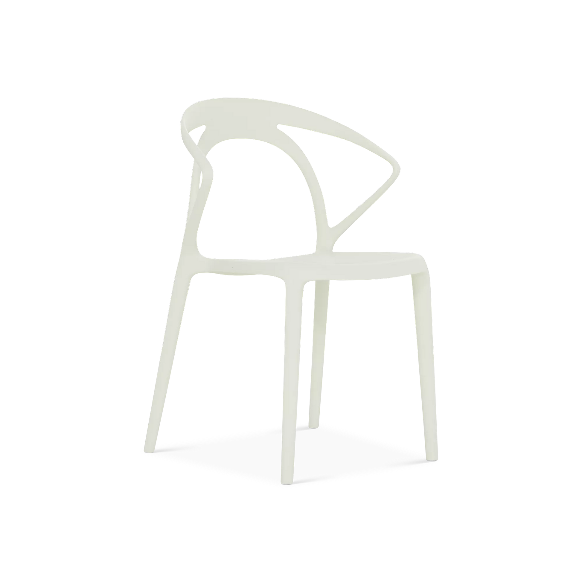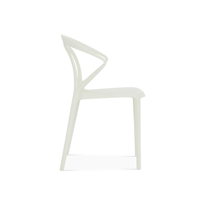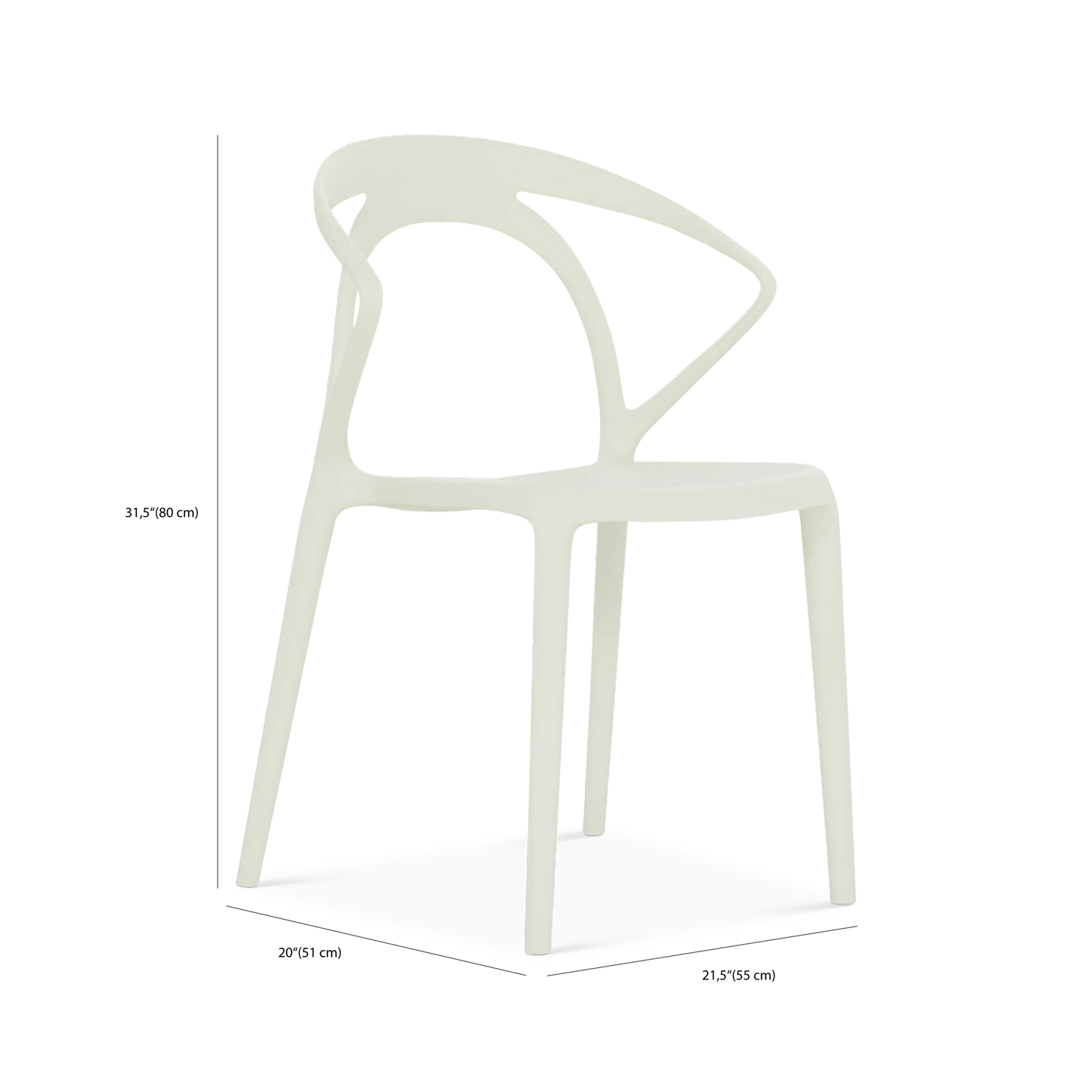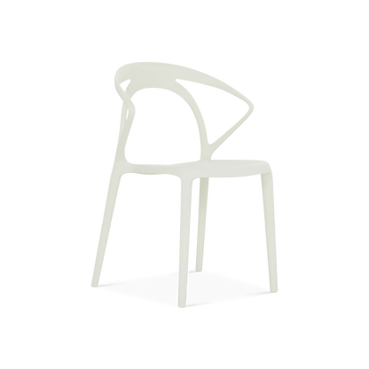 The Foster dining chair in cream-coloured polypropylene is the perfect way to create a fresh, modern look. Featuring an architectural design with interlocking open shapes forming the armrests and backrest, it will bring a dynamic, contemporary edge to any space.