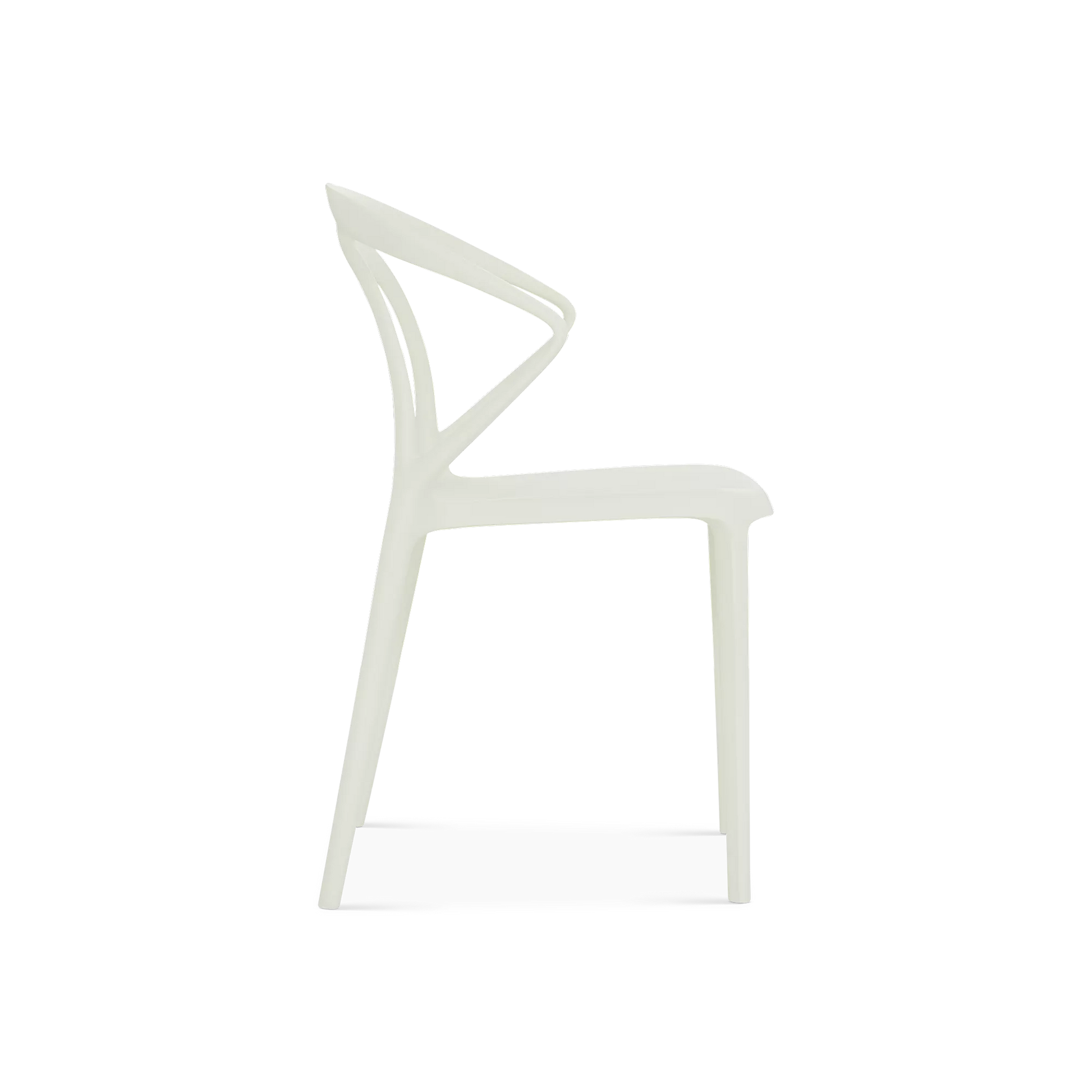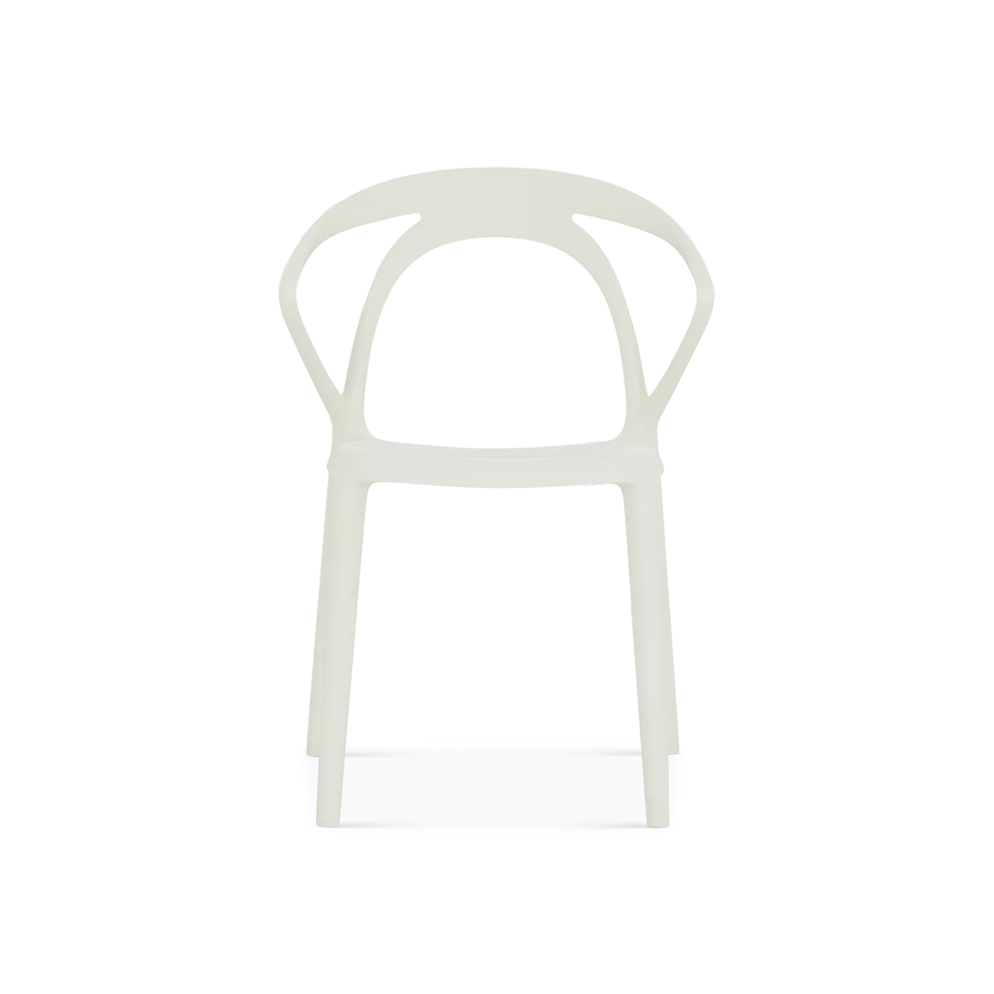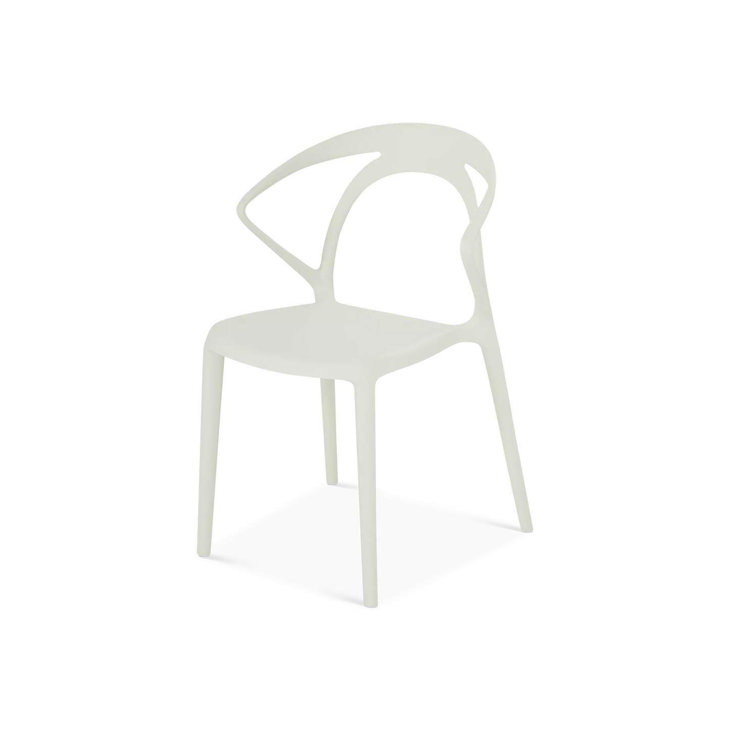 The Foster dining chair in cream-coloured polypropylene is the perfect way to create a fresh, modern look. Featuring an architectural design with interlocking open shapes forming the armrests and backrest, it will bring a dynamic, contemporary edge to any space.
