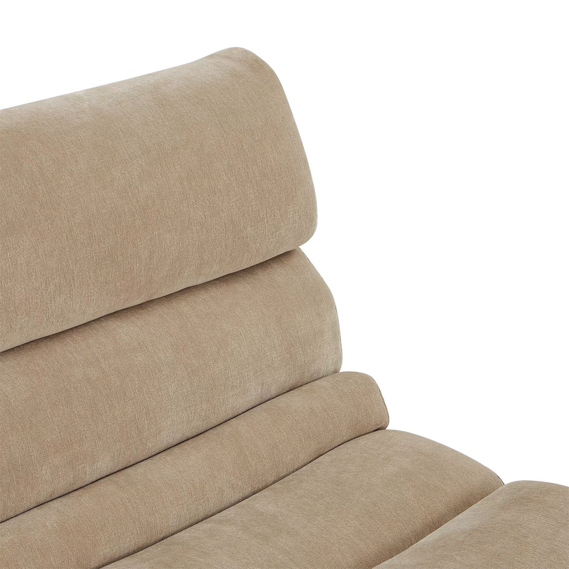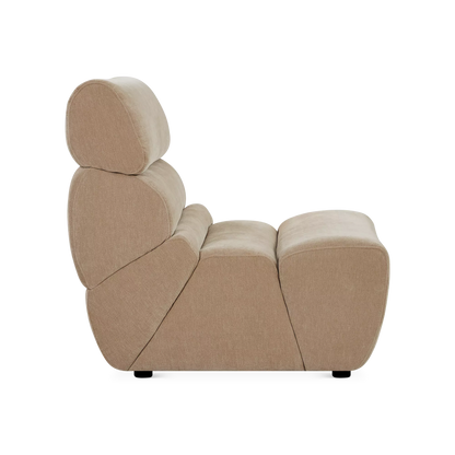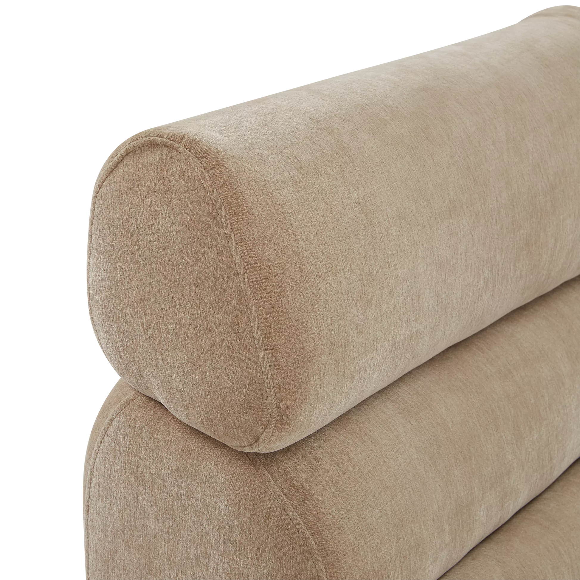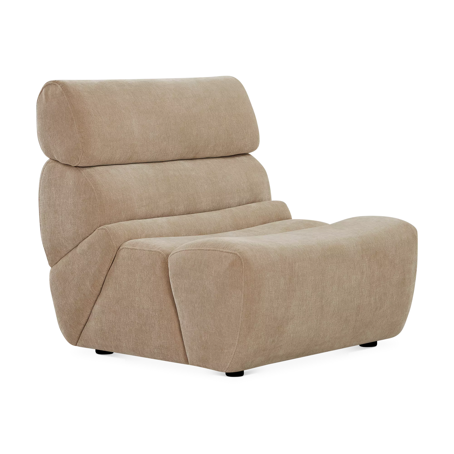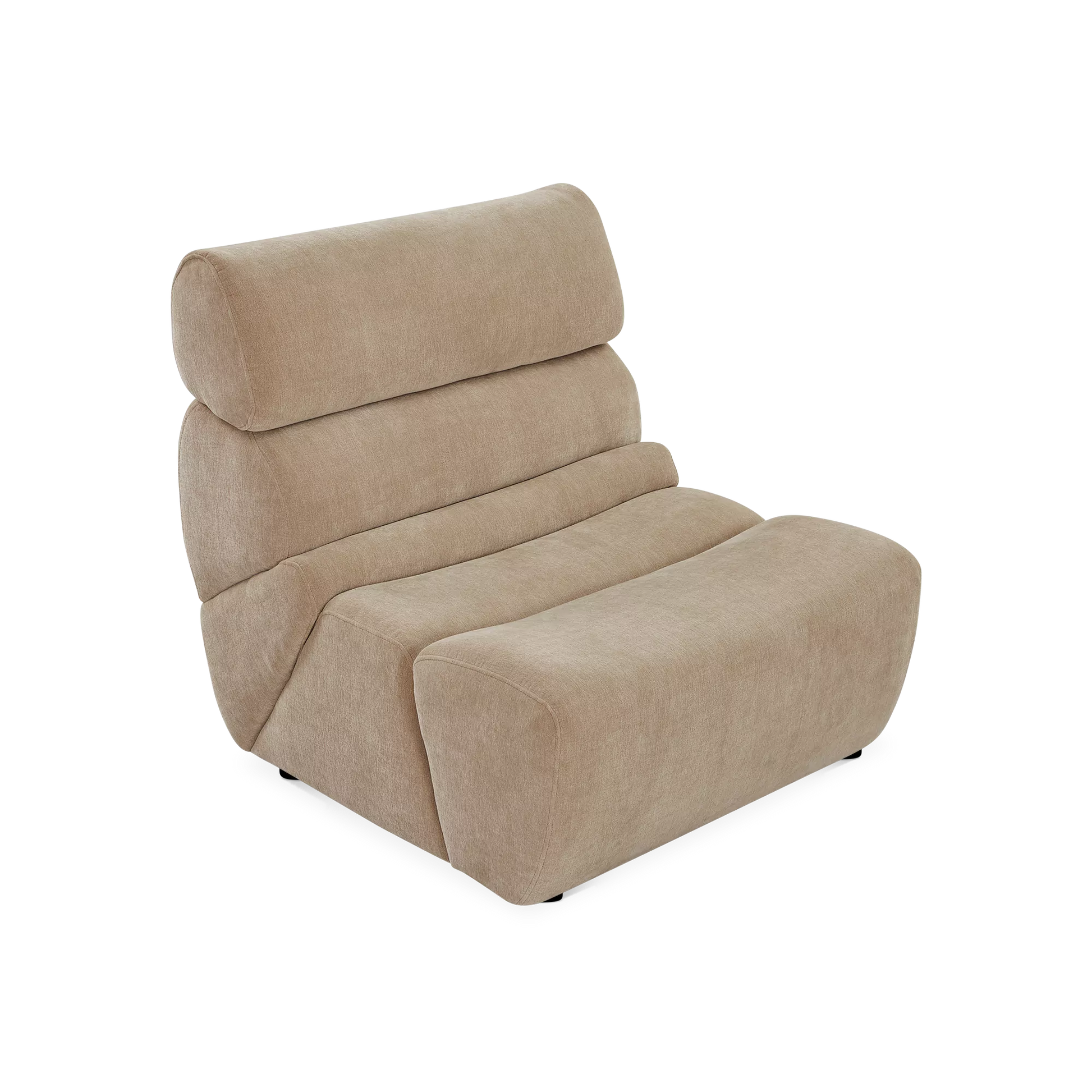 The Fould modular sofa collection brings sculptural softness and easy versatility to any living space. Upholstered in plush beige fabric, each piece features a distinctive silhouette with channel-tufted cushions for added depth and a luxurious feel. It offers supportive comfort, relaxed curves and a neutral tone that blends seamlessly into modern and laid-back interiors alike.
