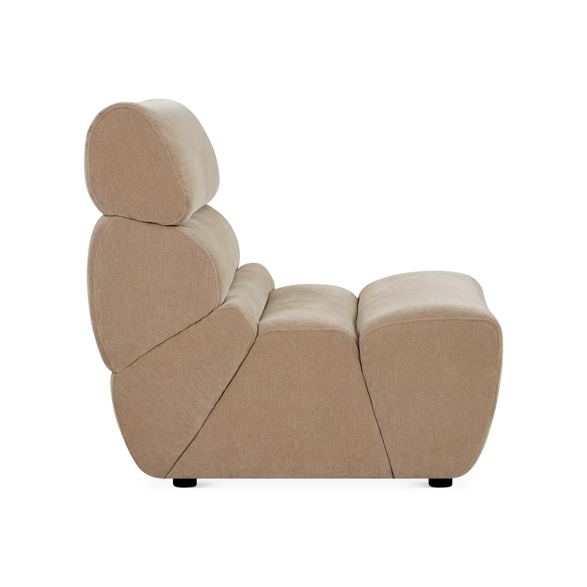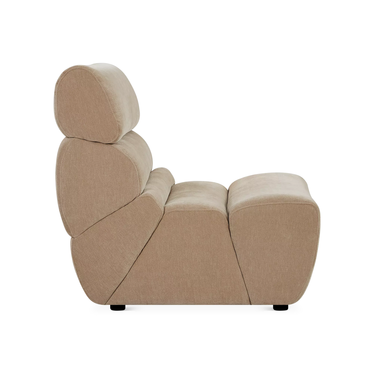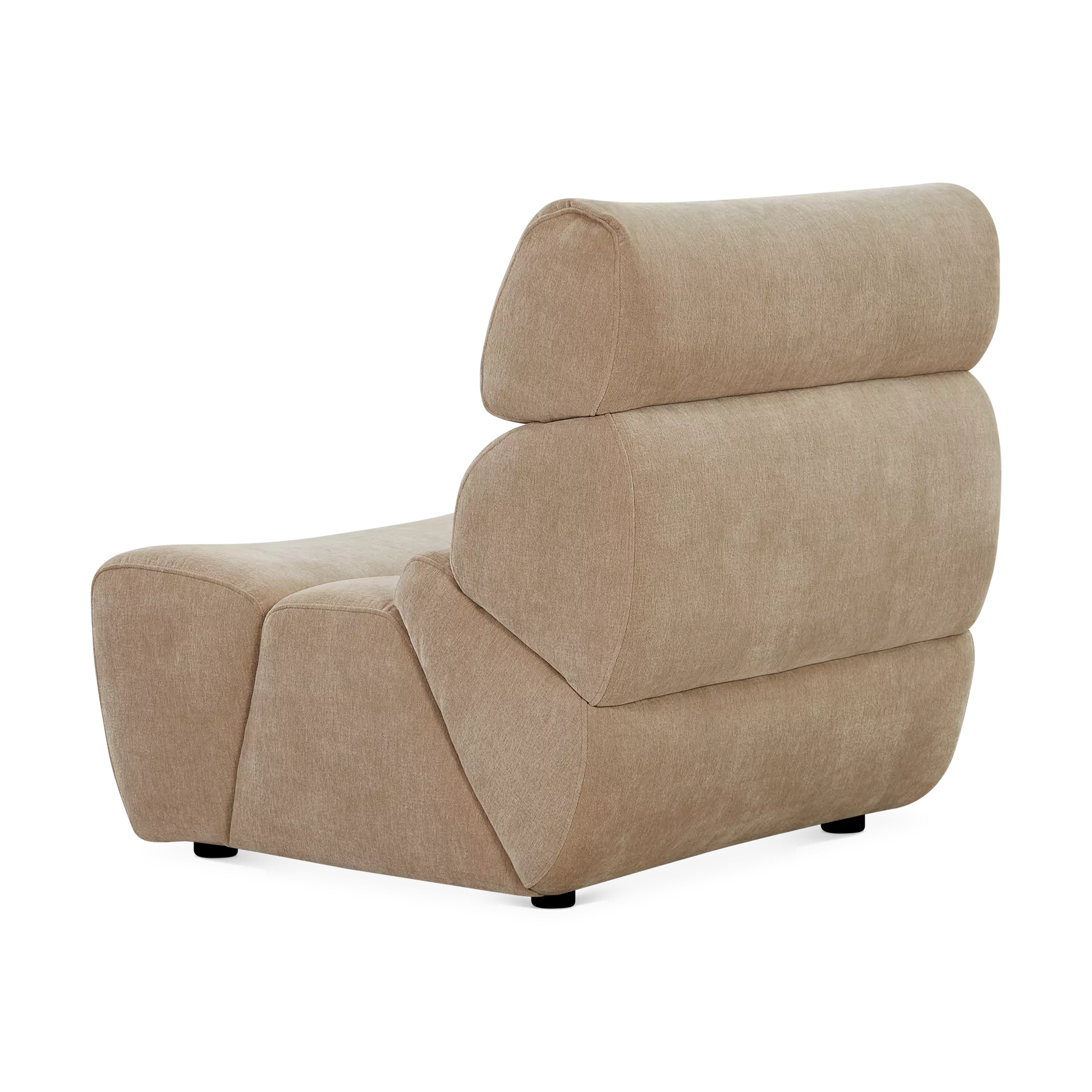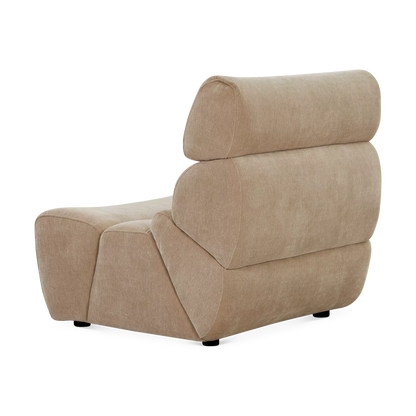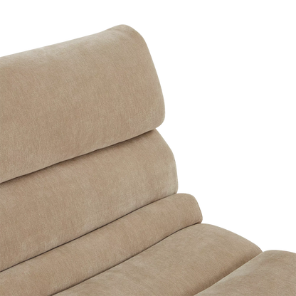 The Fould modular sofa collection brings sculptural softness and easy versatility to any living space. Upholstered in plush beige fabric, each piece features a distinctive silhouette with channel-tufted cushions for added depth and a luxurious feel. It offers supportive comfort, relaxed curves and a neutral tone that blends seamlessly into modern and laid-back interiors alike.