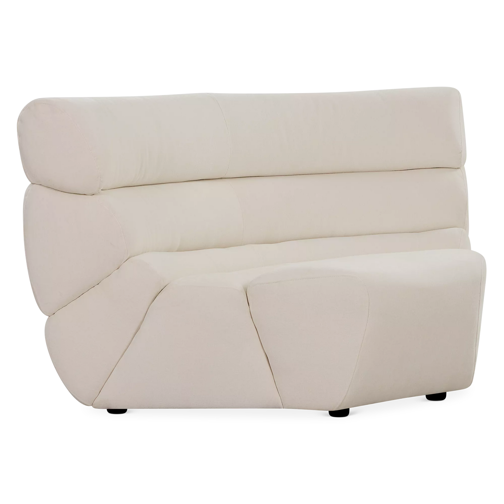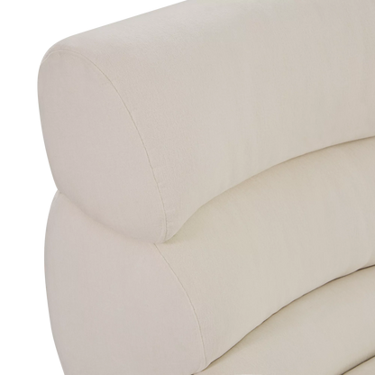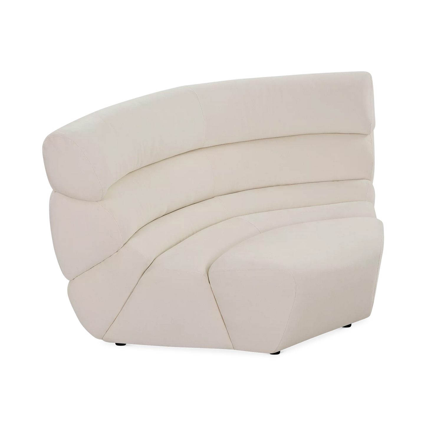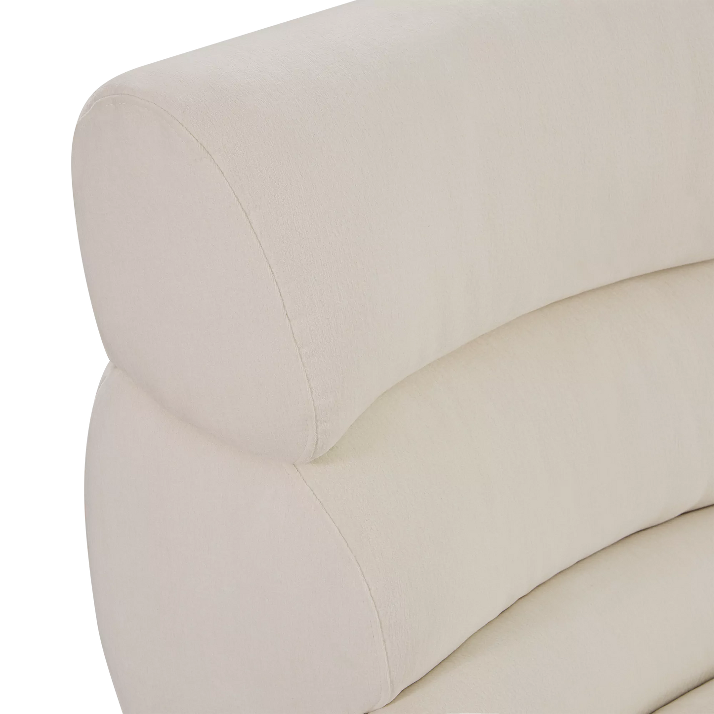 The Fould modular sofa collection brings sculptural softness and easy versatility to any living space. Upholstered in plush beige fabric, each piece features a distinctive silhouette with channel-tufted cushions for added depth and a luxurious feel. It offers supportive comfort, relaxed curves and a neutral tone that blends seamlessly into modern and laid-back interiors alike.