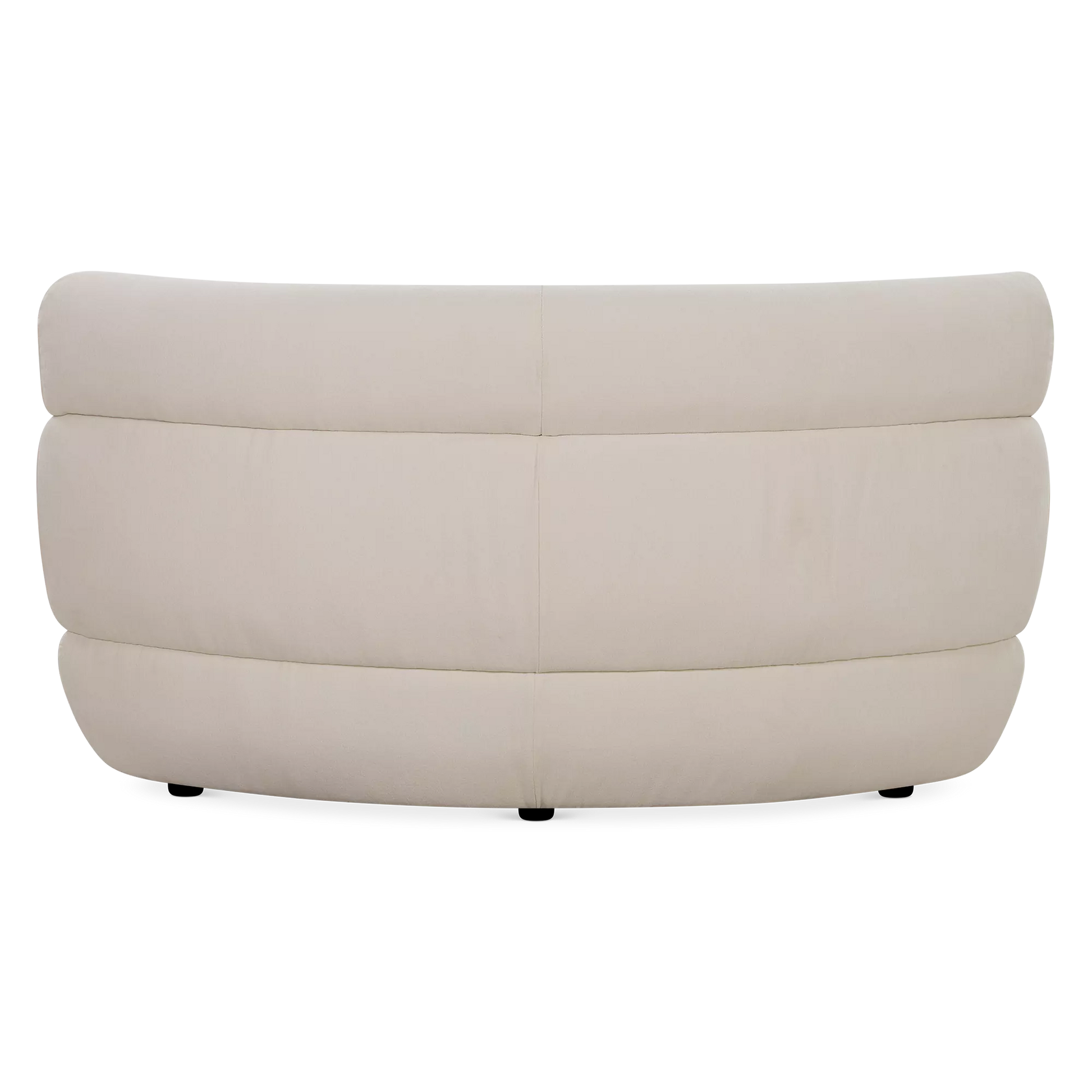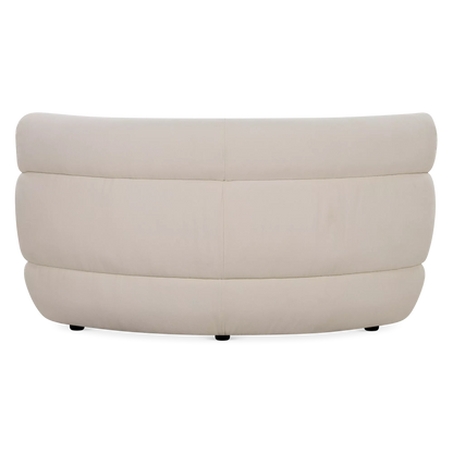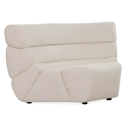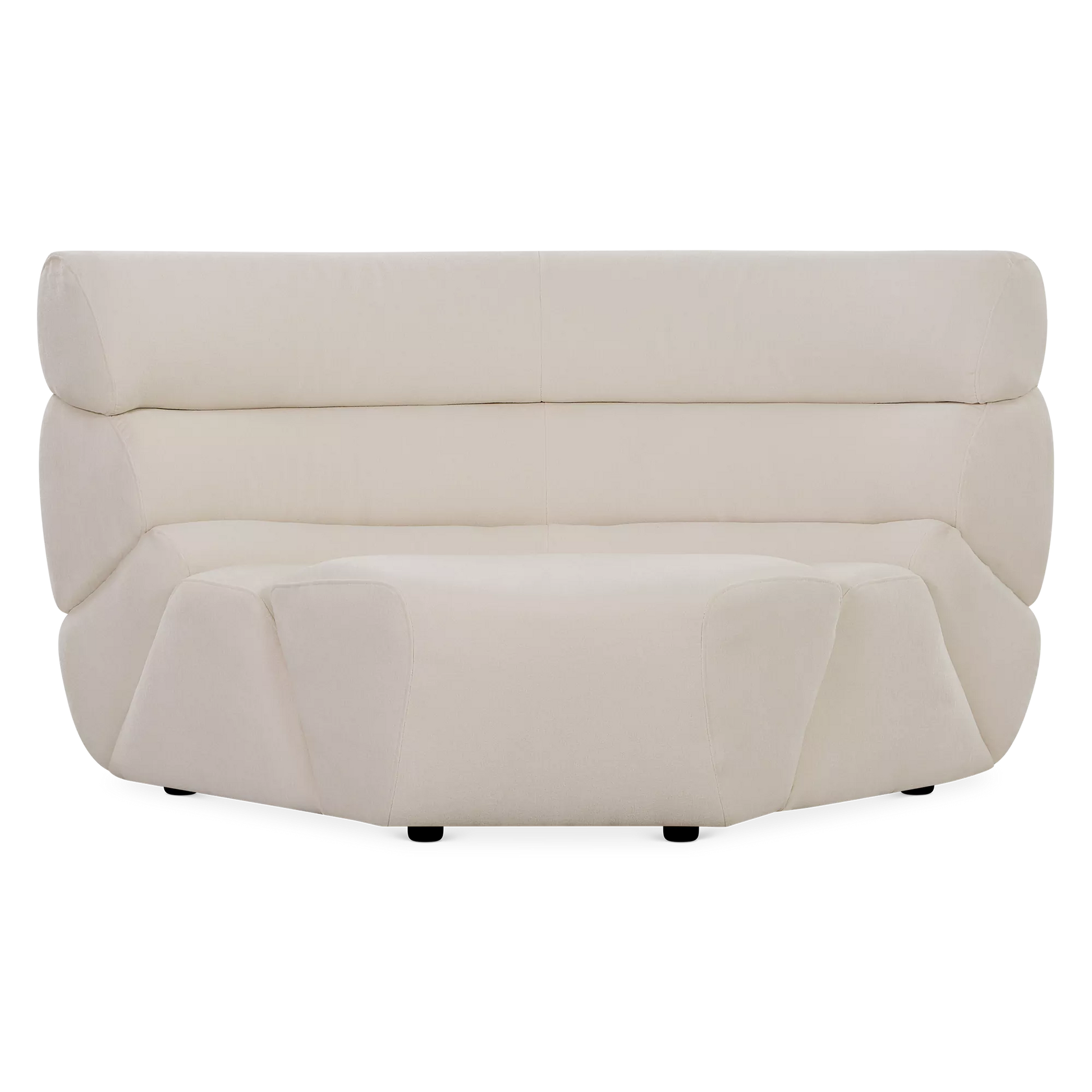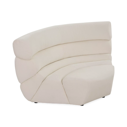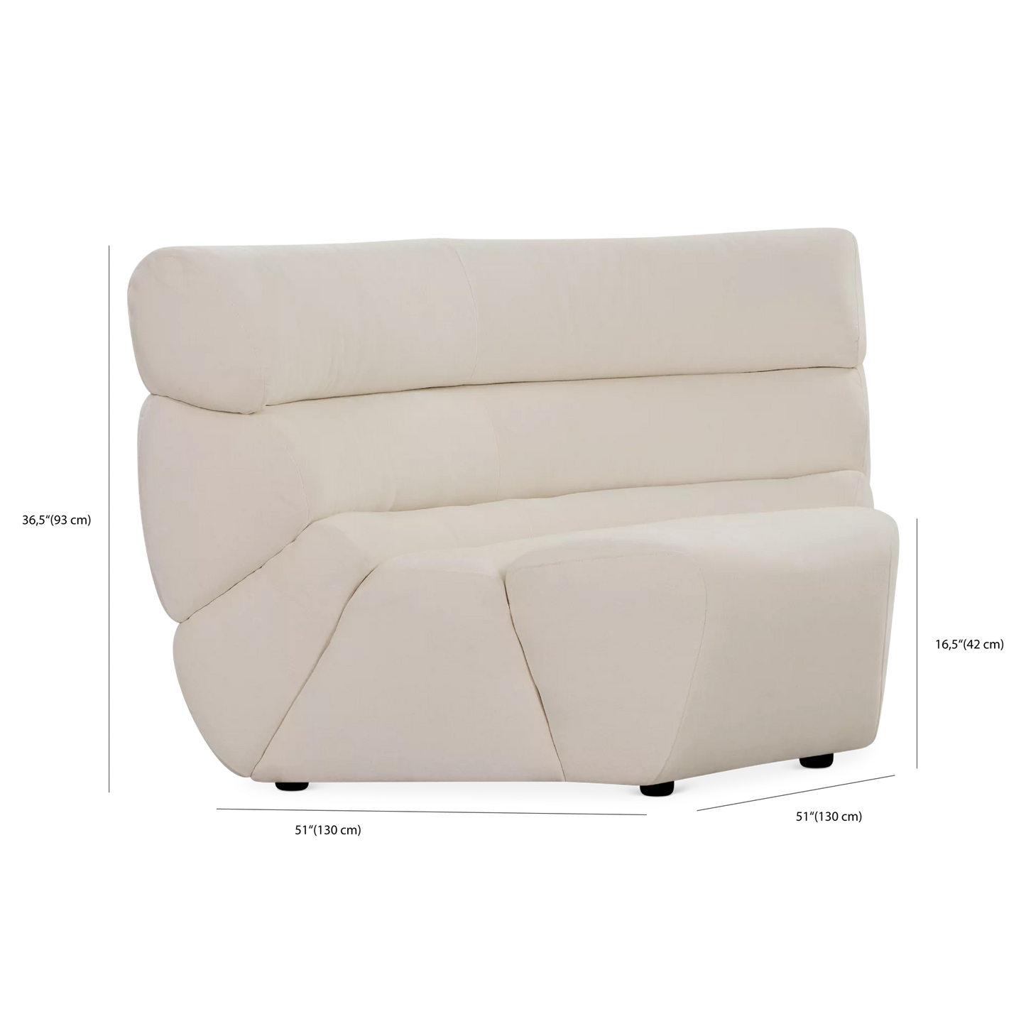 The Fould modular sofa collection brings sculptural softness and easy versatility to any living space. Upholstered in plush beige fabric, each piece features a distinctive silhouette with channel-tufted cushions for added depth and a luxurious feel. It offers supportive comfort, relaxed curves and a neutral tone that blends seamlessly into modern and laid-back interiors alike.