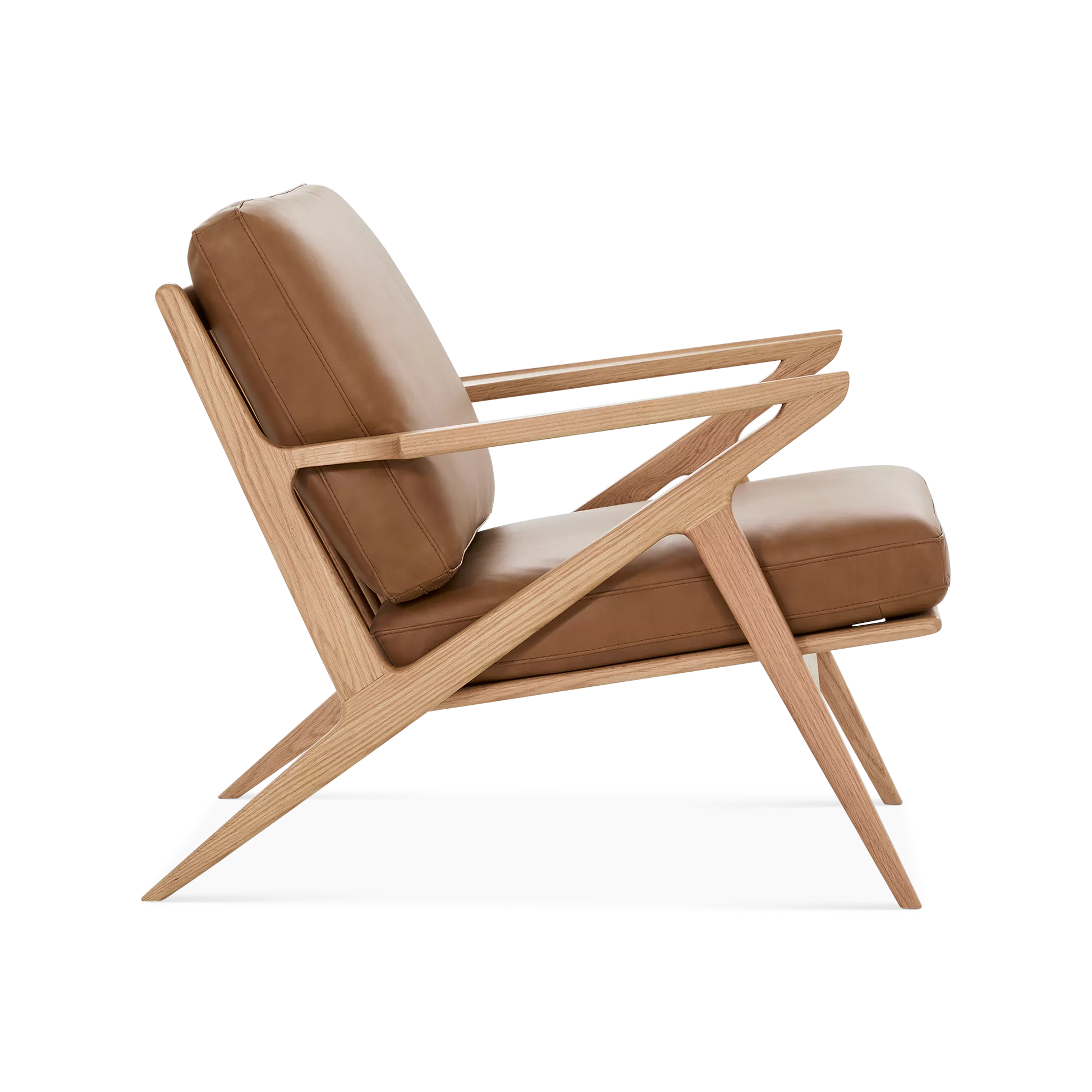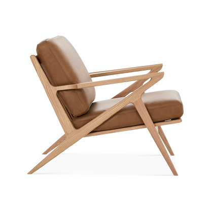 The Fronin armchair reinvents Scandinavian charm with a retro feel though a wooden frame that highlights its clean and timeless design. Available in leather or bouclé fabric, its cushions are removable and provide supple comfort while ensuring this armchair fits into any minimalist or ’50s-inspired interior with ease.