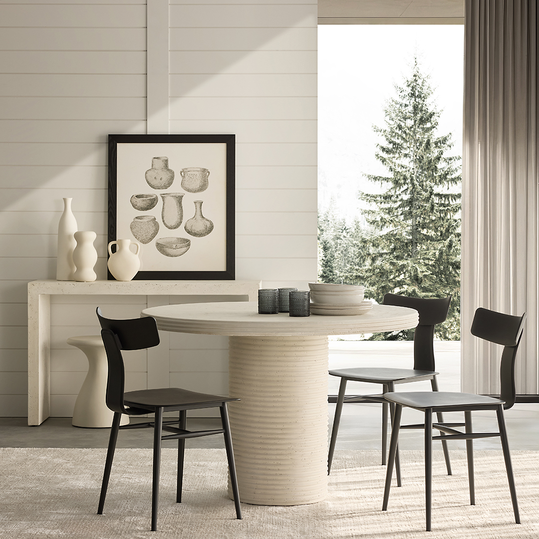 The Gial chair fits perfectly into contemporary interiors with its minimalist silhouette. Made from durable polypropylene and set on a metal base for an industrial touch, this understated design is a versatile choice that’s perfect for any dining room decorated in modern and functional style.