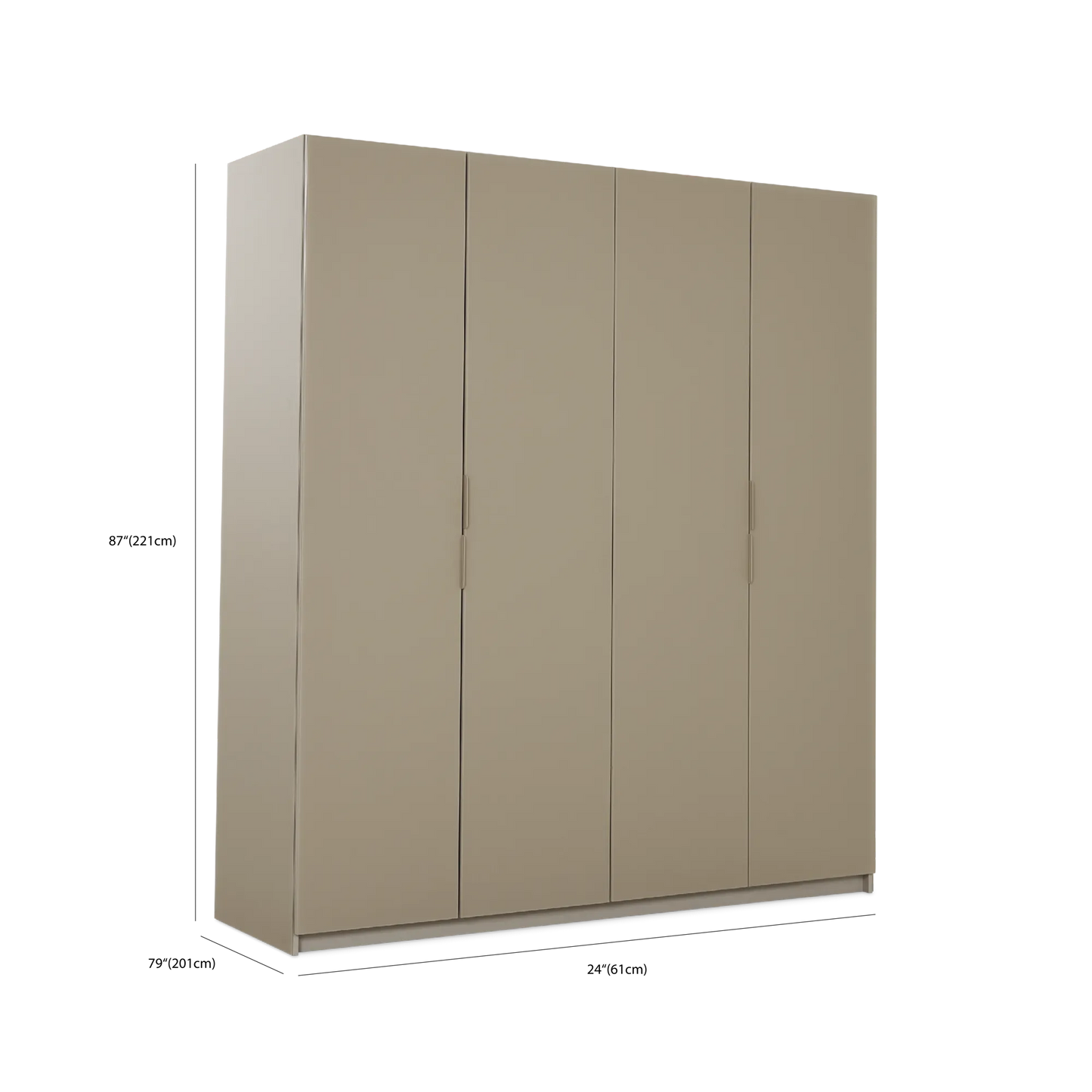 The Glassy wardrobe offers sleek storage with a modern edge. Framed in beige-toned metal, its smooth glass fronts conceal a highly functional interior with shelves, drawers and hanging space. Minimalist on the outside yet practical within, it balances elegance and utility to keep your everyday essentials beautifully organized.