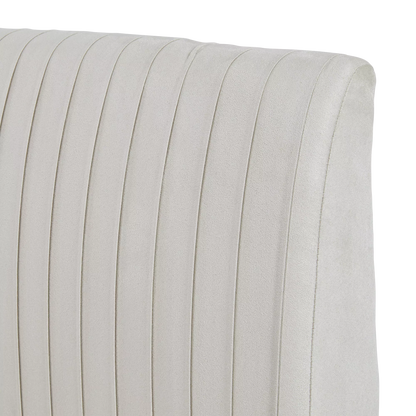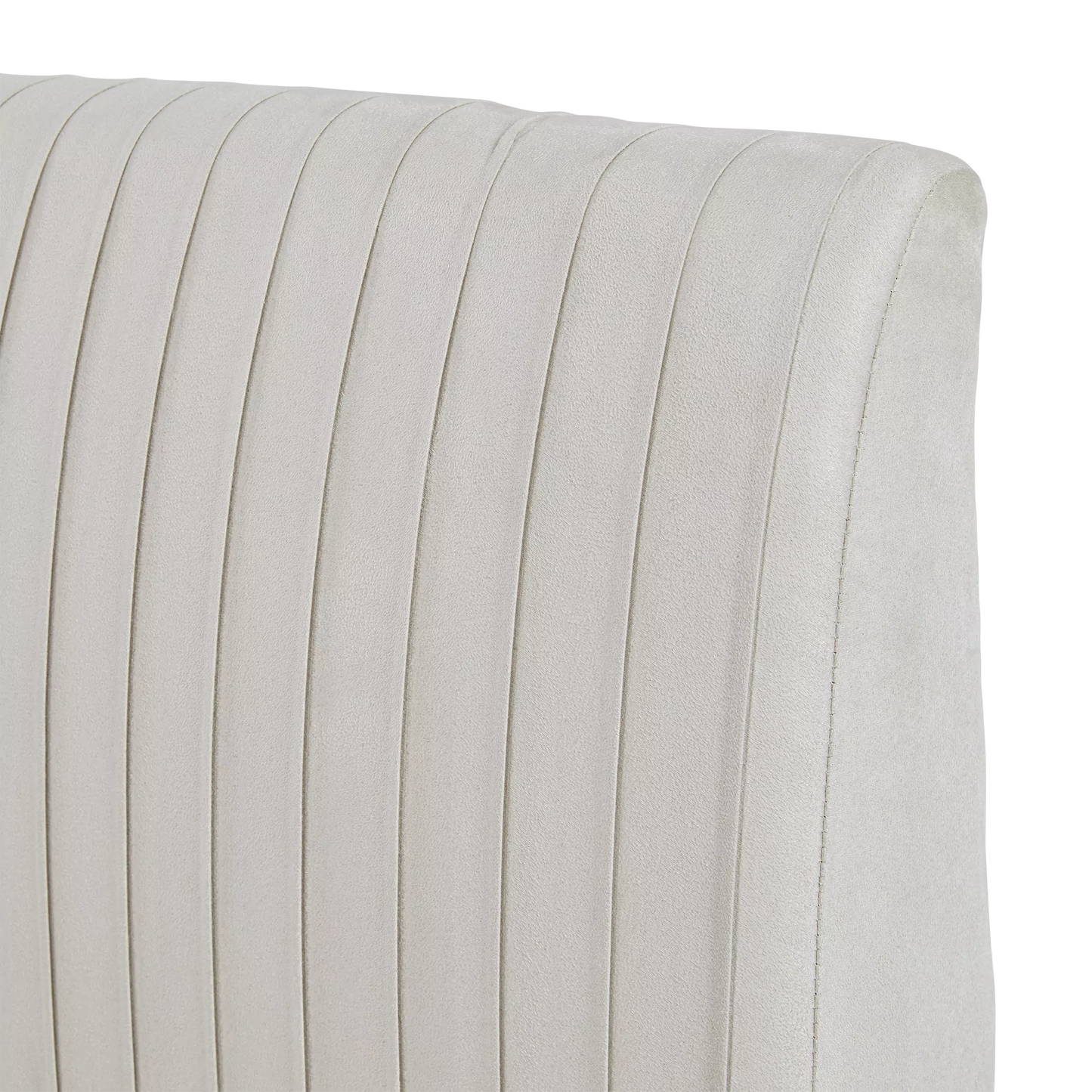 Harris features a headboard upholstered in soft, channel-tufted fabric and gold, stainless steel legs for a comfortable bed with a modern edge.