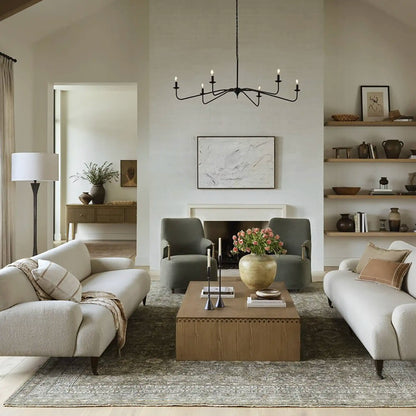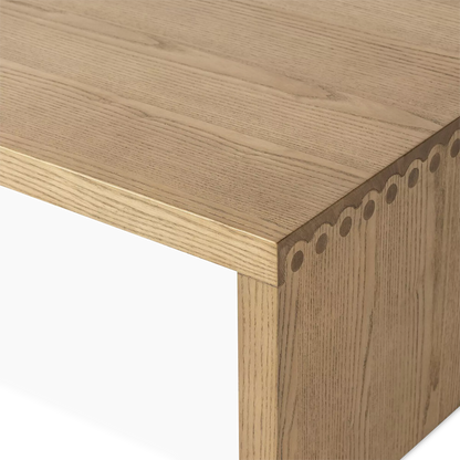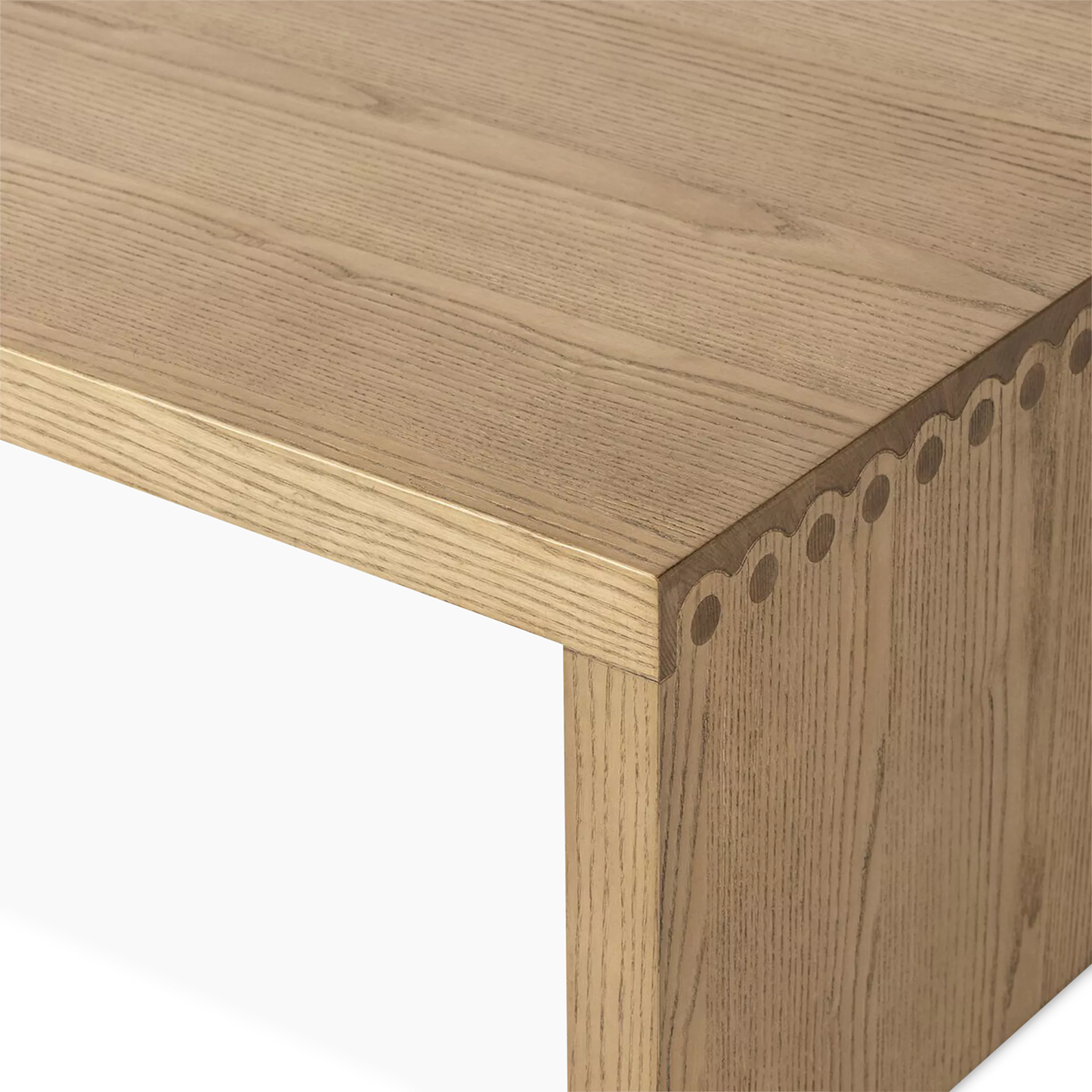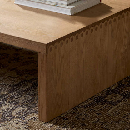 The Hathaway coffee table makes a quiet statement through texture and form. Its clean waterfall profile is softened by the expressive, natural variation of its ash wood construction. Along each side, a carved scallop detail adds a deliberate pause in the silhouette for added character. The result is both grounded and sculptural, blending easily into relaxed, layered living spaces. A design collaboration by Amber Lewis and Four Hands.