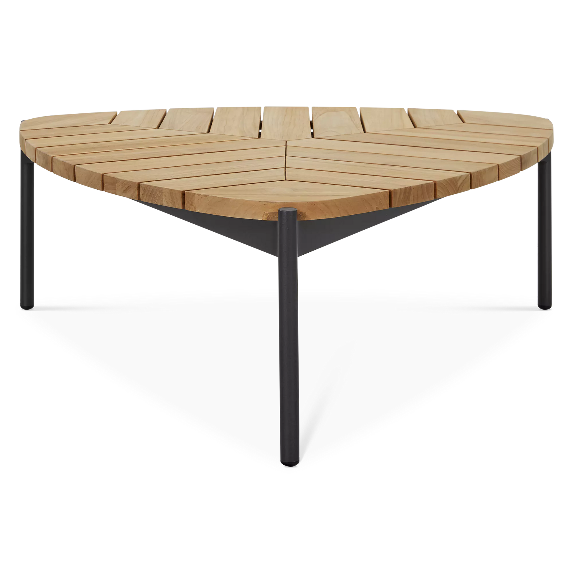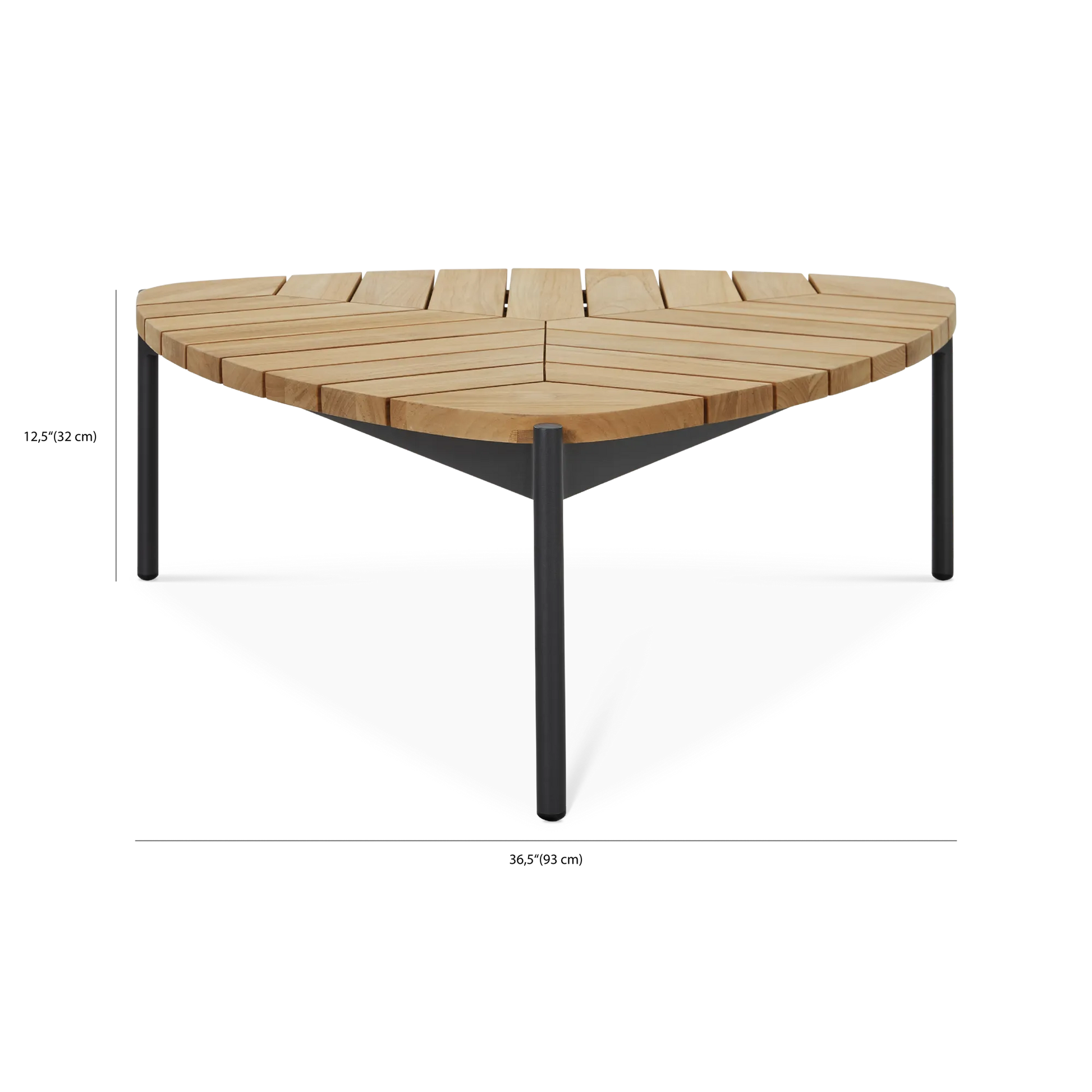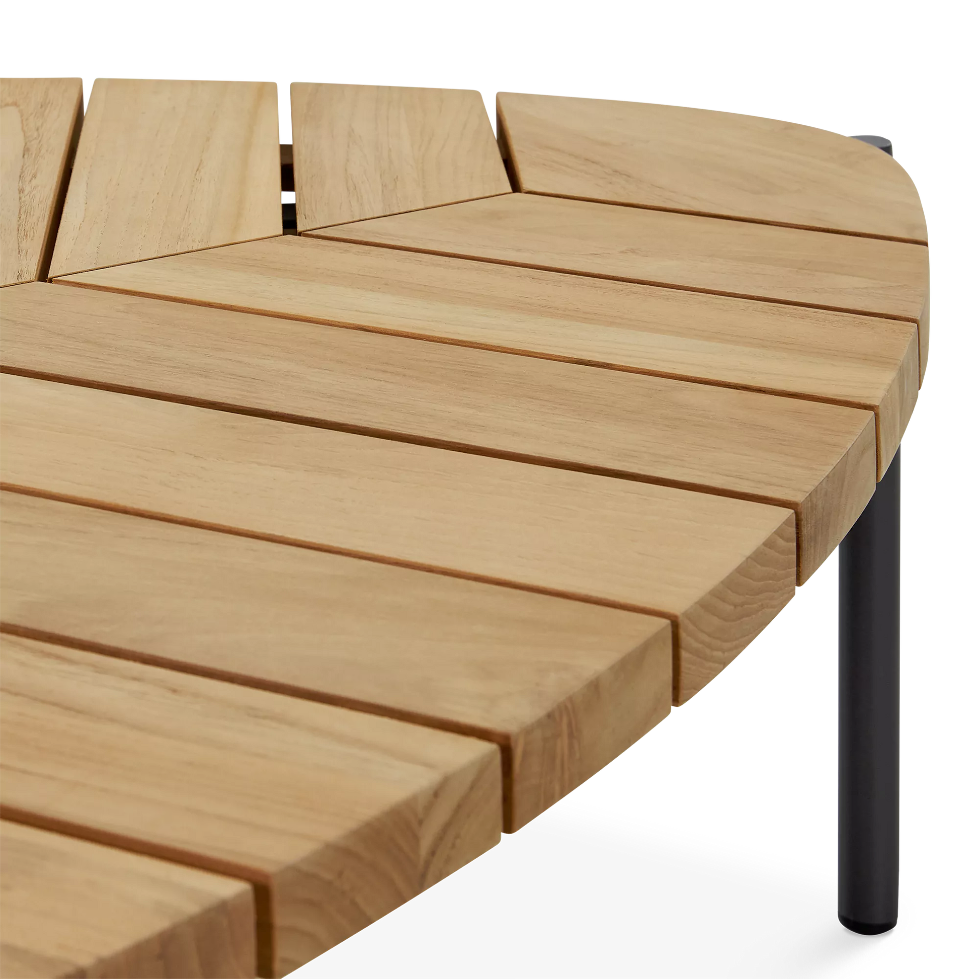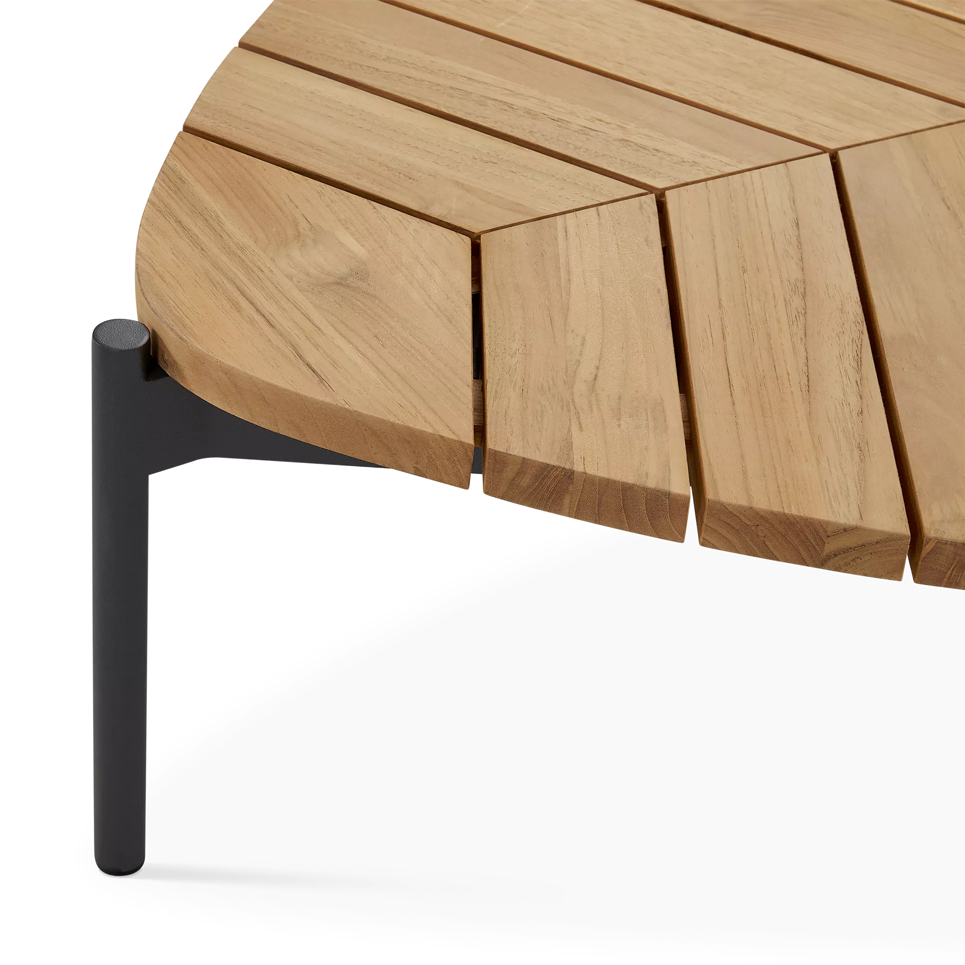 With a modern and timeless look, the Hendrix coffee table works as well in a cottage setting as it does in a city space. Its linear aluminium base is topped with a surface made of teak wood slats, both ideal materials for outdoor use. Style it alone or combine its different sizes to create a sophisticated, staggered-height effect.