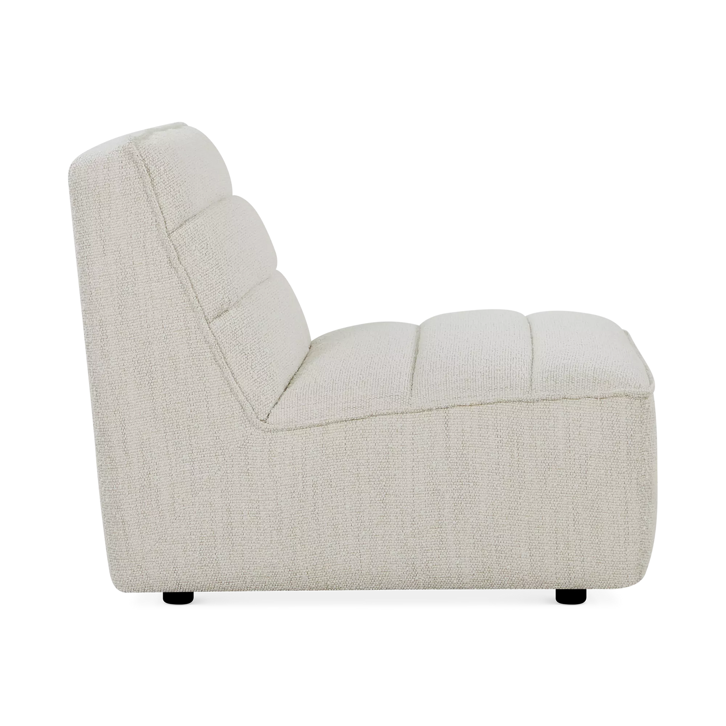 With its low profile, spacious seating and adaptable design, the Hetchi modular sofa is a brilliant choice for any living space. Upholstered in light grey fabric and accentuated by horizontal channel tufting and piped seams, it brings a soft feel and sophisticated touch to both modern and contemporary decors.