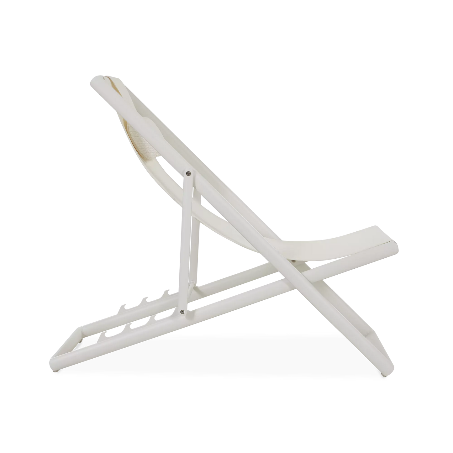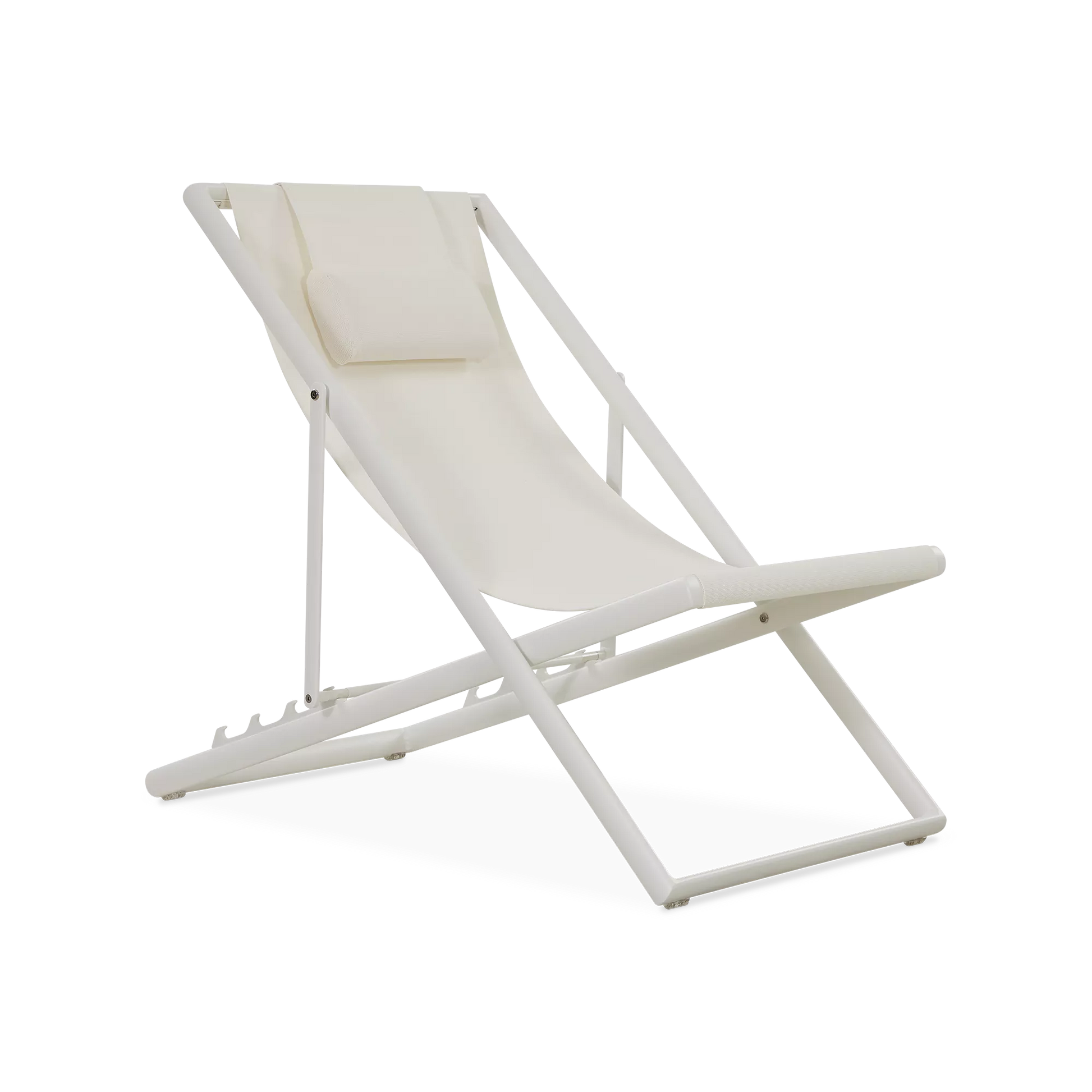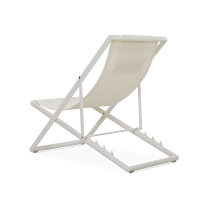 Vacation vibes. Enjoy the beautiful weather in the comfort of the Holiday transat chair. This lightweight and foldable design moves from poolside to patio with ease. Its aluminium frame, which requires minimal maintenance, is accompanied by a seat made of Textilene, a material that allows water to drain for quick drying.