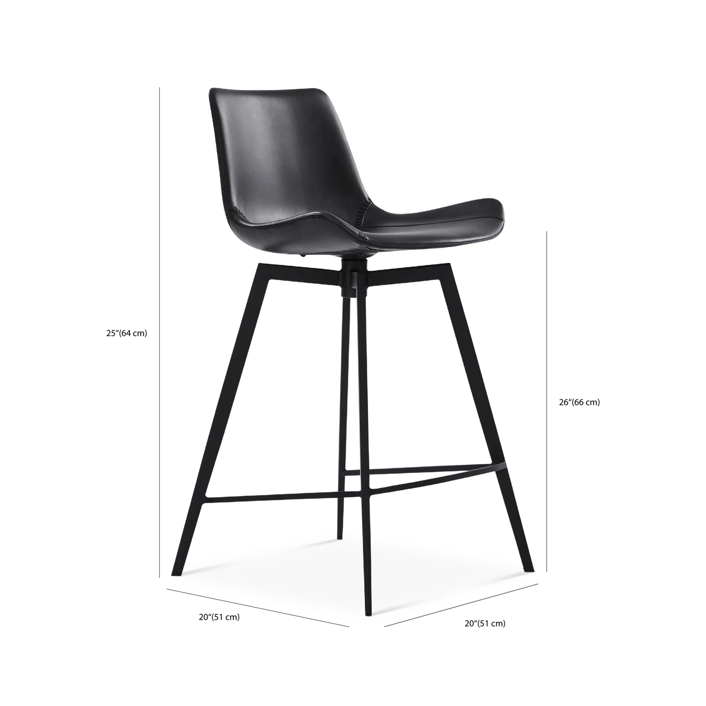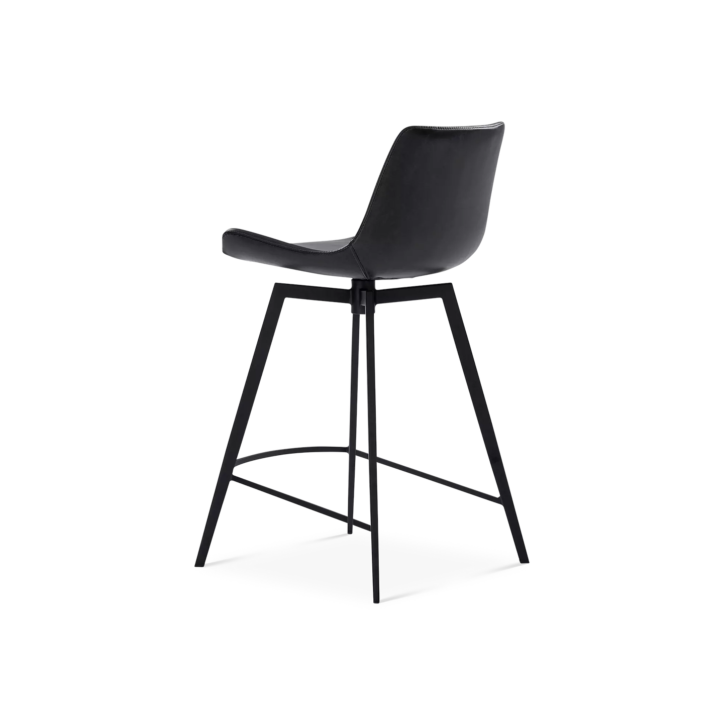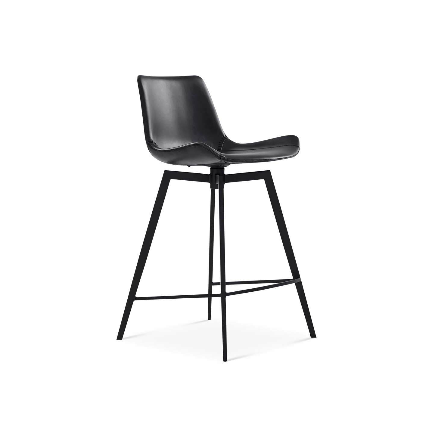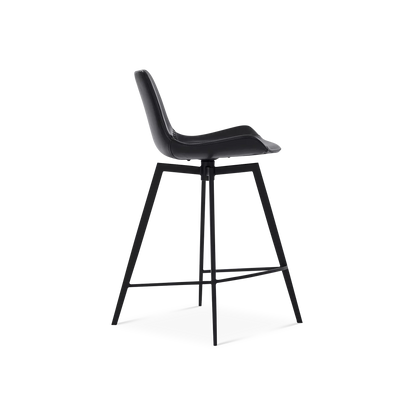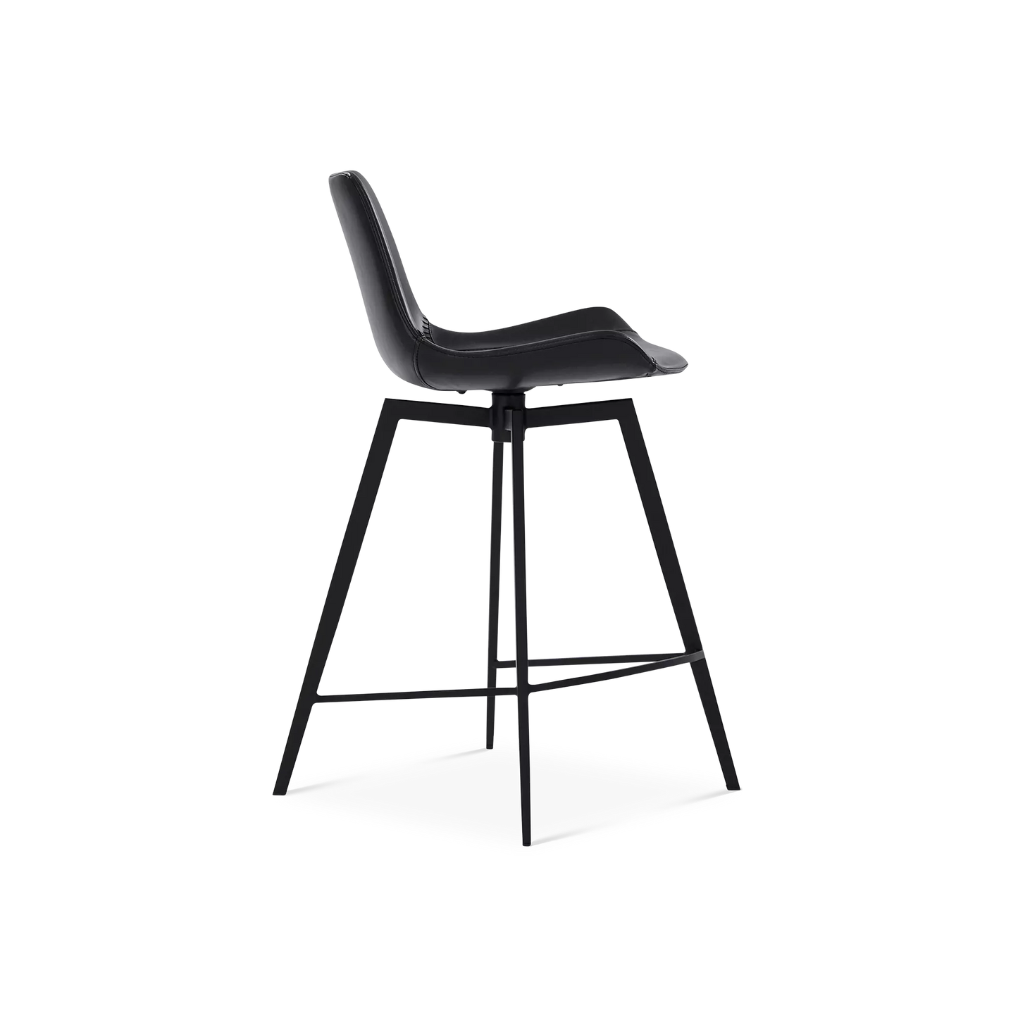 As practical as it is chic, this counter stool covered in faux leather features a backrest that’s comfortable to lean on and a curved seat with slightly raised sides for easy rotating. Its metal base with tapered legs is equipped with a footrest for added support.