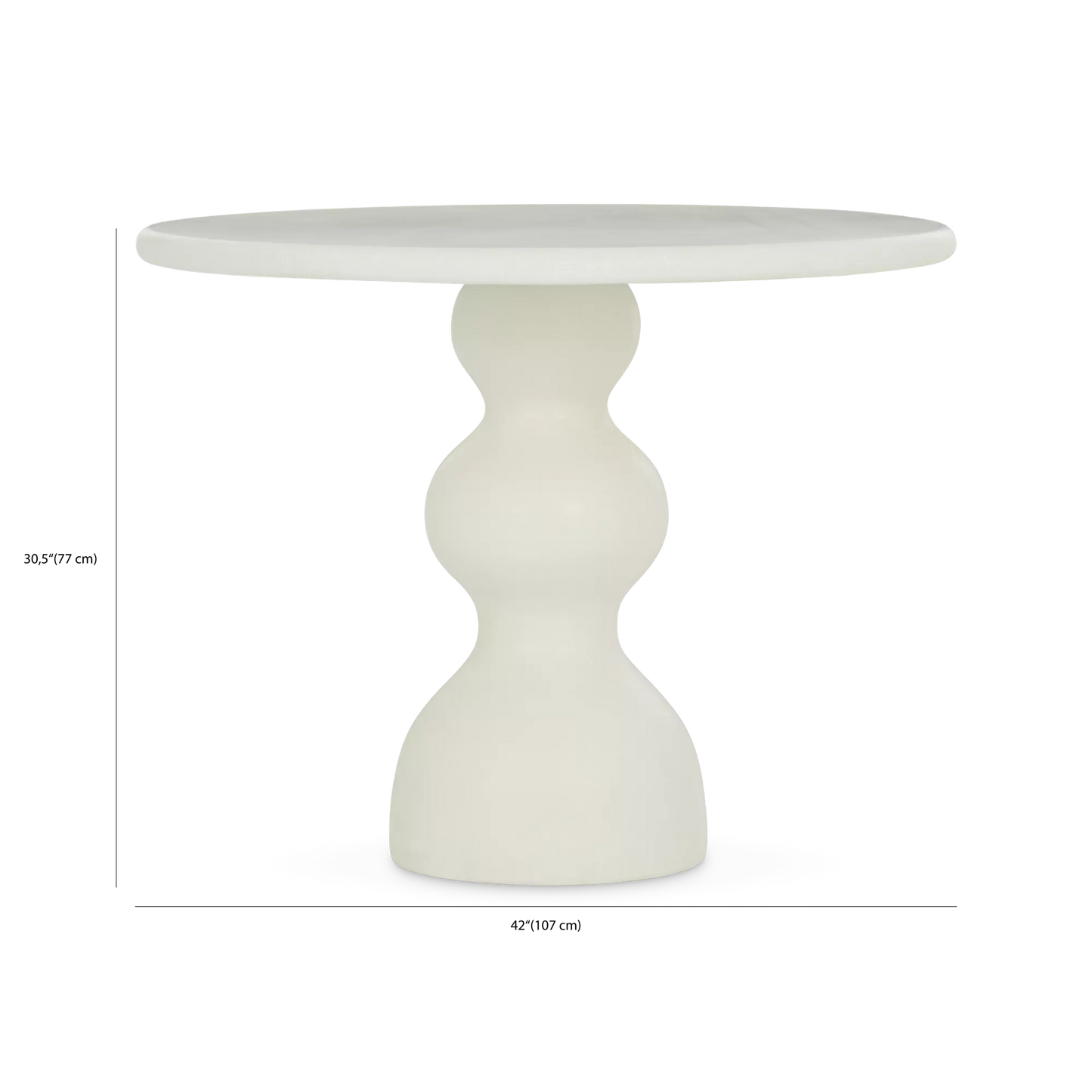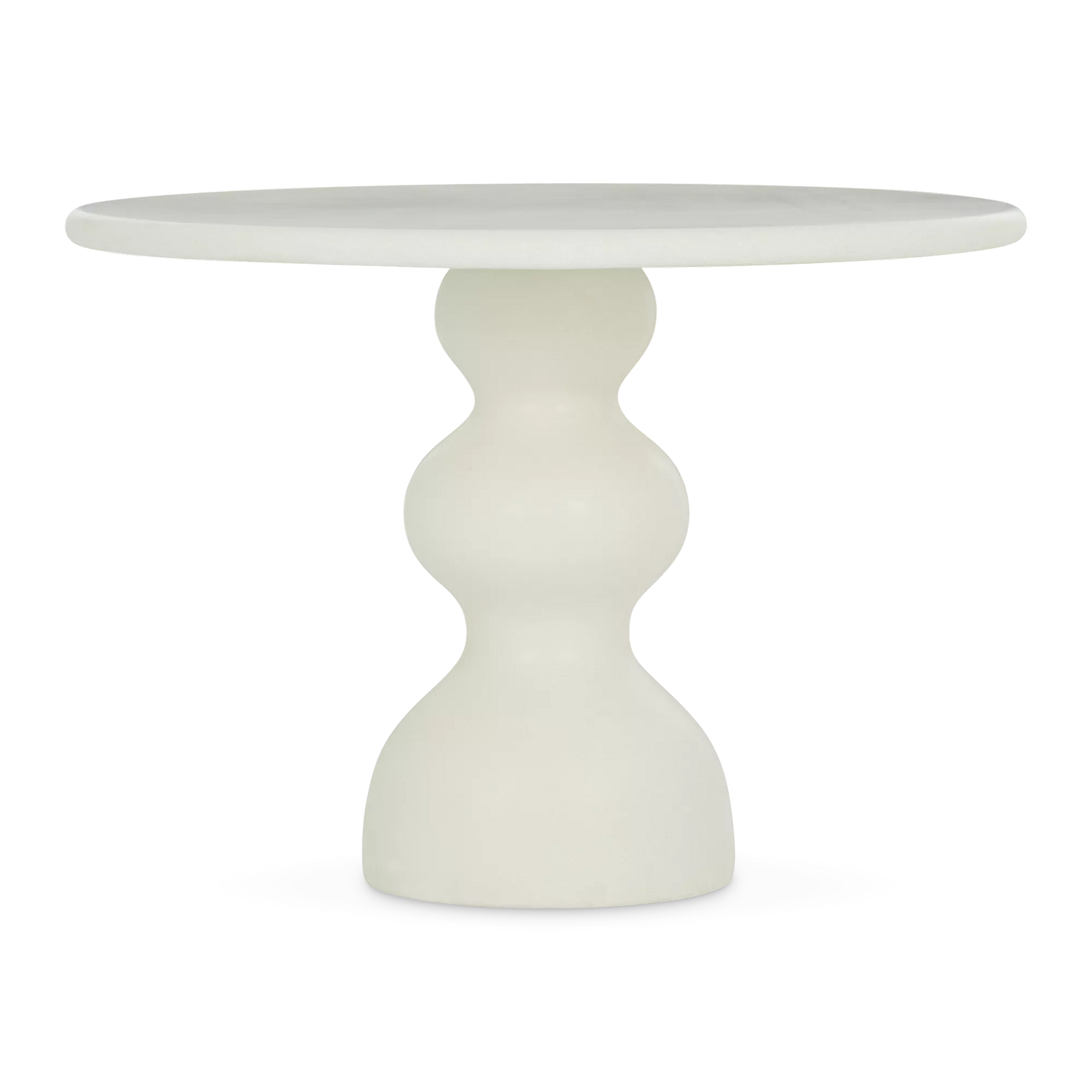 Sculptural and serene, the Ischia dining table makes a statement with its fluid, organic base and smooth round top. Crafted from polished faux marble, it blends durability with an artful, veined look. A true focal point that invites both attention and admiration.