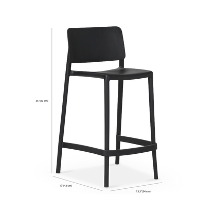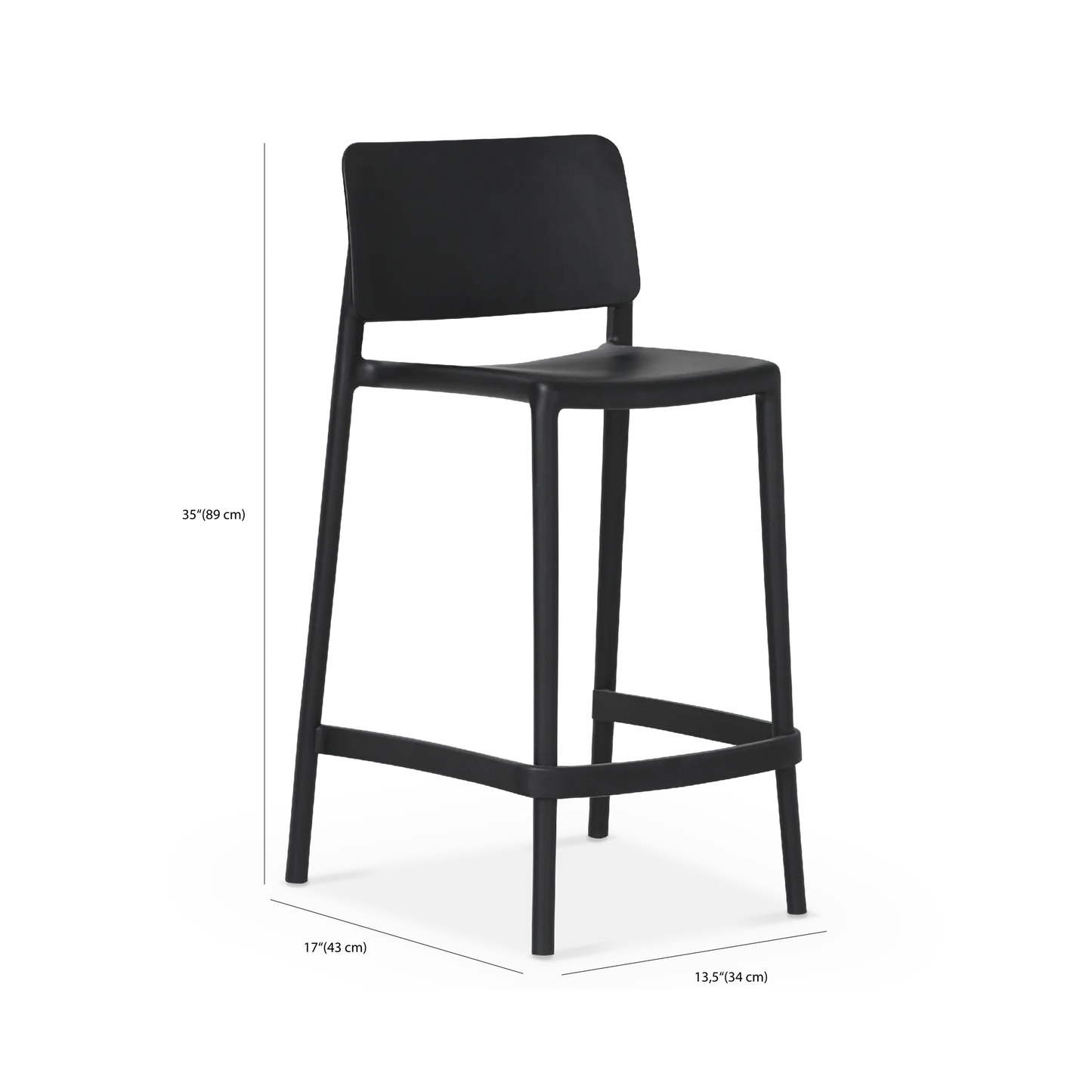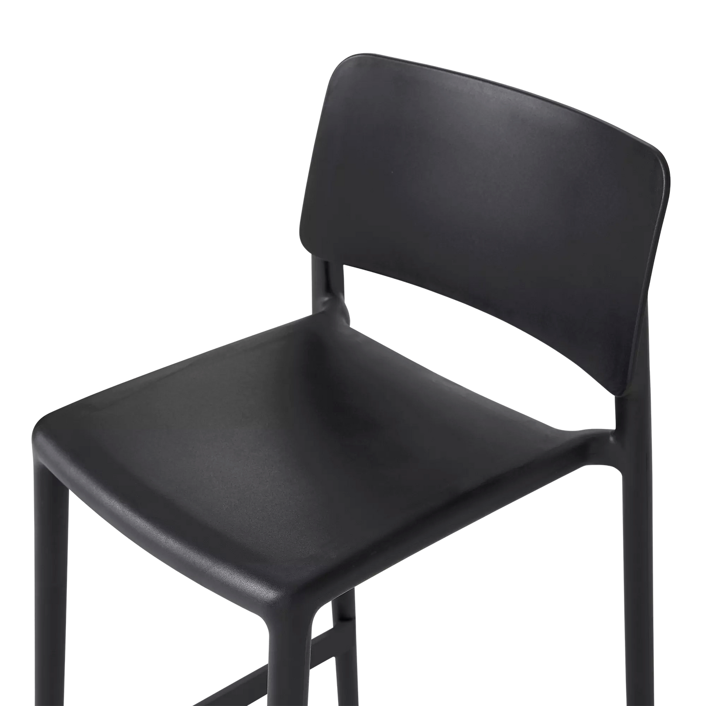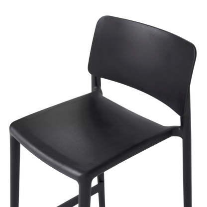 Sleek and timeless, Joy blends in with any decor: city-chic or rustic, linear or curved. What’s more, its curved seat and backrest offer optimal comfort, no cushion required. Designed for outdoor living, this moulded polypropylene counter stool can withstand high winds, retains its appearance over time and stacks for easy storage.