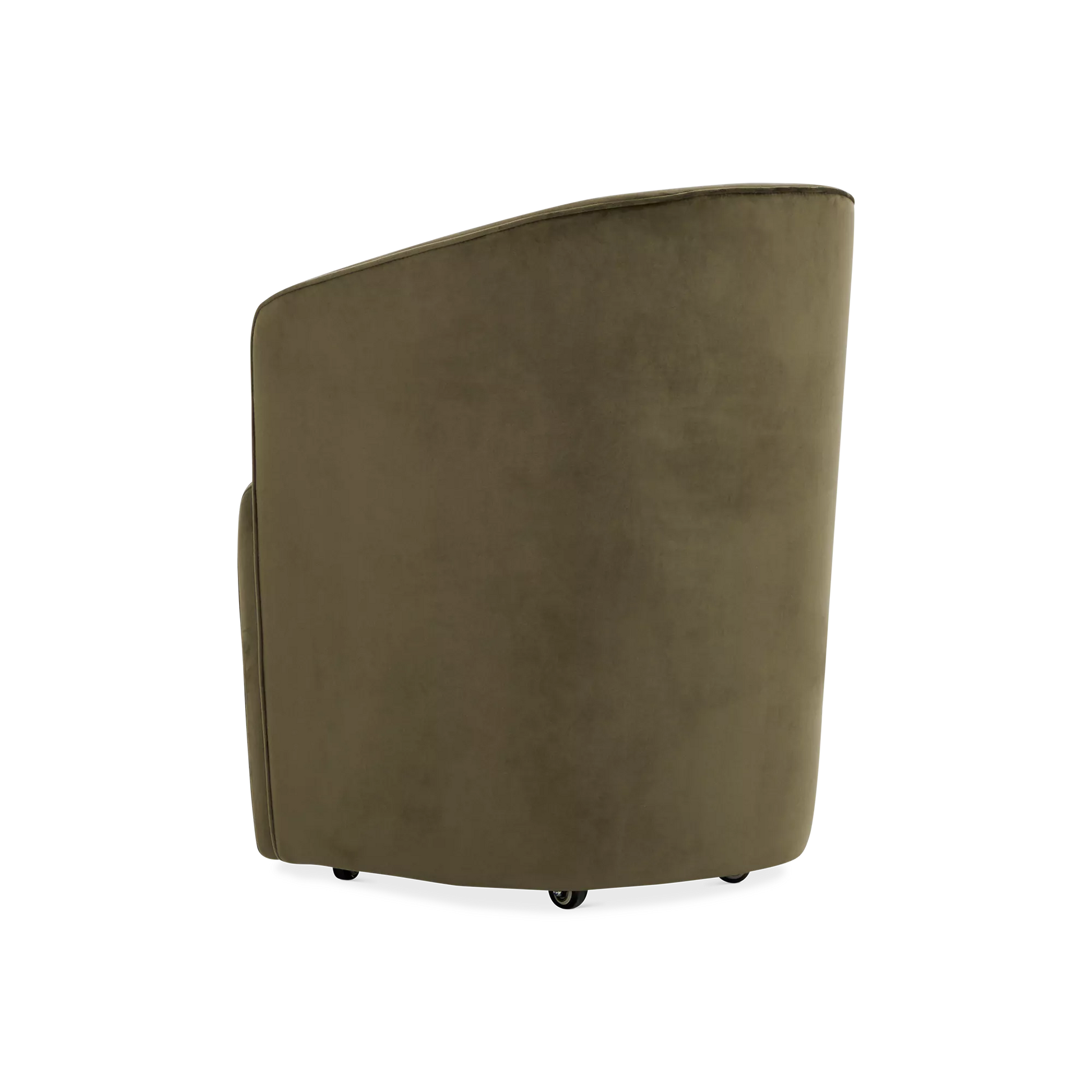 The Judith chair, upholstered in green velvet and featuring an open back, blends elegance with lightness. Its refined silhouette evokes a small armchair while keeping a modern feel. It pairs easily with wood, marble, or contemporary dining tables.