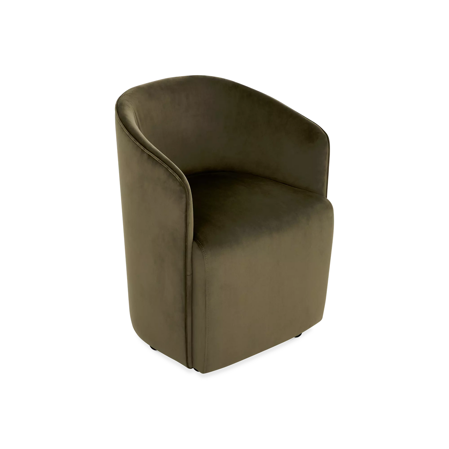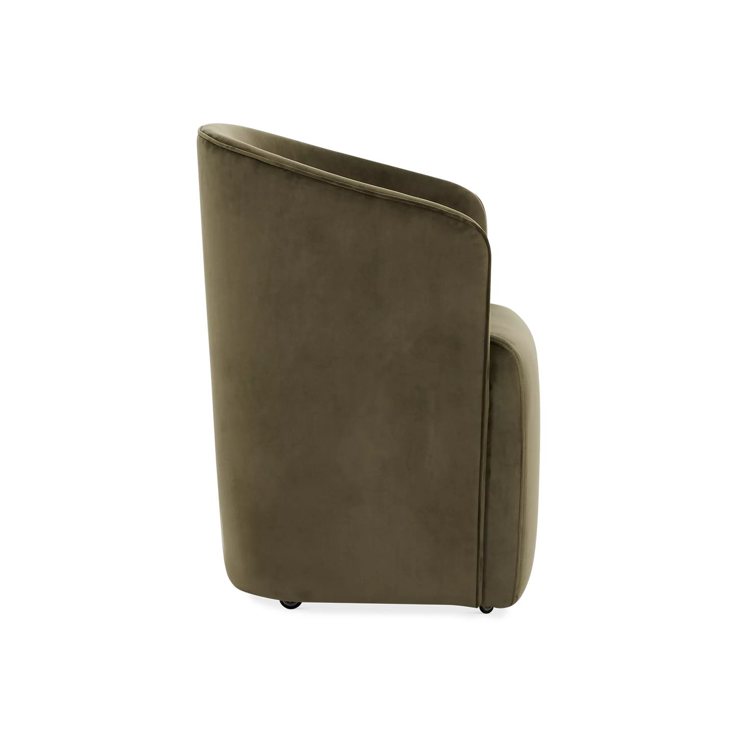 The Judith chair, upholstered in green velvet and featuring an open back, blends elegance with lightness. Its refined silhouette evokes a small armchair while keeping a modern feel. It pairs easily with wood, marble, or contemporary dining tables.
