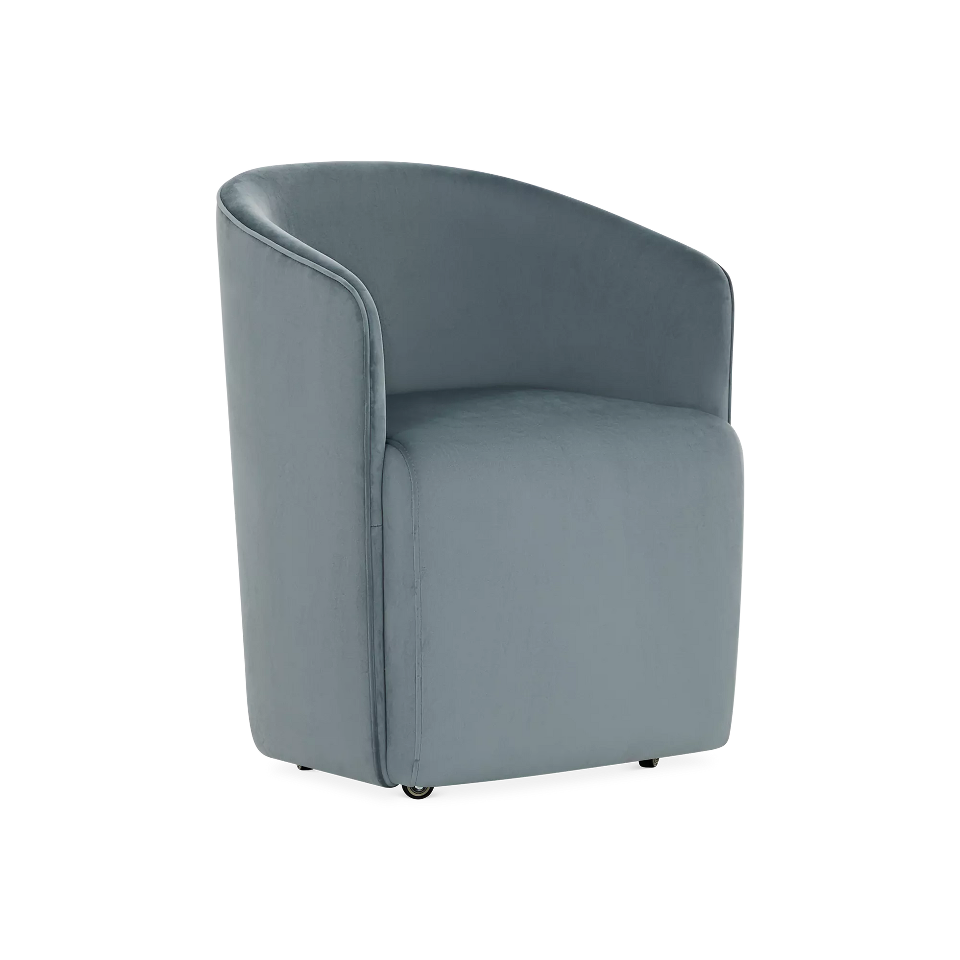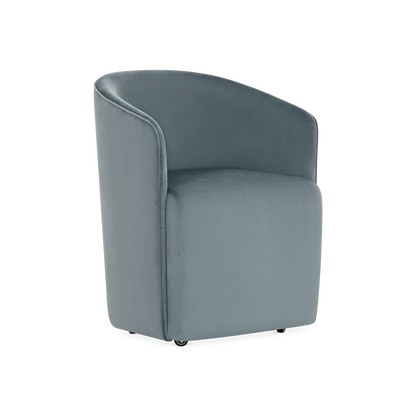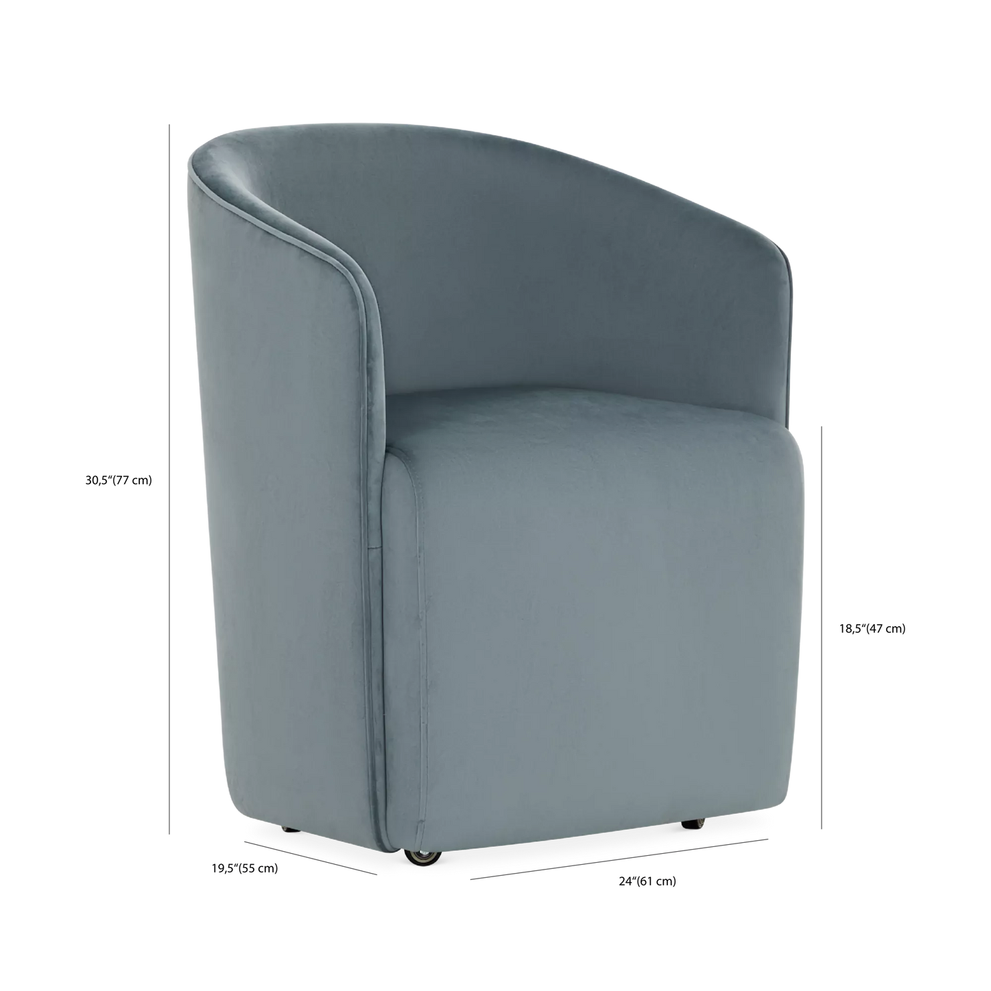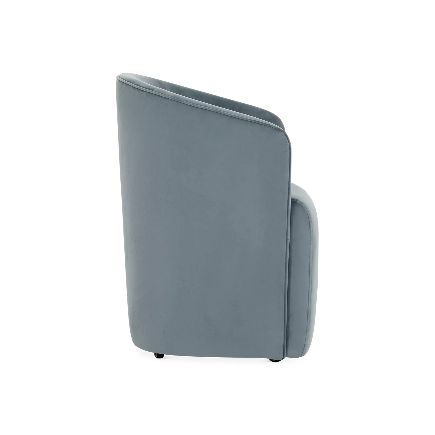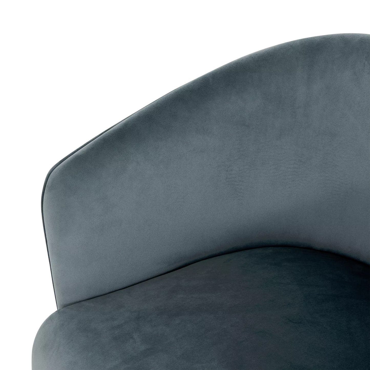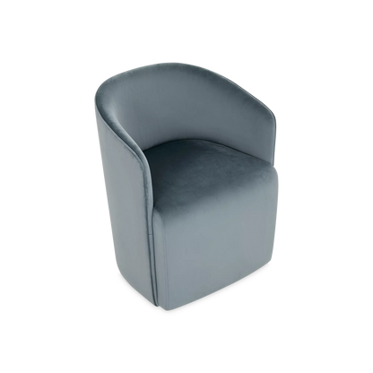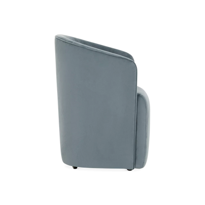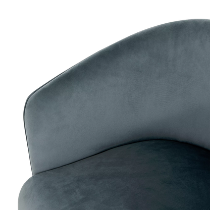 The Judith chair, upholstered in green velvet and featuring an open back, blends elegance with lightness. Its refined silhouette evokes a small armchair while keeping a modern feel. It pairs easily with wood, marble, or contemporary dining tables.