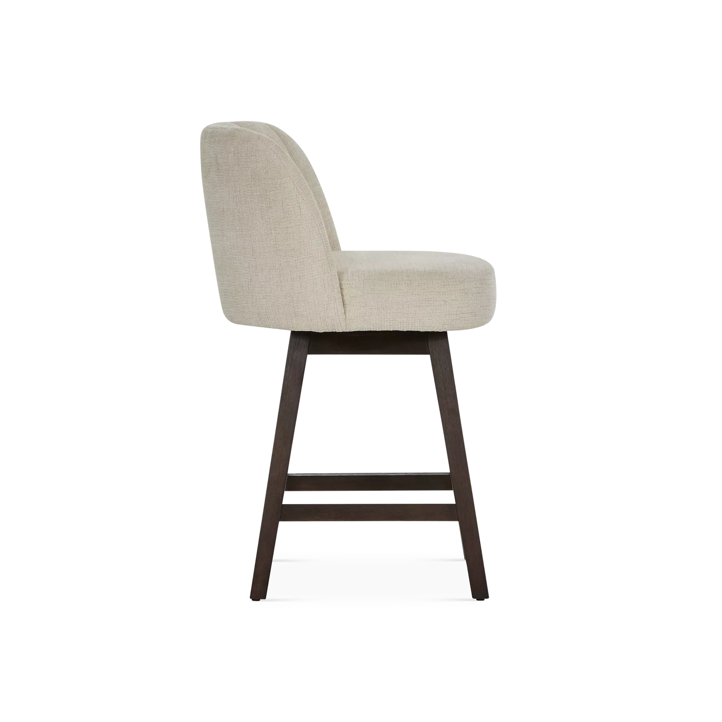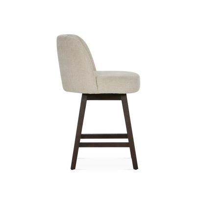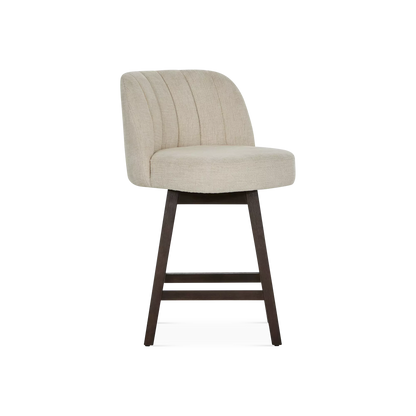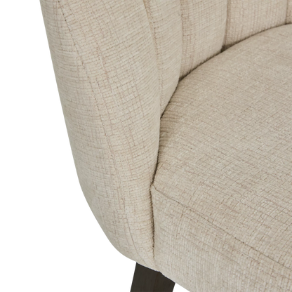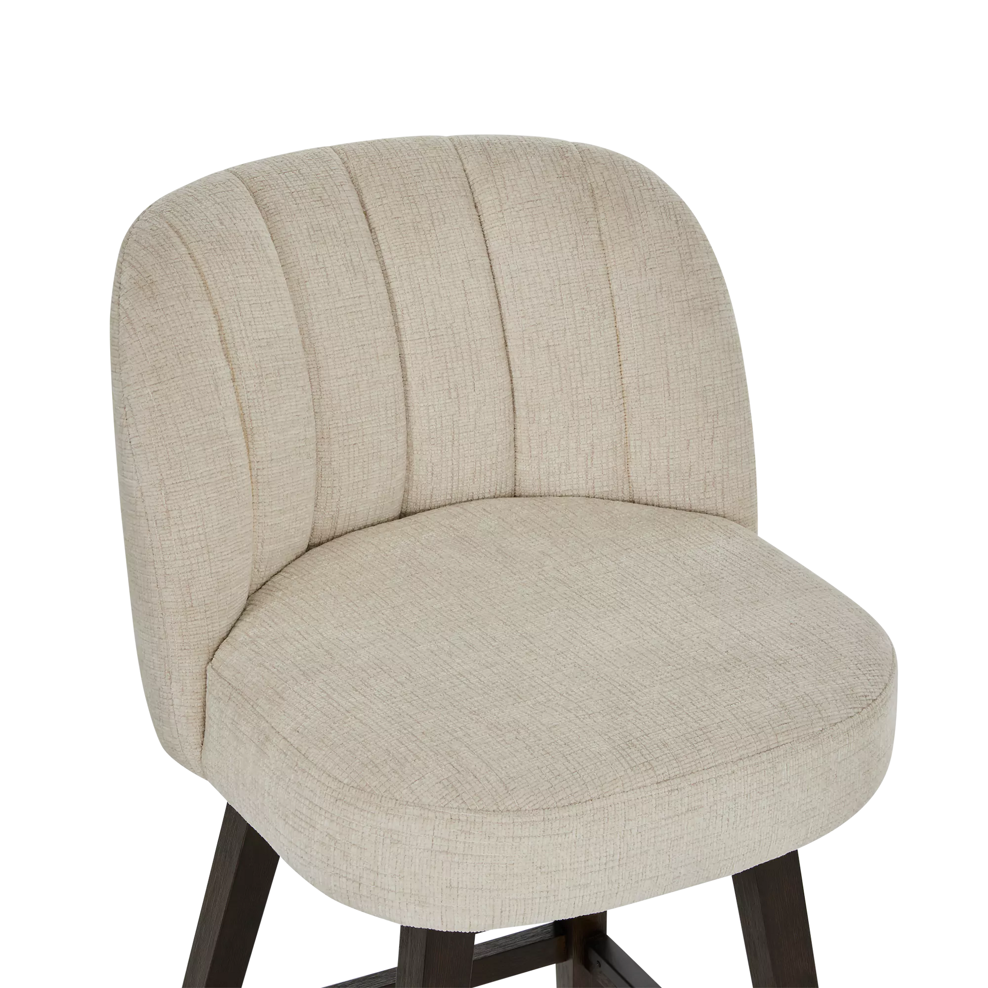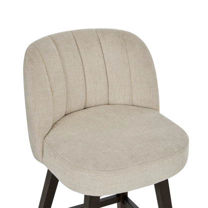 As inviting as it is charming, the Kiki stool features a dark oak veneer frame and subtly textured beige fabric. Its padded backrest, rounded lines and ideal height make it a perfect blend of comfort and style for a refined kitchen or island setting.