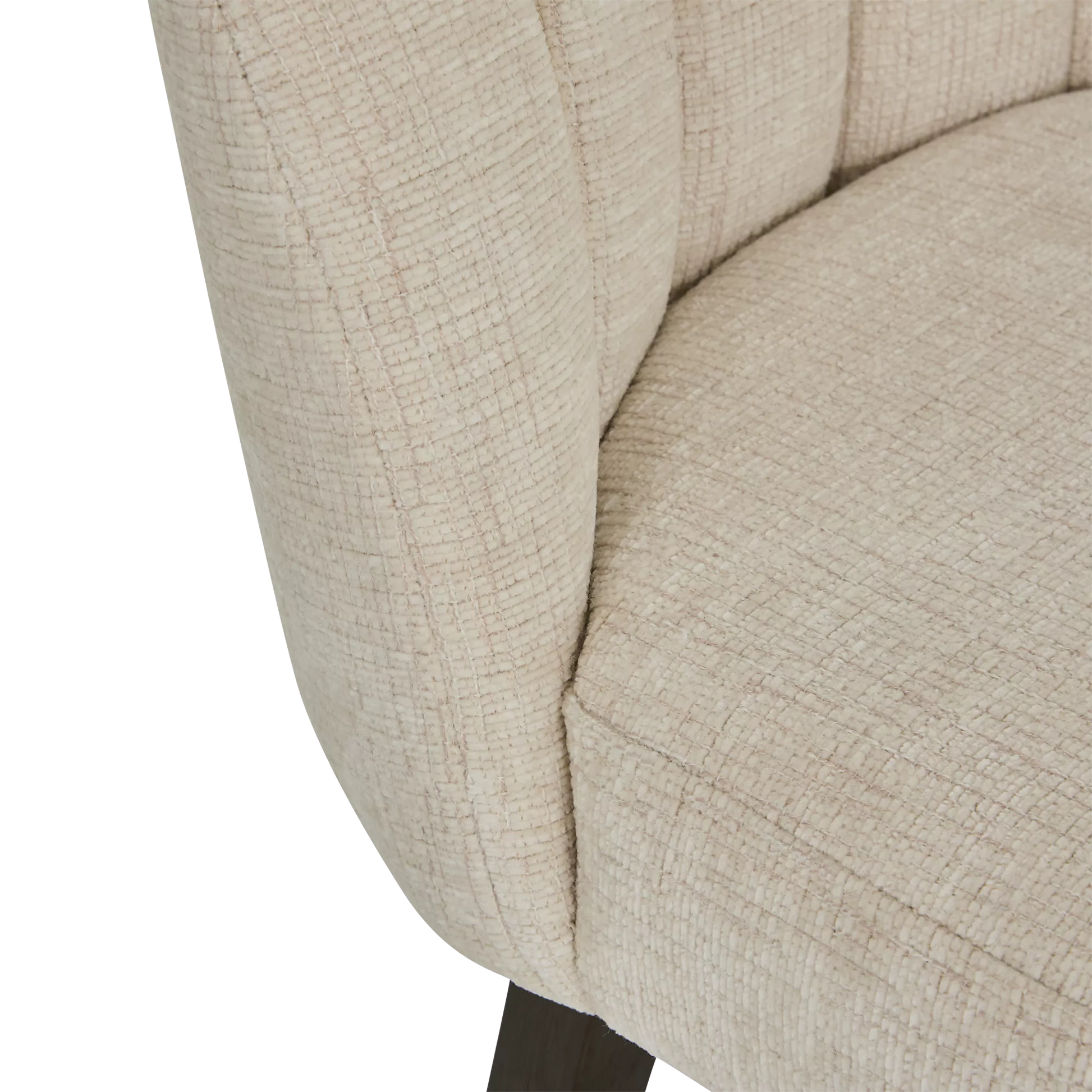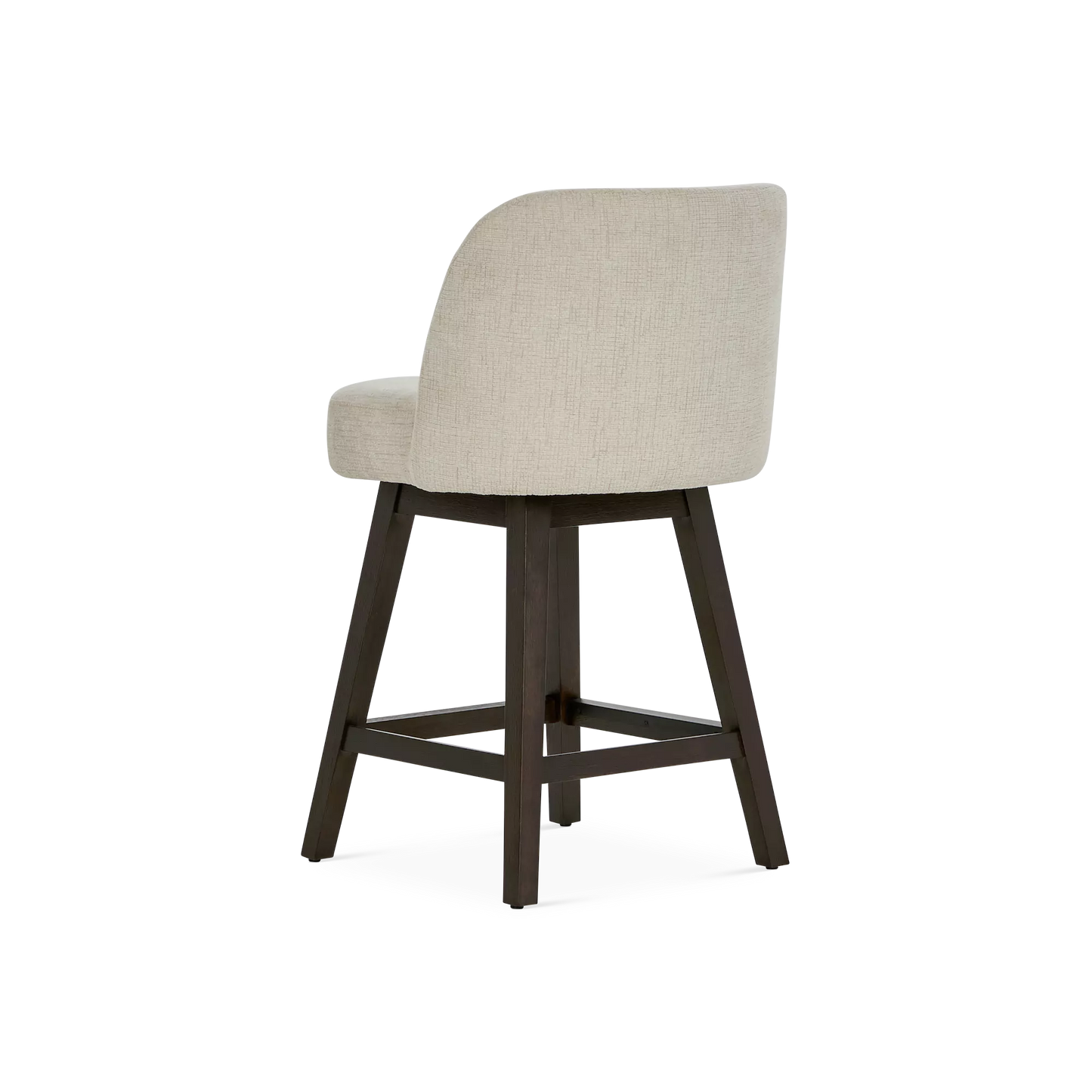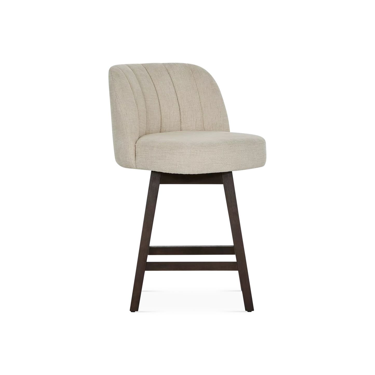 As inviting as it is charming, the Kiki stool features a dark oak veneer frame and subtly textured beige fabric. Its padded backrest, rounded lines and ideal height make it a perfect blend of comfort and style for a refined kitchen or island setting.