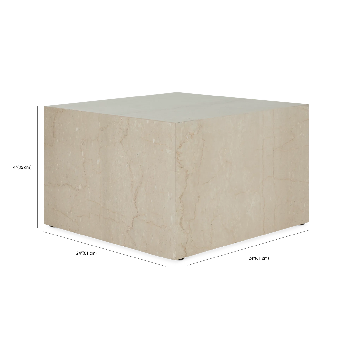 A truly standout design! With its ultra-chic travertine effect and raw block look, the Kub coffee table brings an architectural appeal to the living room. Modern, minimalist and brimming with character, it makes a statement in non-excessive style.