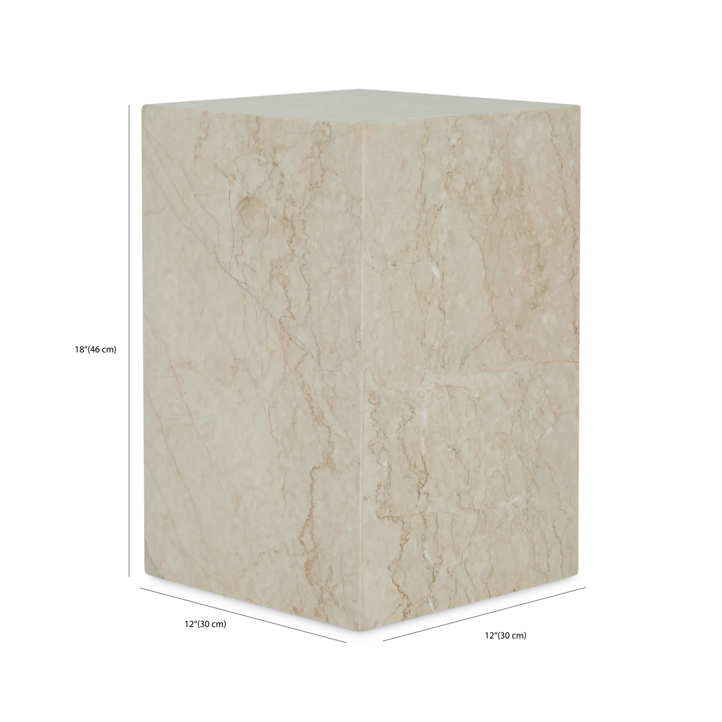 A truly standout design! With its ultra-chic travertine effect and raw block look, the Kub side table brings an architectural appeal to the living room. Modern, minimalist and brimming with character, it makes a statement in non-excessive style.
